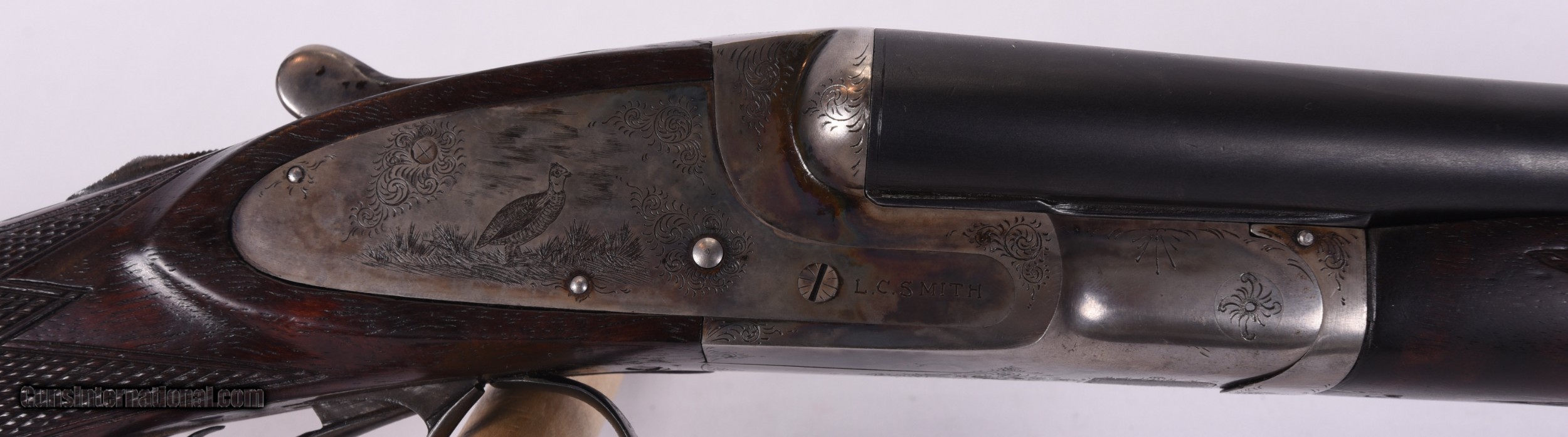 Description: Here is a stunning L.C. Smith Field grade that was engraved at the factory to a Grade II in 20Ga. Has 28" barrels. M/F choked. Made in 1923. SOLD |