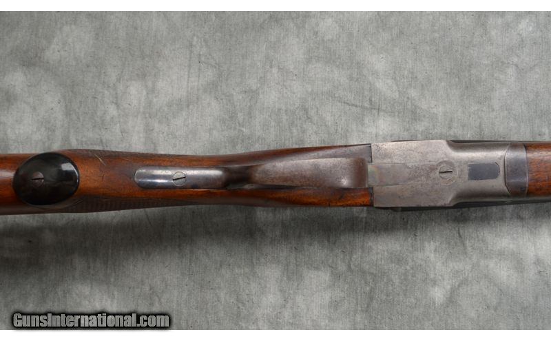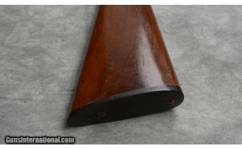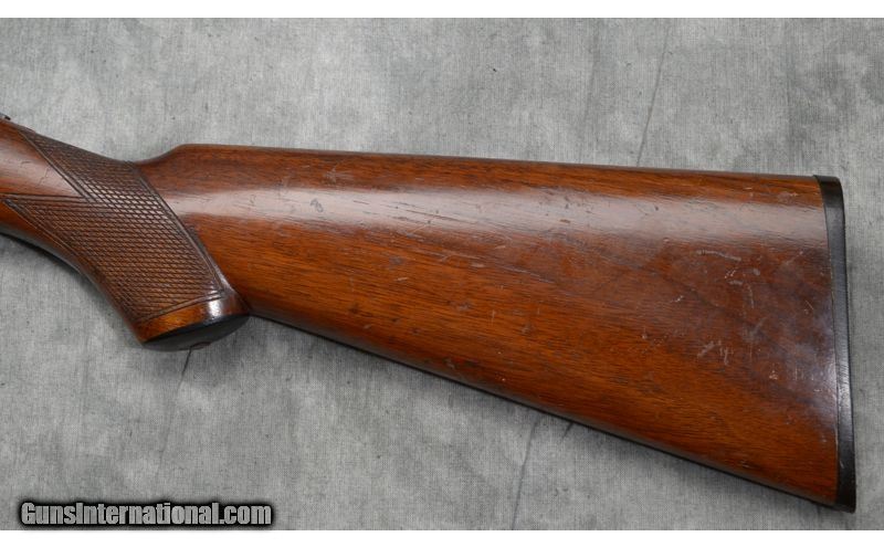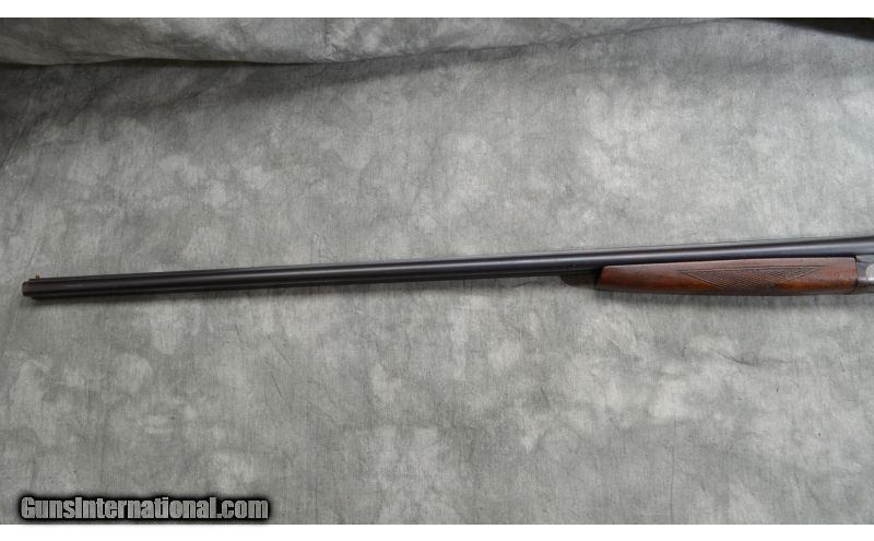 Description: .410 Gauge SOLD Curio/Relic: Yes Metal Condition: Good to very good. Has some fading of the blue and some surface corrosion/freckling. Wood Condition: Good to very good. Some scratches and dents. None are severe. Barrels: 28 inch Triggers: Double triggers Stock Dimensions: 14 inch LOP Fore End: Matching checkered walnut splinter Butt Pad: Black 'ebony' plate Sights: Matte solid rib with gold bead Chokes: Fixed Full and Full Item Location: Rogers |