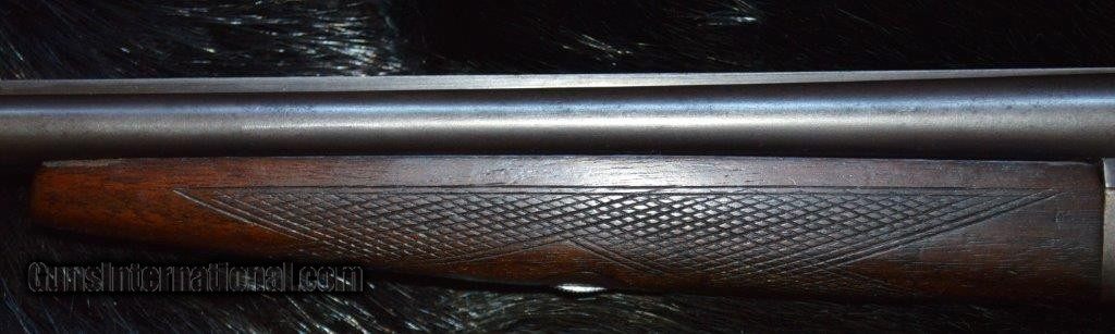 Description: SOLD PF *** This is an original FWE ( Feather Weight Ejector) gun with 26" barrels and a high raised matted (single sighting plane) rib. The forend has the banjo forend release, indicating that it was made before 1930, 1929 to be exact. This is a 70% condition gun and they only made less than 2,700 410s of all grades and of those 2509 were field grades. Of those 2509 only 20% had ejectors. It retains the original black plastic butt plate and grip cap on the pistol grip stock with a 14" length of pull; the drop at the comb is 1-1/2"; the drop at the heel is 2-3/4". The checkering has very good definition. The barrels are Armor Steel and they are choked full and full. The chambers 2-1/2" and the bores are bright and shiny. There is some roughness on the bottom of the barrels toward the muzzle. The little gun weighs 5 lbs - 12 oz and swings like a wand. Get ready for the doves and the quail. This would make a great upgrade candidate if someone wanted to turn a dream into reality. SOLD Curio/Relic: Yes Serial Number: FWE117163 Barrel Length: 26 |
