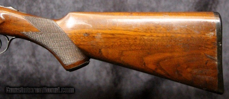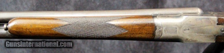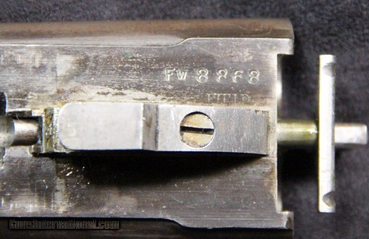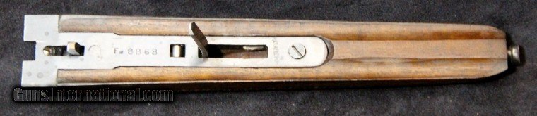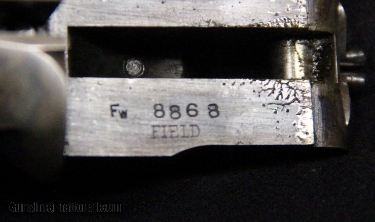 Description: 20ga, Fw8868, 28 inch "ARMOR STEEL" barrels, 2 1/2 inch chambers, M\IM chokes, featherweight, blue and case color finish, 14 1/8 LOP, 1 1/2 inch DAC, 2 1/4 inch DAH, checkered walnut stock and forearm, Curtis forearm release, "L C Smith Field Grade" on rright barrel, " Hunter Arms Co M,F,R.S Fulton NY" on left barrel, letters to Robinson Brothers and Company, October 17, 1919, with "leg-o-mutton" case. Condition: bright bores, 95% barrel blue thinning, 98% vivid case color, excellent solid wood with use dings, excellent mechanically, excellent marks. SOLD Curio/Relic: Yes |