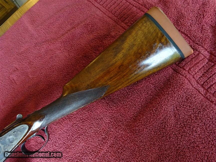 Description: LC SMITH, GRADE 2, 16 GAUGE WITH 2 SETS OF BARRELS 26" FULL & FULL, EXCELLENT BLUE, MIRROR BORES, AUTOMATIC EJECTORS, ALSO 30", FULL & FULL, EXCELLENT BLUE, MIRROR BORES, AUTOMATIC EJECTORS. STANDING QUAIL ON BOTH LOCKS, PLUS FINE SCROLLWORK, LIGHT CASE COLOR, HUNTER SINGLE SELECTIVE TRIGGER. STRAIGHT GRIP STOCK, 2 SPLINTER FOREARMS, EXCELLENT CHECKERING AND WOOD FINISH, ALL ORIGINAL FINISH, SOLID PAD. L C SMITH COLLECTORS ASSOCIATION LETTER VERIFIES EVERYTHING. ONE OF ONLY FOUR SHIPPED WITH 2 SETS OF BARRELS. DIMENSIONS 1 1/2" X 2 1/2" X 14", WEIGHS 7# WITH LONG BARRELS. MADE IN 1912. GREAT DIMENSIONS, NICE GUN. $7500.00 + $50.00 Insured shipping to an FFL address. See all Pats listings We also have hundreds of pieces of ORIGINAL gun company advertising & memorabilia available for sale. We have no reprints or reproductions. Email for more information. SOLD Curio/Relic: Yes |