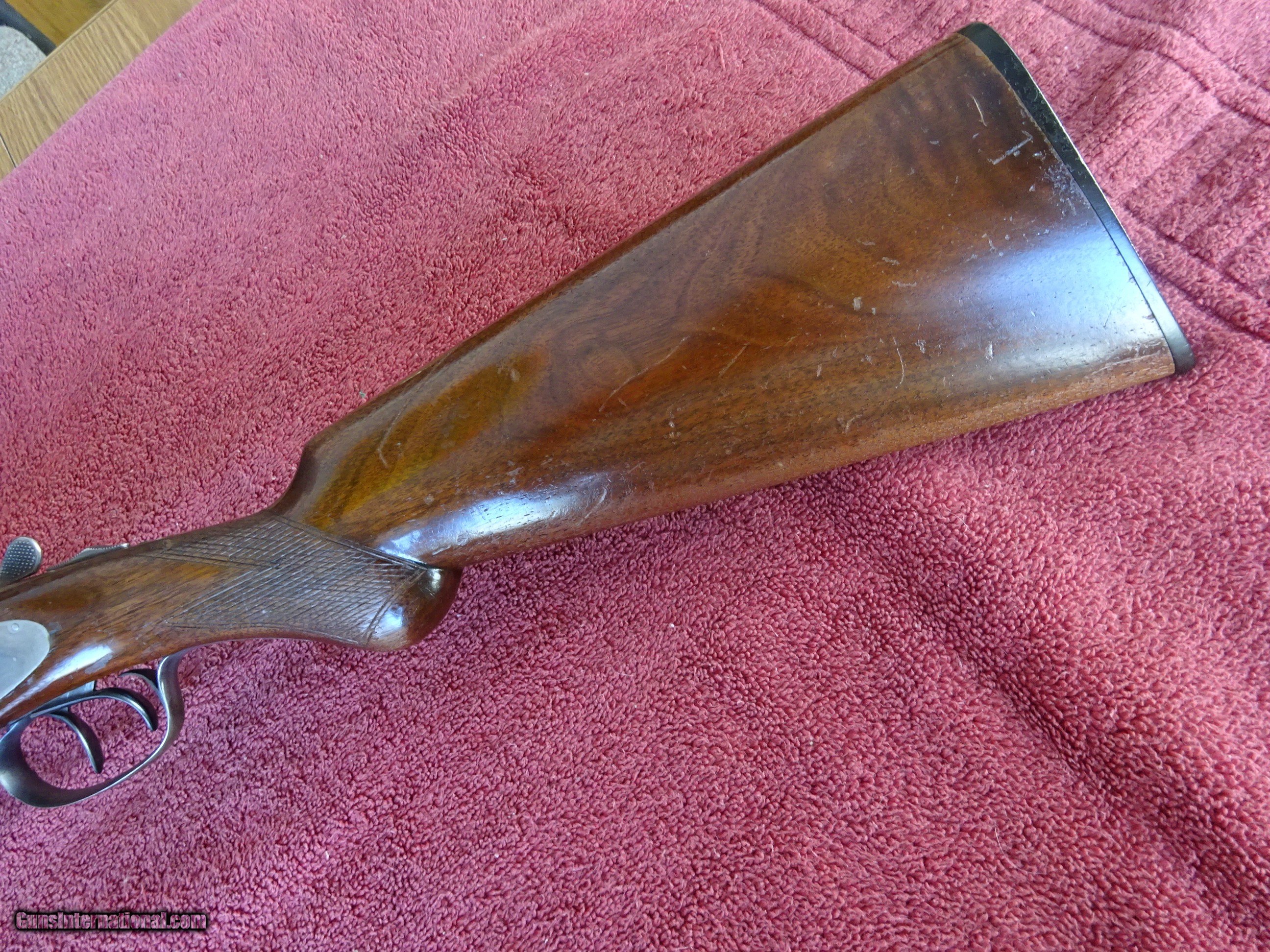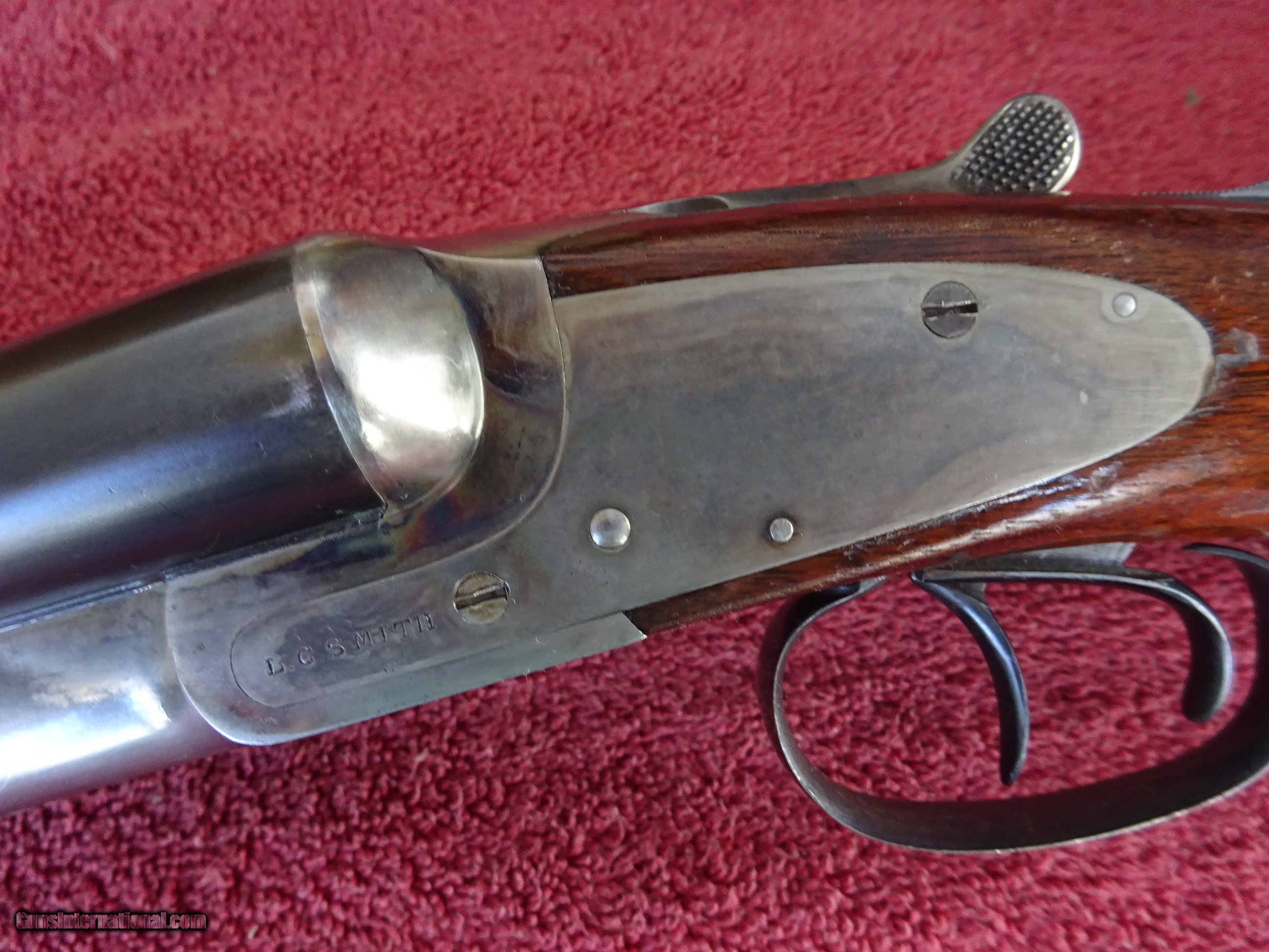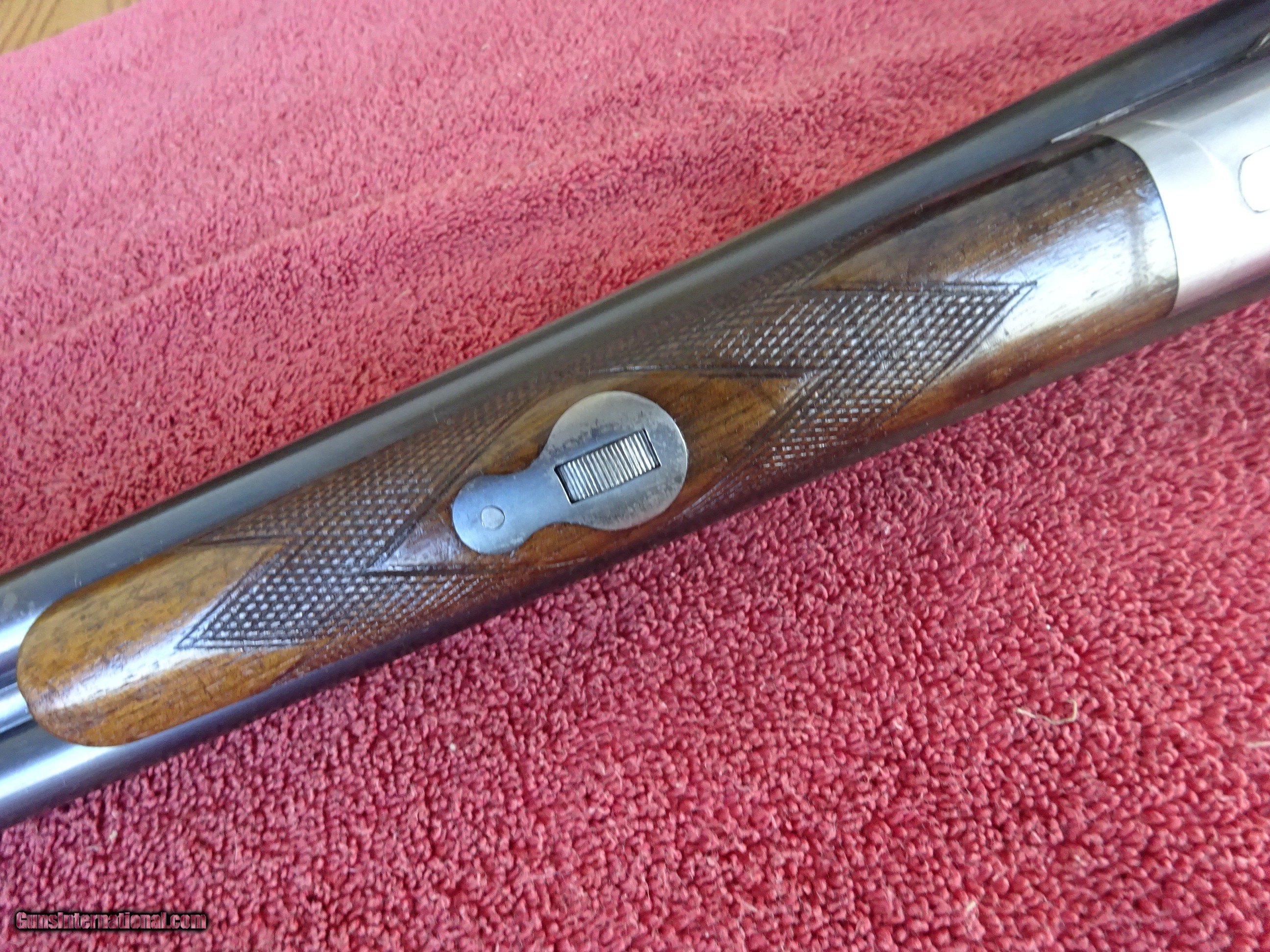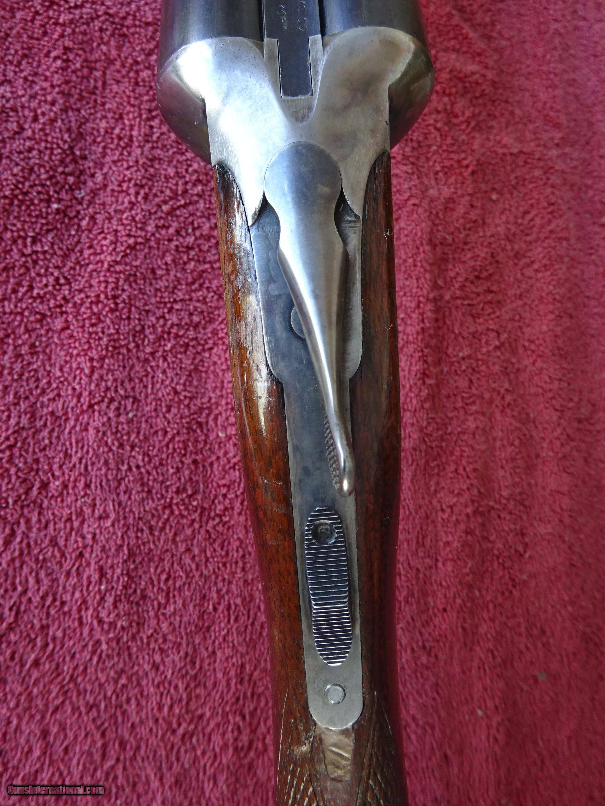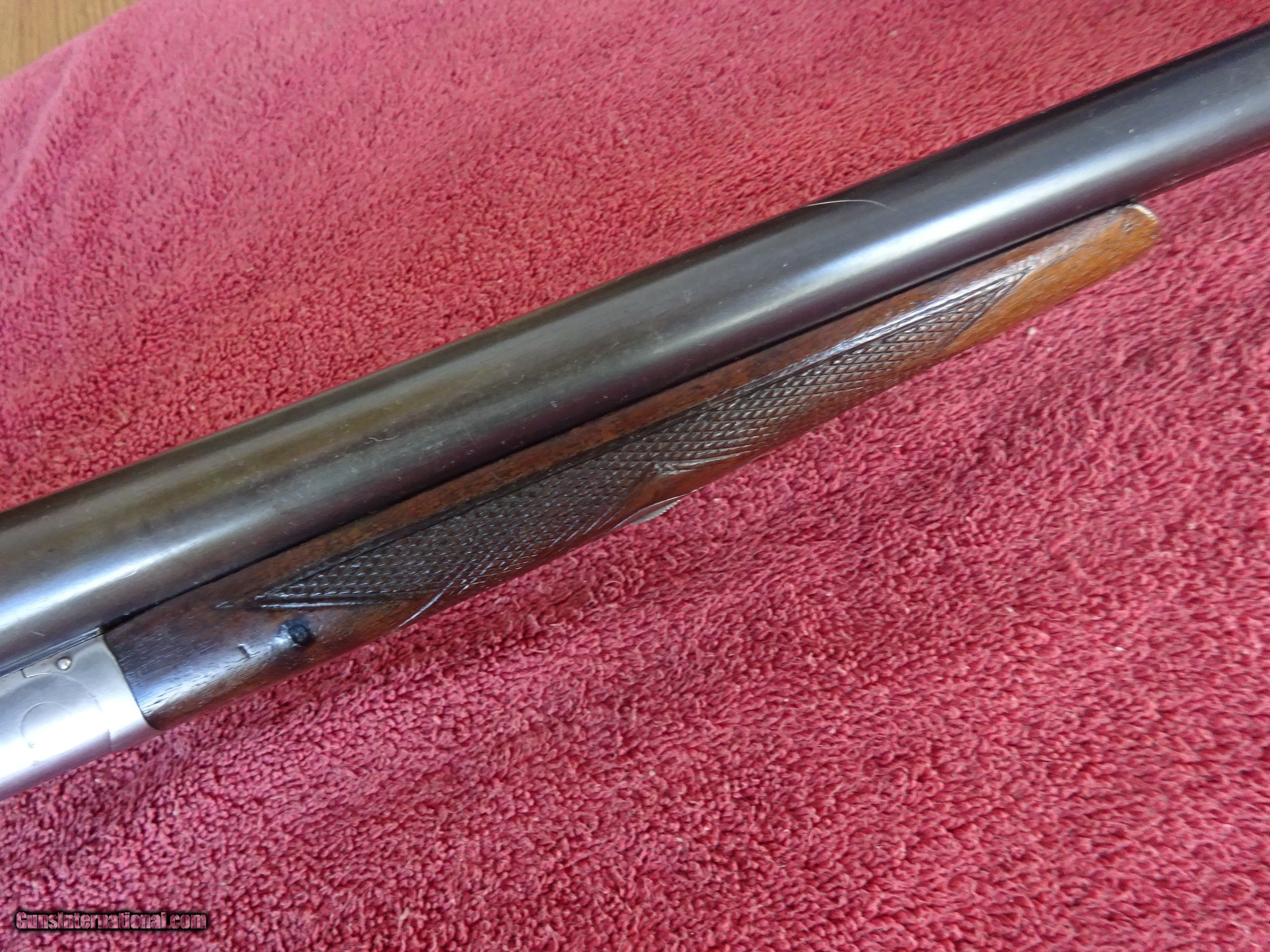 Description: L C SMITH, HUNTER ARMS, OO GRADE, 12 GAUGE, 28" BARRELS, VERY GOOD BLUE, MIRROR PERFECT BORES, SINGLE BEAD SIGHT, MODIFIED (.025) AND FULL (.040), 2 1/2" CHAMBERS, AUTOMATIC EJECTORS, BARRELS RING LIKE A BELL. FEATHERWEIGHT FRAME, VIVID CASE COLOR IN THE PROTECTED AREAS, EXCELLENT SCREWS, AUTO SAFETY, TOP LEVER TO FAR RIGHT, TIGHT ON FACE. ROUND KNOB GRIP, SPLINTER FOREARM, VERY GOOD WOOD AND CHECKERING, NUMEROUS RUBS AND SCRATCHES IN THE VARNISH, ORIGINAL BUTTPLATE. GREAT DIMENSIONS 1 1/2" X 2 1/2" X 14 1/8", 6 1/4 POUNDS. GREAT HANDLING SMITH, UNUSUAL HIGH DIMENSIONS FOR THIS ERA GUN. MADE IN 1911. VERY HARD GUN TO FIND IN THIS CONFIGURATION. 100% ORIGINAL CONDITION, FUNCTIONS PERFECTLY. $1075.00 + $70.00 Insured shipping to an FFL address. Layaway is available. See all Pats gun listings on this site! We also have hundreds of ORIGINAL gun company advertising & memorabilia pieces available for sale on our site SPORTINGCOLLECTIBLES. We have no reprints or reproductions. Email for more information. SOLD Curio/Relic: Yes |