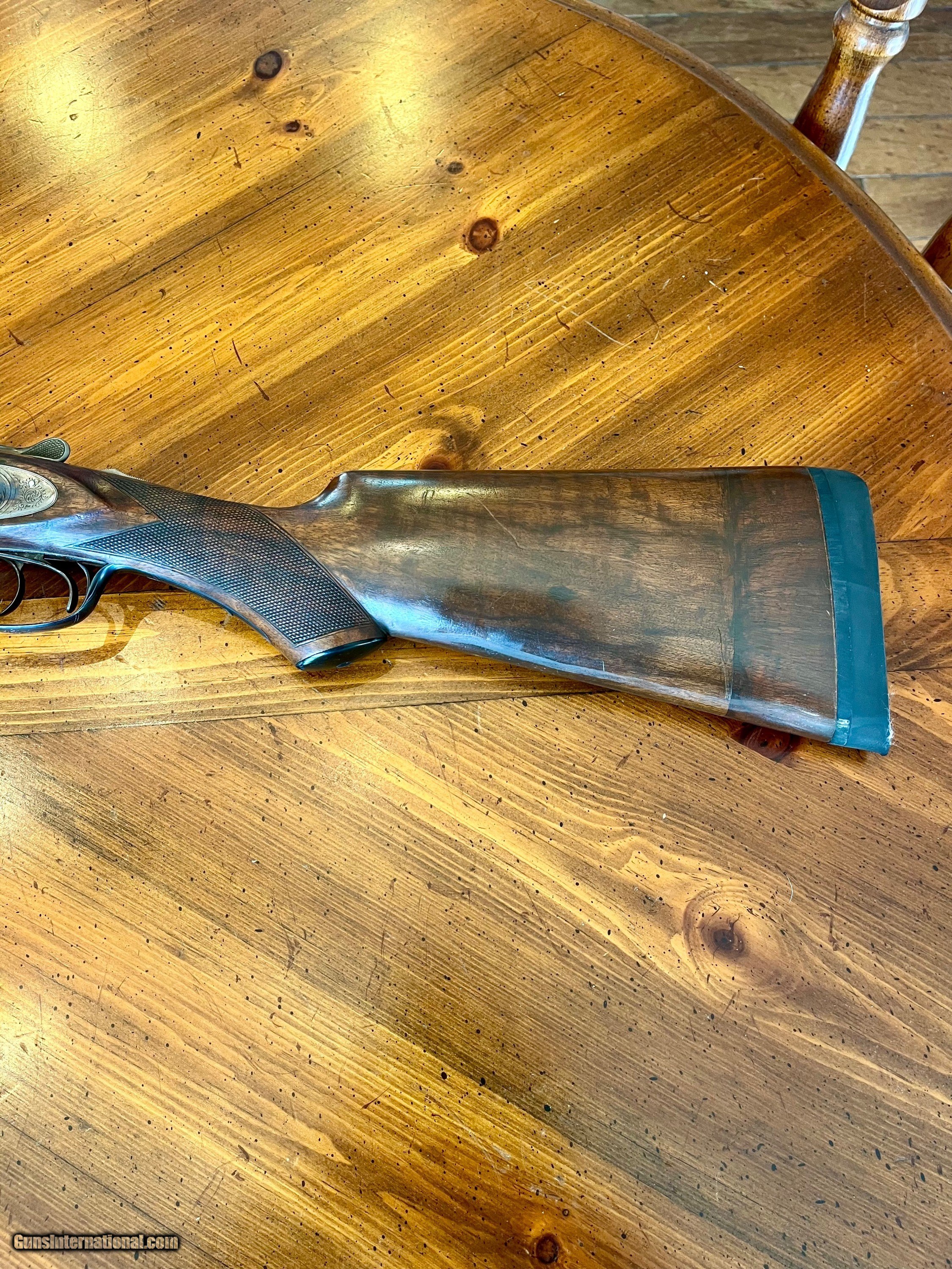 Description: L.C. SMITH GRADE 3 10 BORE NON EJECTOR MADE IN 1908 32" BARRELS CHAMBER: 2 7/8 10lb 9.5oz CHOKE: F/F 0.035/0.035 BORES: .775/.775 MIN WALL THICKNESS: L 0.052 R 0.050 LOP: 14 7/8 DAC: 1 5/8 DAH: 2 1/2 STOCK HAS BEEN CUT CHIP ON GRIP PLATE SOLD Shotgun Gauge: 10 Gauge Manufacturer: LC SMITH Condition: Good Metal Condition: Good Wood Condition: Fair Bore Condition: Good |