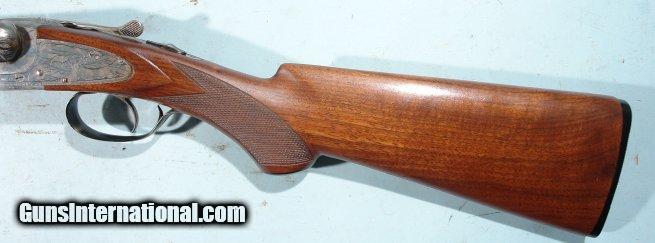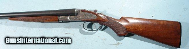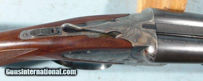 Description: L.C. SMITH HUNTER ARMS CO. IDEAL FW FEATHERWEIGHT GRADE 12GA. SHOTGUN, CIRCA 1929. 29" barrels choked skeet and IC. 20% original case colors remaining on crisply engraved side plates. Original screws with only two that have been turned. Original blue on barrels(evenly 95% distributed) and triggerguard(bright). Crisp checkering on original wood. Original factory varnish as well with no losses. Factory forend cap. Pistol grip cap. Plastic plain buttplate slightly undersized(possibly had old petrified rubber pad replaced. 14 1/4" length of pull. Featherweight at 7 1/2" lbs. Has the three position safety/selector in conjunction with Miller mechanical trigger that’s works great. SOLD Curio/Relic: Yes |