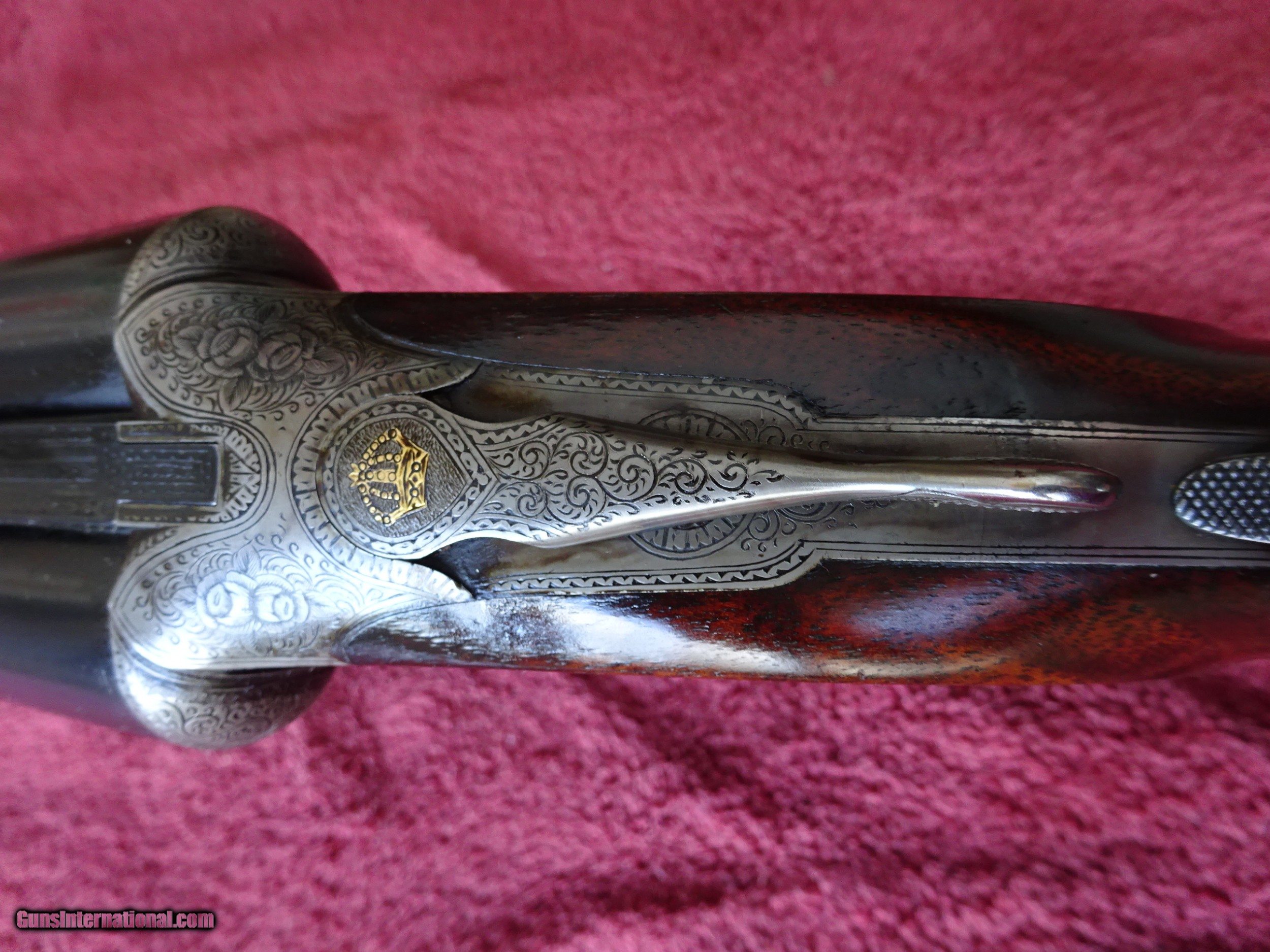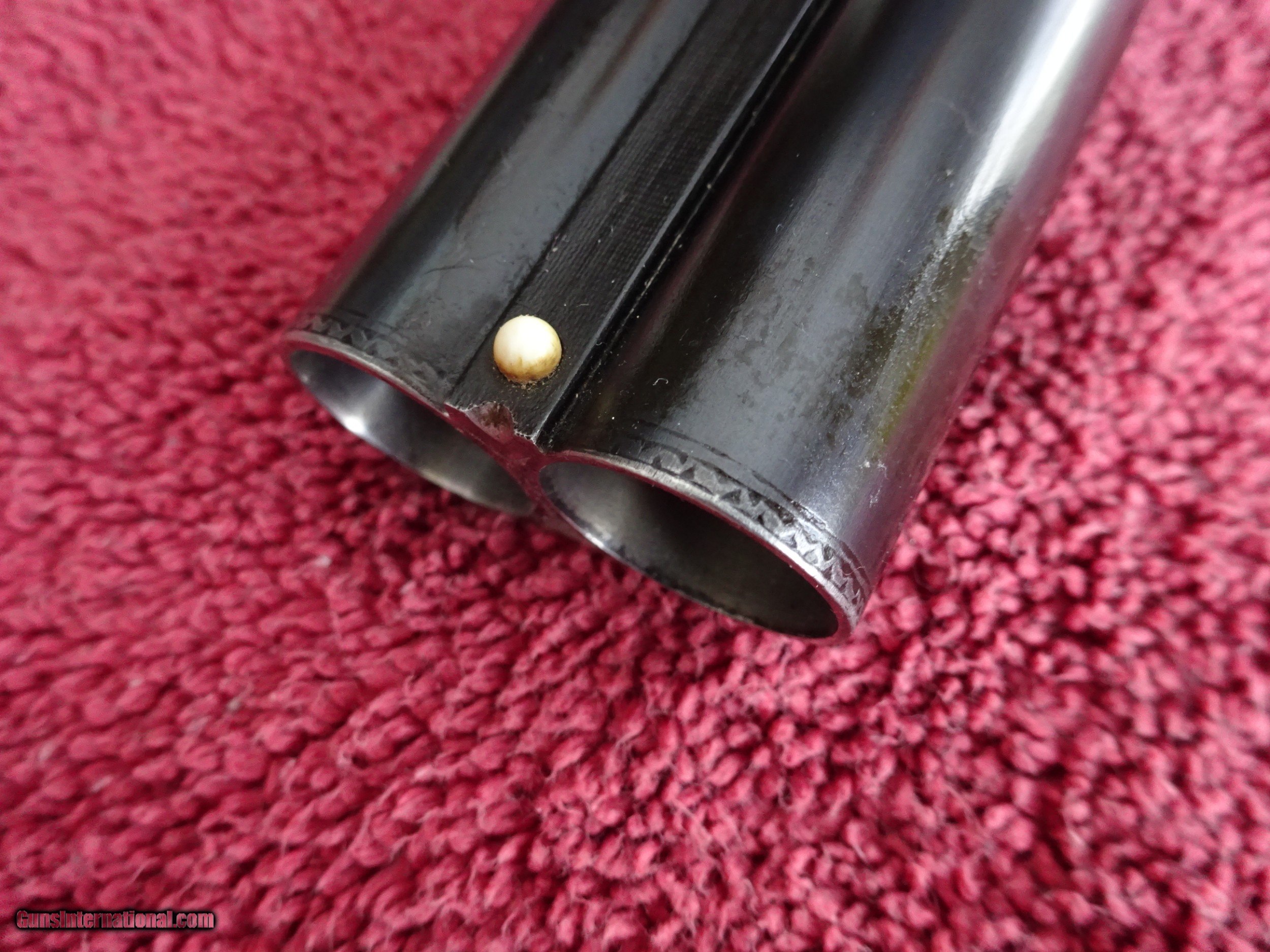 Description: L C SMITH, HUNTER ARMS, CROWN GRADE 12 GAUGE. 28" BARRELS, IMP.CYL AND MODIFIED, 2 3/4" CHAMBERS, EXCELLENT BLUE, MIRROR BRIGHT BORES, BARRELS RING NICELY, TWIN IVORY SIGHTS, SCROLL AND BORDER ENGRAVING AT BOTH ENDS. FEATHERWEIGHT FRAME, PERFECT ENGRAVED SCREWS, PAIR OF ENGLISH POINTERS ON RIGHT LOCK, PAIR OF ENGLISH SETTERS IN AN UNUSUAL POSTURE ON THE LEFT LOCK, PLUS INTRICATE SCROLL, FLOWERS, VINES AND BORDERS. FULL COVERAGE ENGRAVING. GOLD INLAY AT BARREL EXTENSION AND GOLD CROWN INLAY ON TOP LEVER, GOLD "S" SAFETY INLAY ON TOP TANG. PISTOL GRIP STOCK, SPLINTER FOREARM WITH BANJO SHAPE LATCH, EBONY INSERT, 100% CHECKERING COVERAGE. HIGHLY FIGURED WOOD, ORIGINAL GRIP CAP AND BUTTPLATE. EXCELLENT WOOD AND CHECKERING, 1 1/2" X 2 3/4" X 14 1/4", 6 POUNDS 10 OUNCES. MOST ALL THE ORIGINAL TRIGGERGUARD BLUE, TOP LEVER IS TO THE RIGHT, TIGHT ON FACE. THE GUN HAS BEEN WELL CARED FOR, MADE IN 1922, ONLY 88 GUNS MADE IN THIS CONFIGURATION. LETTER FROM CODY MATCHES ALL THE SPECS. $7500.00 + $50.00 Insured shipping to an FFL address. See all Pats listings We also have hundreds of pieces of ORIGINAL gun company advertising & memorabilia available for sale. We have no reprints or reproductions. Email for more information. SOLD Curio/Relic: Yes |