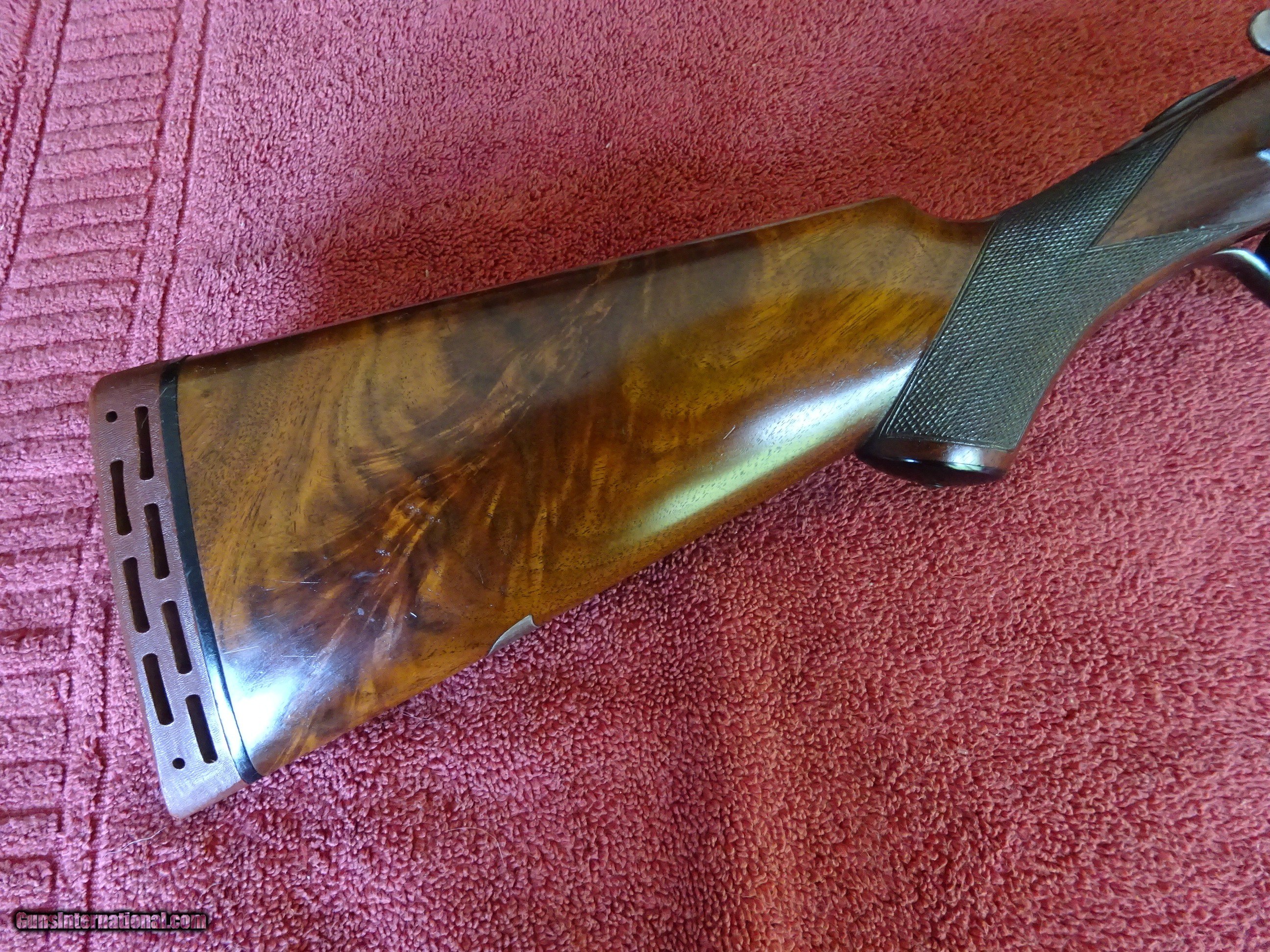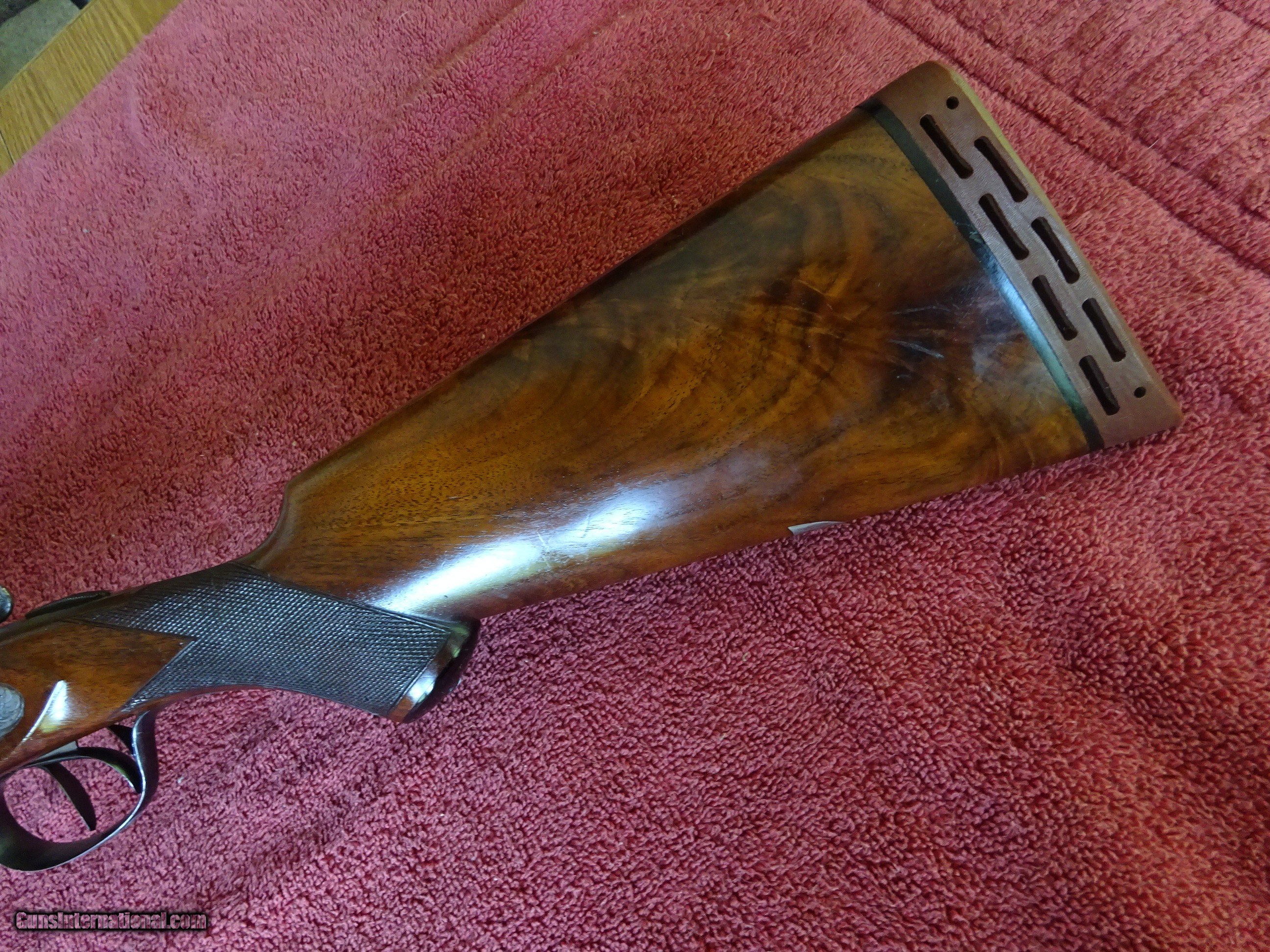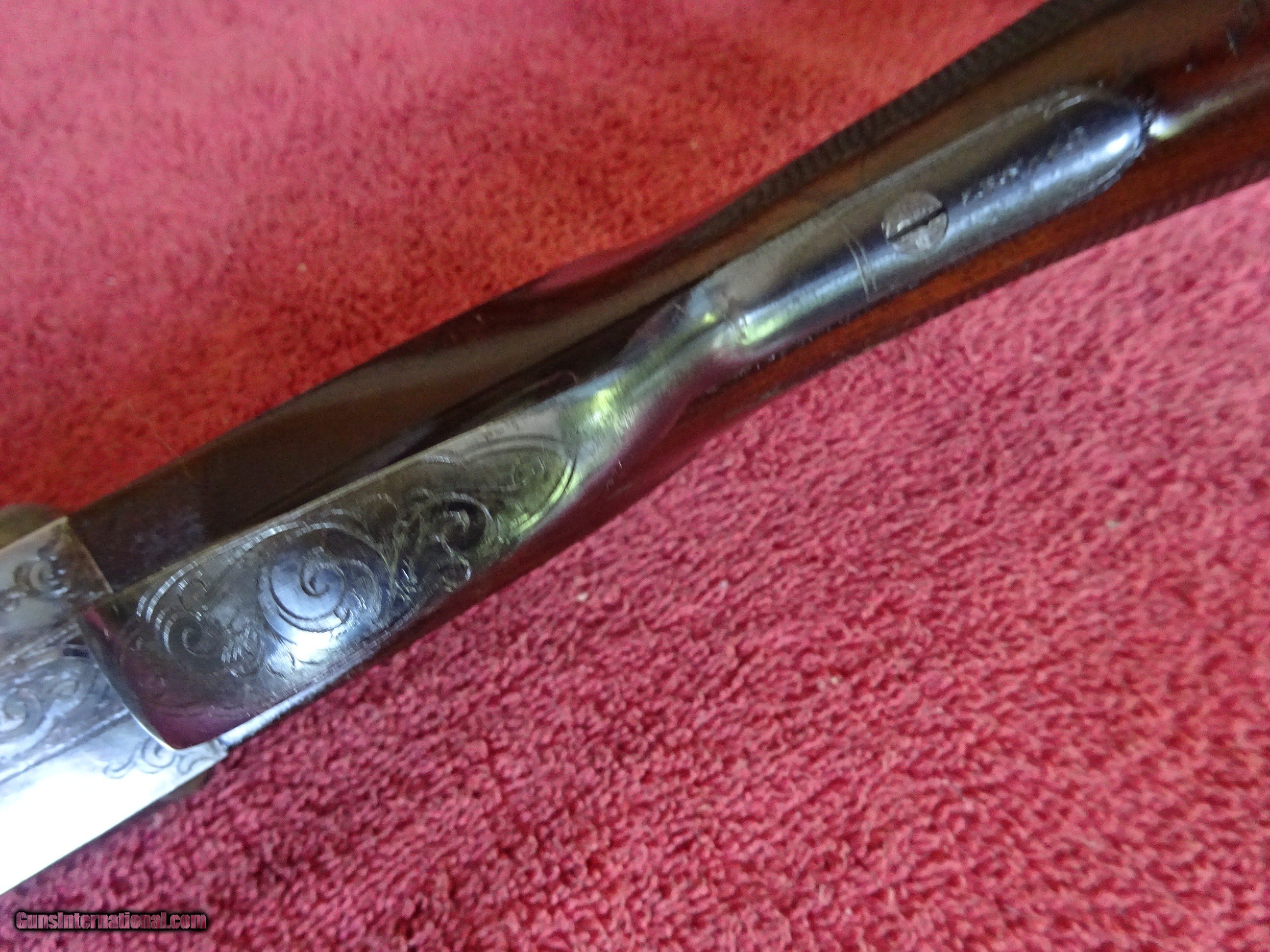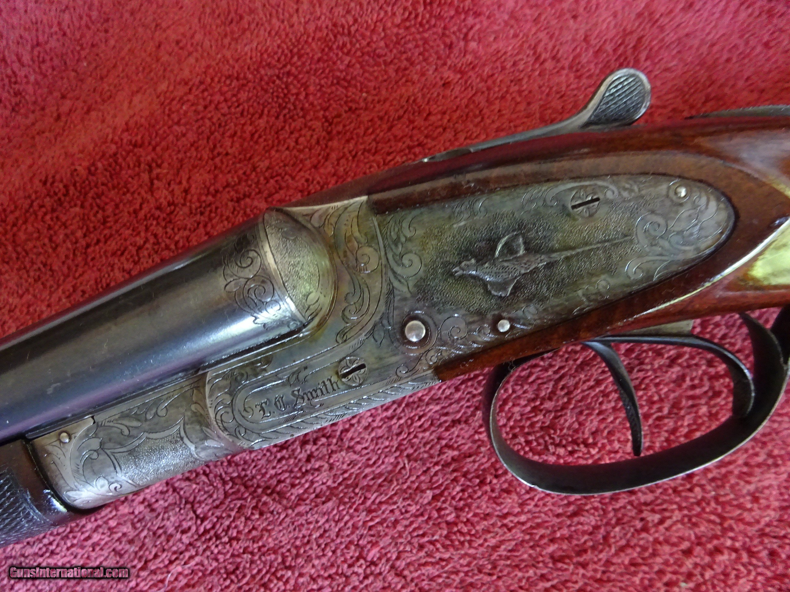 Description: L C SMITH, HUNTER ARMS, EAGLE GRADE 20 GA. NITRO STEEL 30" BARRELS, EXCELLENT BRIGHT BLUE, MIRROR PERFECT BORES, MODIFIED (.20) AND FULL (.35), 2 1/2" CHAMBERS, TWIN BEAD SIGHTS, GOLD BAR INLAY AT THE RIB EXTENSION, SCROLL ENGRAVED AT THE BREECH ENDS, AUTOMATIC EJECTORS, BARRELS RING LIKE A BELL. FEATHERWEIGHT FRAME, VIVID CASE COLOR, RIGHT LOCK HAS A MALLARD IN FLIGHT CUT IN DEEP RELIEF WITH A STIPPLED BACKGROUND, LEFT LOCK HAS A ROOSTER PHEASANT IN FLIGHT CUT IN DEEP RELIEF WITH A STIPPLED BACKGROUND, A RELIEF CUT EAGLE ON THE TOP LEVER, PLUS ACANTHUS SCROLLWORK AND FINE BORDERS, ENGRAVED SCREWS, TOP LEVER TO THE FAR RIGHT, TIGHT ON FACE. TRIGGERGUARD HAS MOST ALL THE ORIGINAL BLUE. PISTOL GRIP STOCK SPLINTER FOREARM, HIGHLY FIGURED WALNUT. VERY GOOD WOOD AND CHECKERING, FOREARM HAS EBONY WEDGE AT THE TIP. STOCK HAS SILVER SHIELD INLAY, NOT ENGRAVED. 1 1/2" X 2 3/8" X 13 3/4", JOSTAM PAD, 7 POUNDS 2 OUNCES. MADE ABOUT 1931. TOTAL PRODUCTION OF EAGLE GRADE 20 GA. GUNS WAS 76. ONLY 8 WERE BUILT WITH 30" BARRELS. EXTREMELY RARE SMITH IN VERY PLEASING ORIGINAL CONDITION. $12,500.00 + $70.00 Insured shipping to an FFL address. Layaway is available. See all Pats gun listings on this site! We also have hundreds of ORIGINAL gun company advertising & memorabilia pieces available for sale on our site SPORTINGCOLLECTIBLES. We have no reprints or reproductions. Email for more information. SOLD Curio/Relic: Yes |