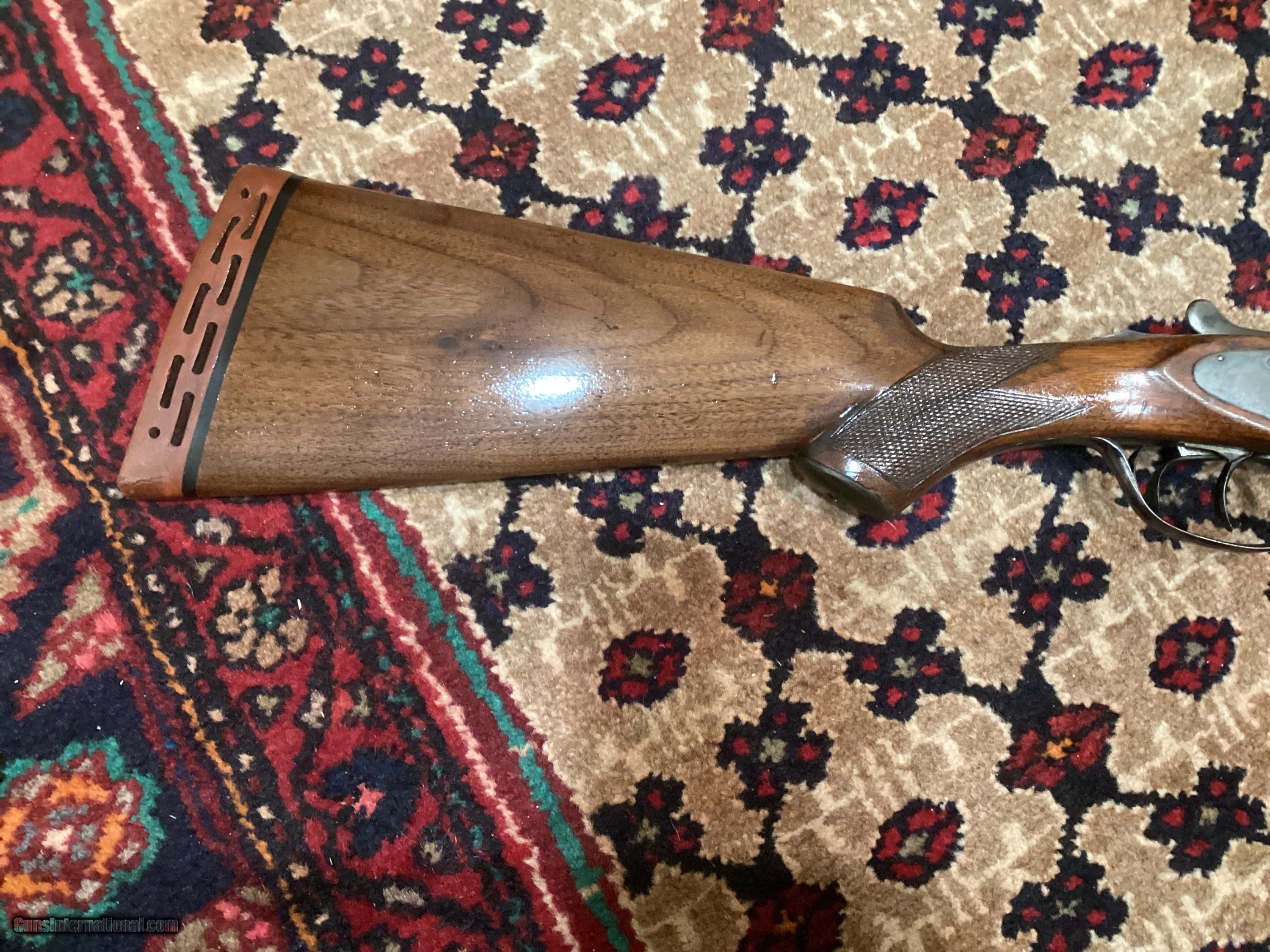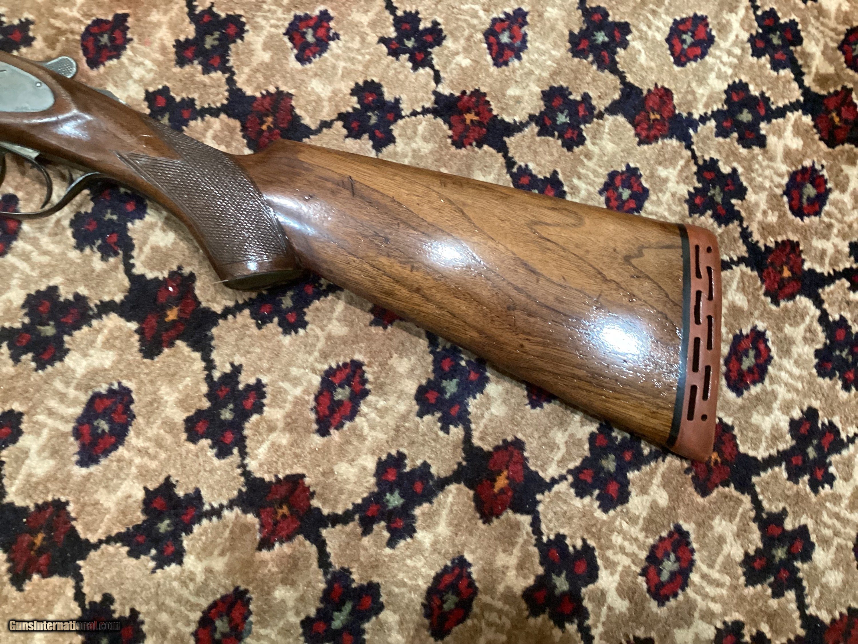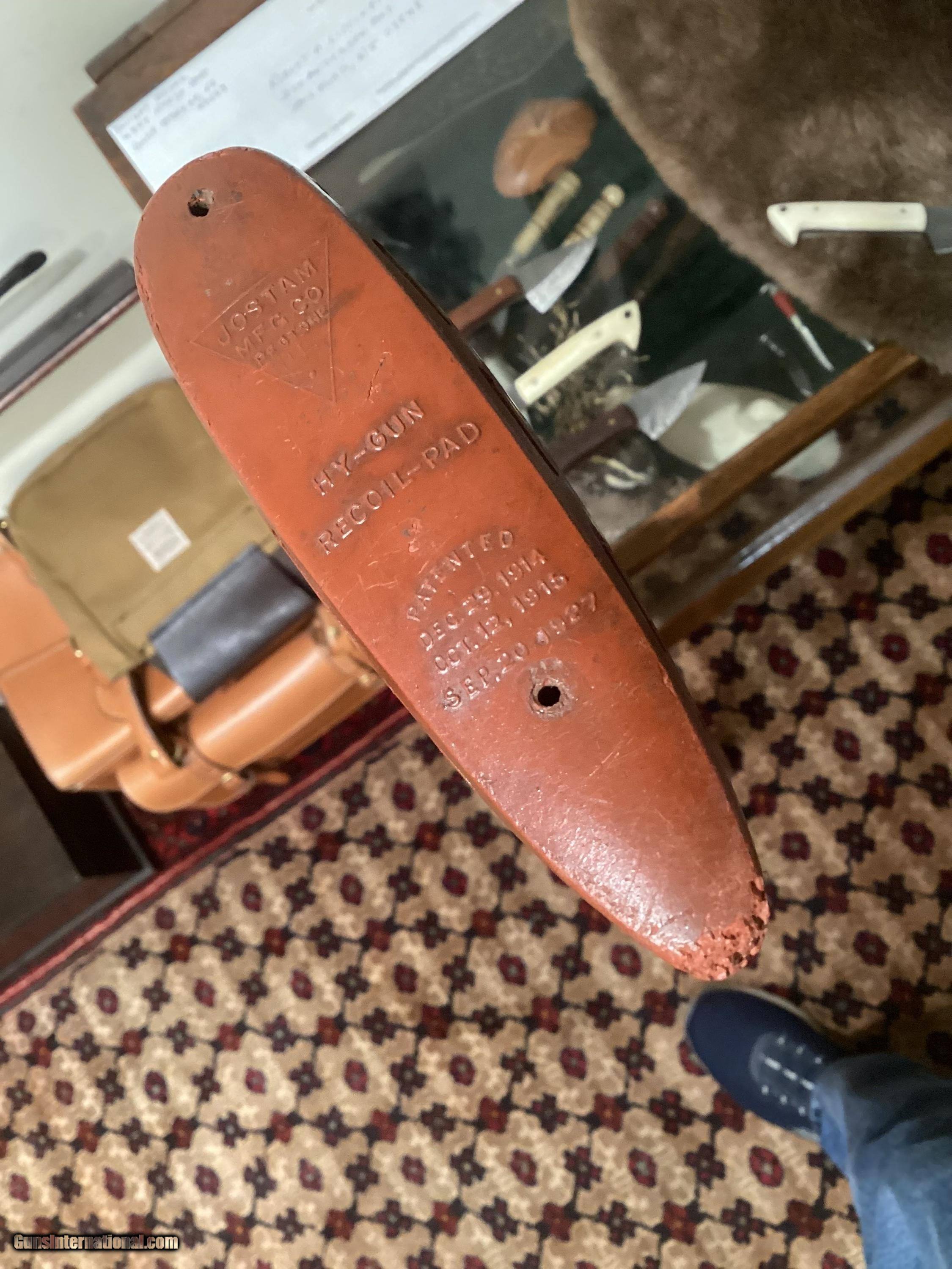 Description: An L.C. Smith 12 gauge marked Fw for feather weight. A very clean, solid example with sound wood and original bluing. The barrels are 28" with 2-3/4" chambers and perfect mirror bores. Chokes are .022" (IM) right, and .041" (full) left. The top lever is well to the right of center. Weight is only 6 lbs. 11 oz. Original finishes except butt stock has been varnished. Please see the photos for condition. A really honest and unworn Smith with good stock dimensions. Certified checks or USPS money orders only accepted. Shipping will be $60.00. Cannot ship to Ca., NYC, or C&Rs. Please use email for contact. Price reduced to $675.00. SOLD Shotgun Gauge: 12 Gauge Manufacturer: L.C. Smith Model: Feather weight Serial Number: 102869 Barrel Length: 28” Chambers: 2-3/4” Ejectors: No Condition: Vg Metal Condition: Vg Wood Condition: Good Bore Condition: Vg Triggers: 2 Stock Comb: 1-5/8” Stock Heel: 3” Butt Pad: Yes, Josten Hy-Gun LOP: 14-3/4” over pad Weight: 6lbs. 11 oz. Choke Left: .041” Choke Right: .022” |