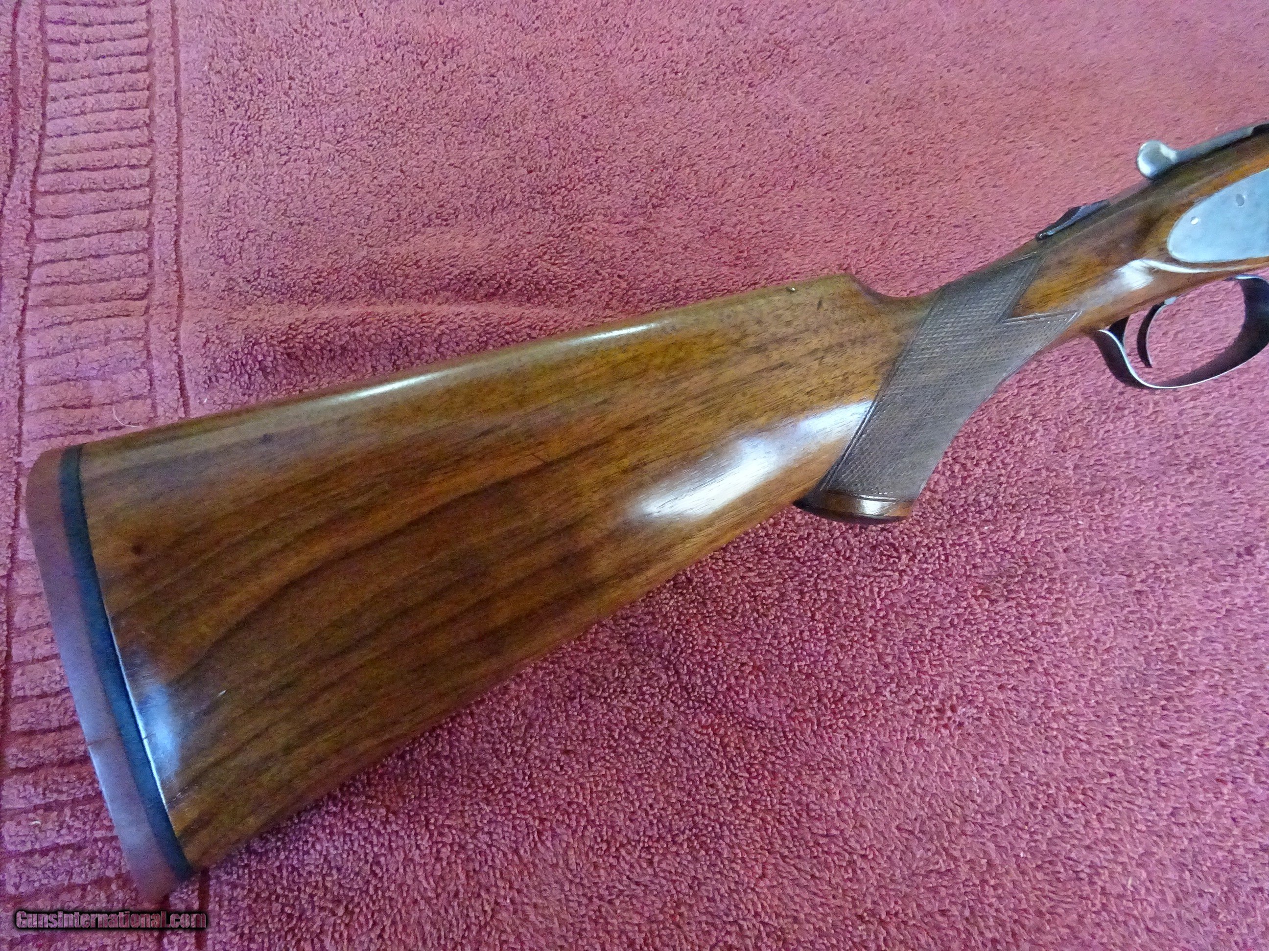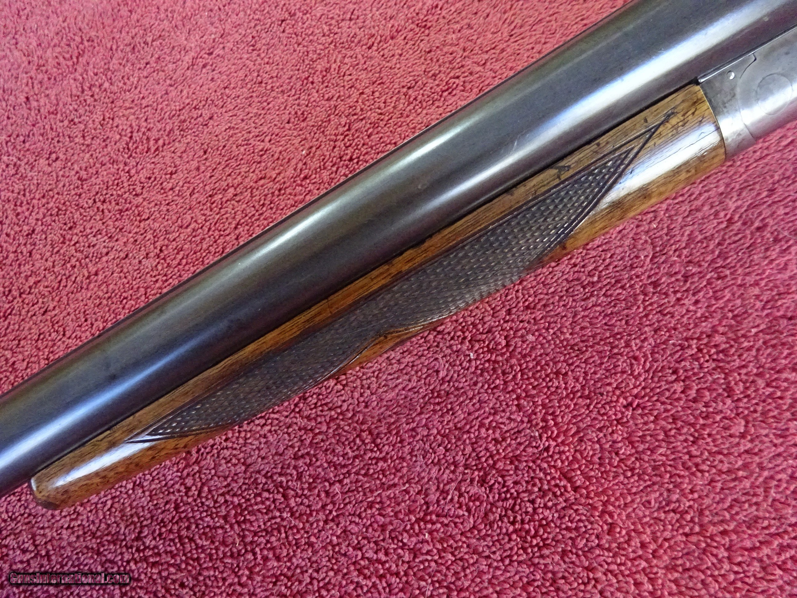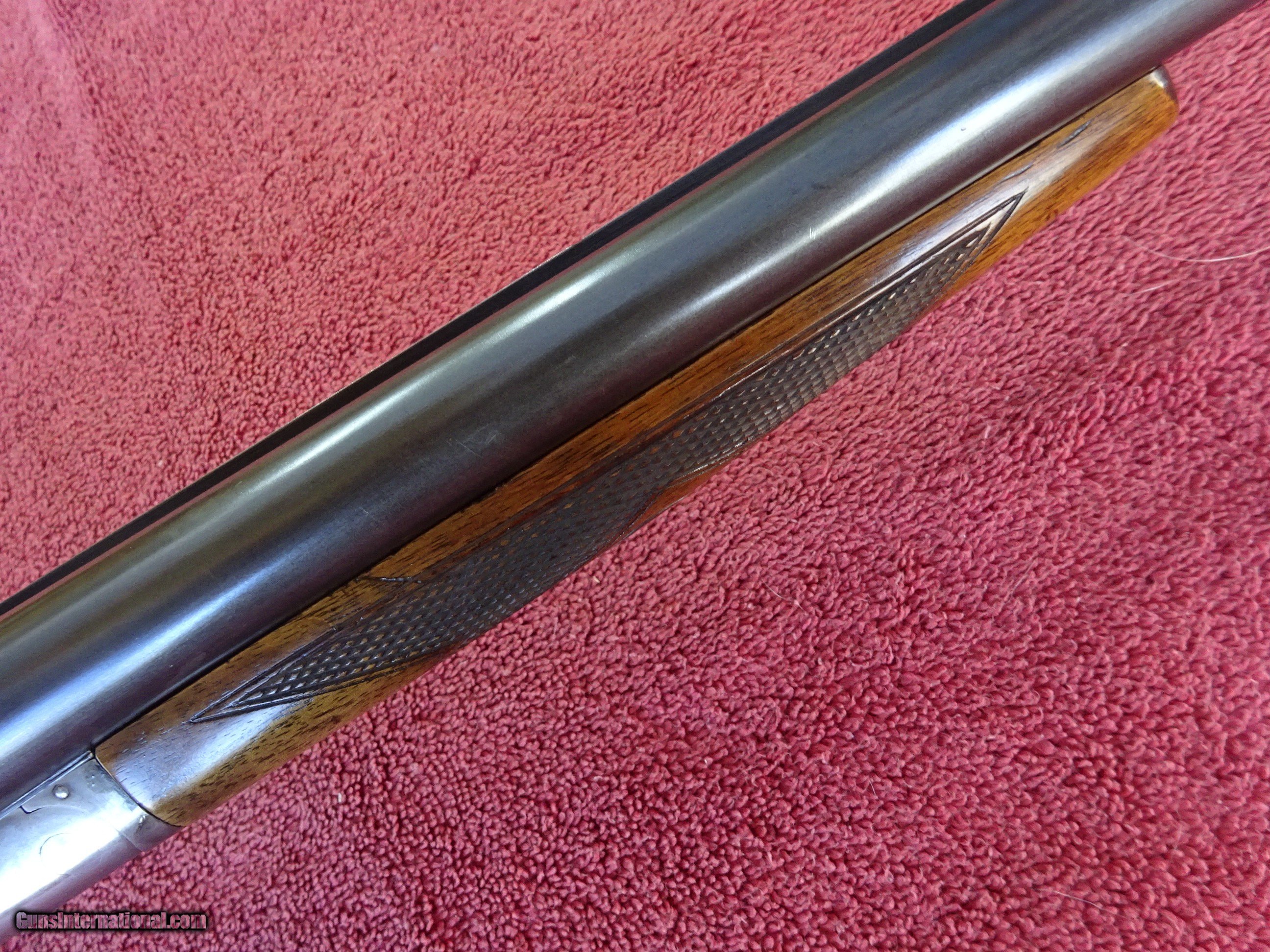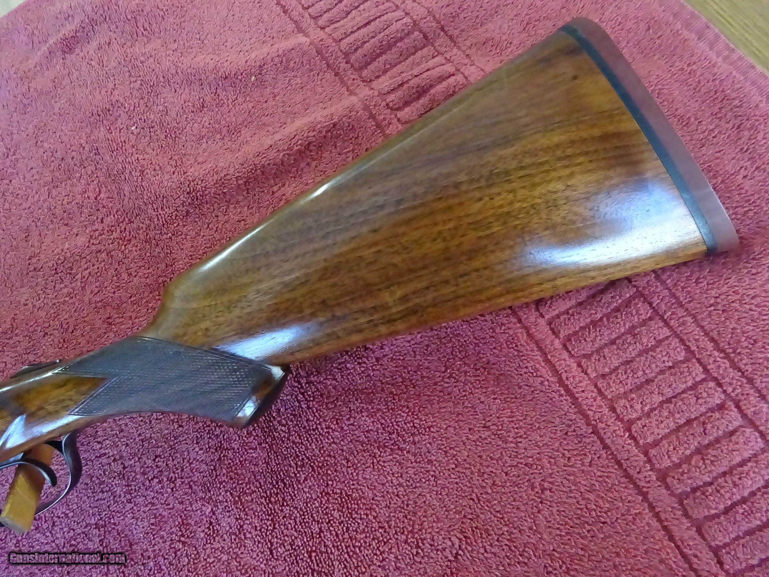 Description: L C SMITH, HUNTER ARMS, FIELD GRADE 12 GAUGE, 30" ARMOR STEEL BARRELS. VERY GOOD BLUE, MIRROR PERFECT BORES, SINGLE BEAD SIGHT, FULL (.035) AND FULL (.035), 2 3/4" CHAMBERS, AUTOMATIC EJECTORS. REGULAR FRAME, VERY GOOD CASE COLOR COVERAGE, HUNTER SINGLE SELECTIVE TRIGGER. TOP LEVER TO THE FAR RIGHT, TIGHT ON FACE, EXCELLENT SCREWS. PISTOL GRIP STOCK, SPLINTER FOREARM, EXCELLENT WOOD AND CHECKERING. GREAT DIMENSIONS, 1 1/4" X 2 1/4" X 14 1/4", HALF INCH SOLID PAD, 8 POUNDS EVEN. GREAT WILD TURKEY GUN. GUN IN VERY PLEASING CONDITION. MADE IN 1929. $1275.00 + $70.00 Insured shipping to an FFL address. Layaway is available. See all Pats gun listings on this site! We also have hundreds of ORIGINAL gun company advertising & memorabilia pieces available for sale on our site SPORTINGCOLLECTIBLES. We have no reprints or reproductions. Email for more information. If you need to call, morning or evening is best, and please note the Seller's Inventory number. SOLD Curio/Relic: Yes |