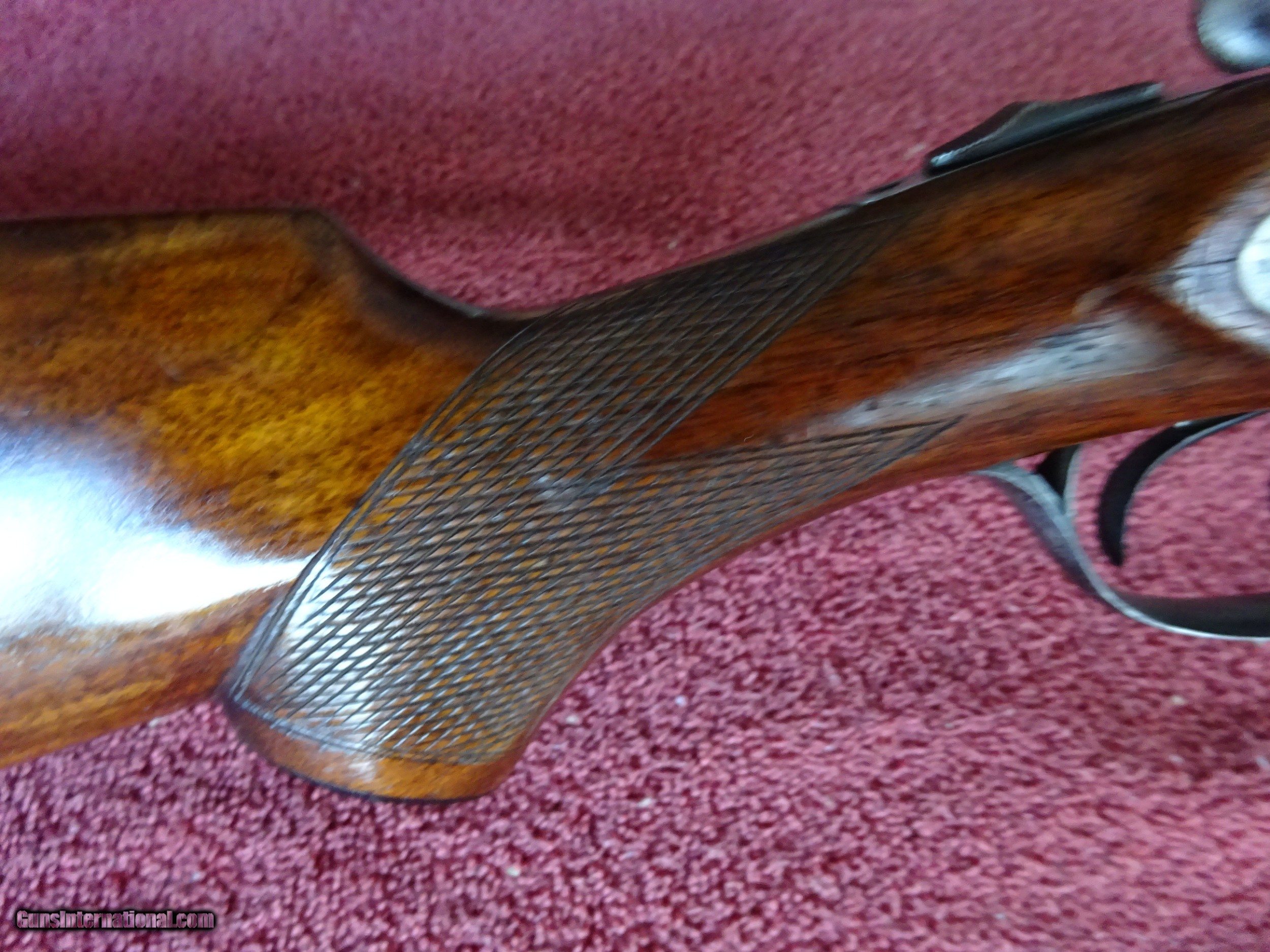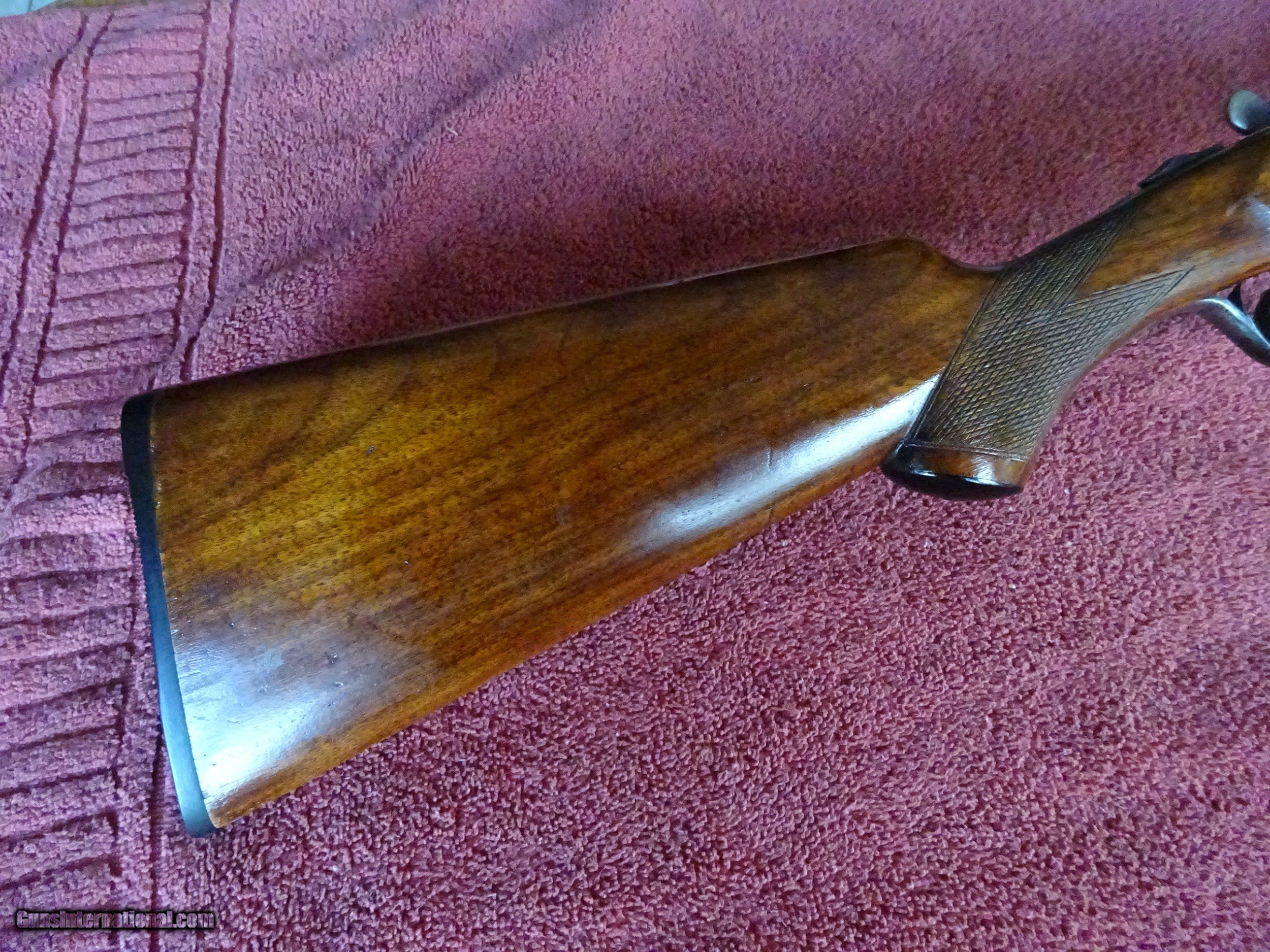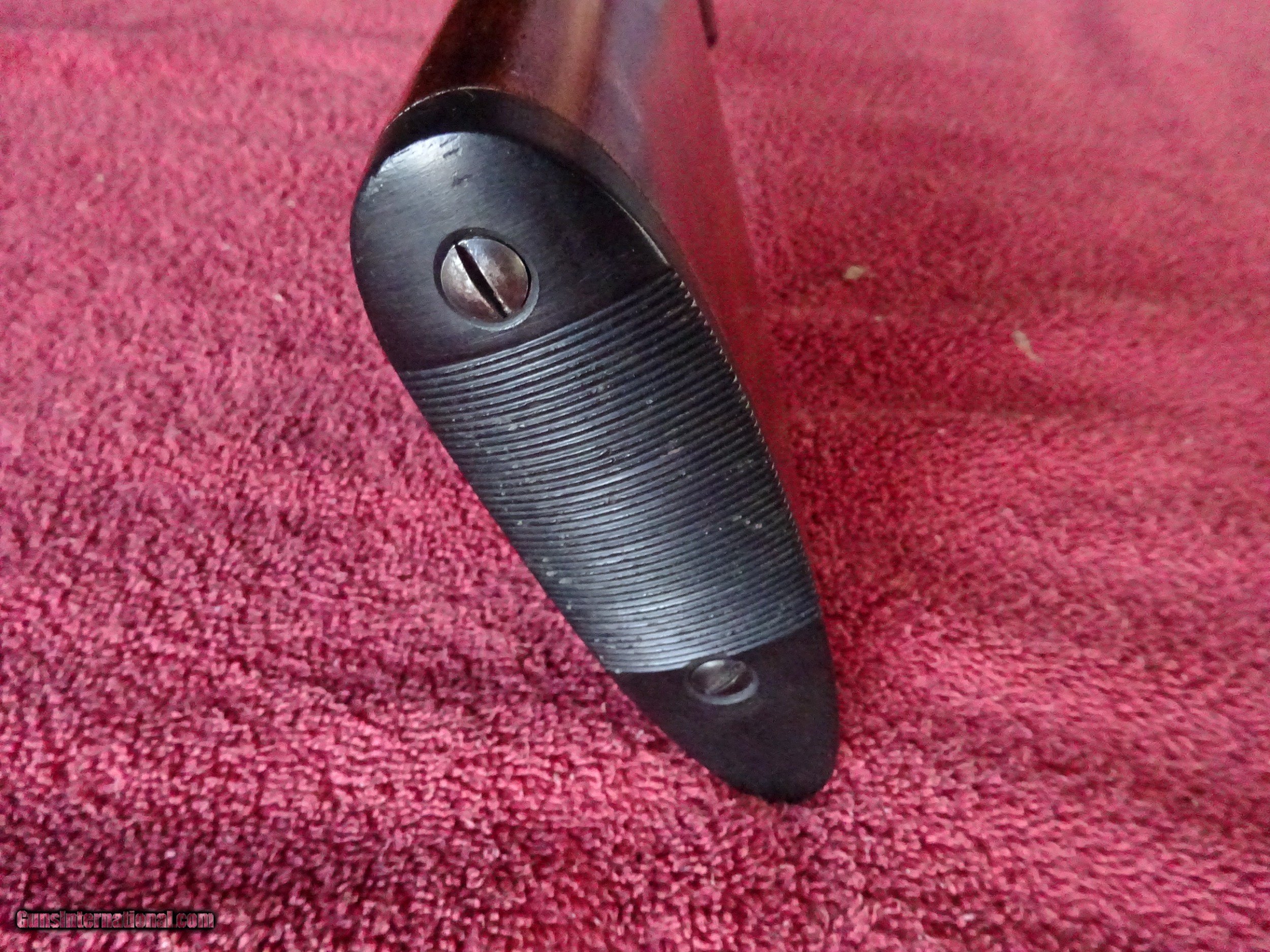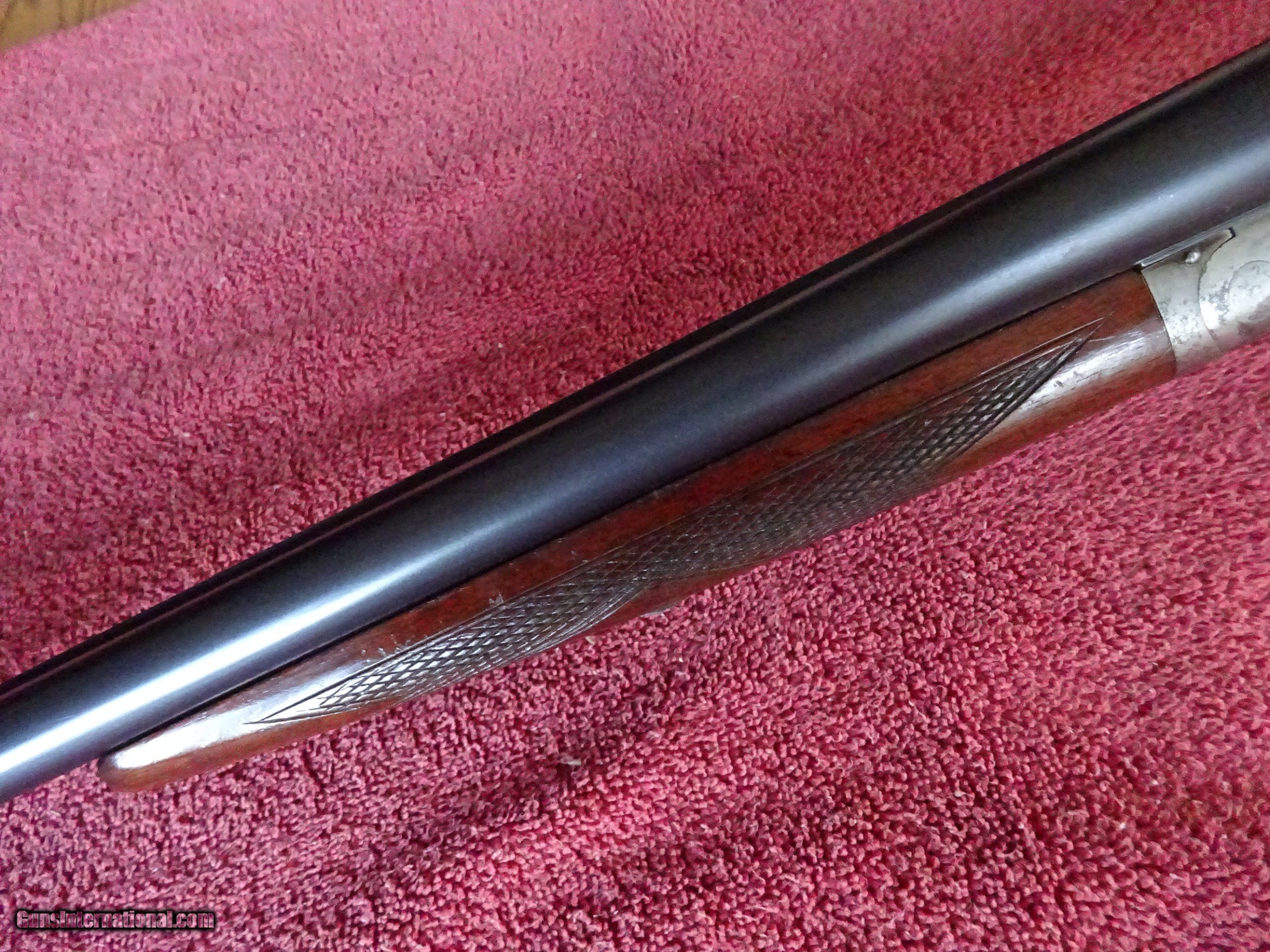 Description: L C SMITH, HUNTER ARMS, FIELD GRADE 20 GAUGE. AUTOMATIC EJECTORS, 28" BARRELS, FULL AND FULL, 2 3/4" CHAMBERS, EXCELLENT BLUE, MIRROR PERFECT BORES, SINGLE SIGHT. FEATHERWEIGHT FRAME, CASE COLOR IN THE PROTECTED AREAS. SOME SURFACE CORROSION ON THE LOCKS AND FRAME. PISTOL GRIP STOCK, SPLINTER FOREARM, SOUND WOOD, GOOD CHECKERING. MECHANICALLY EXCELLENT. GREAT RAINY DAY UPLAND GAME GUN. IDEAL PROJECT GUN TO CREATE A HIGH GRADE L C SMITH. BARRELS ARE EXCELLENT INSIDE AND OUT AND RING BEAUTIFULLY. EVERYTHING FUNCTIONS PERFECTLY. 1 1/2" X 2 3/4" X 13 7/8", 6 POUNDS EVEN. MADE IN 1927. $1575.00 + $50.00 Insured shipping to an FFL address. See all Pats gun listings on this site! We also have hundreds of pieces of ORIGINAL gun company advertising & memorabilia available for sale on our site SPORTINGCOLLECTIBLES. We have no reprints or reproductions. Email for more information. SOLD Curio/Relic: Yes |