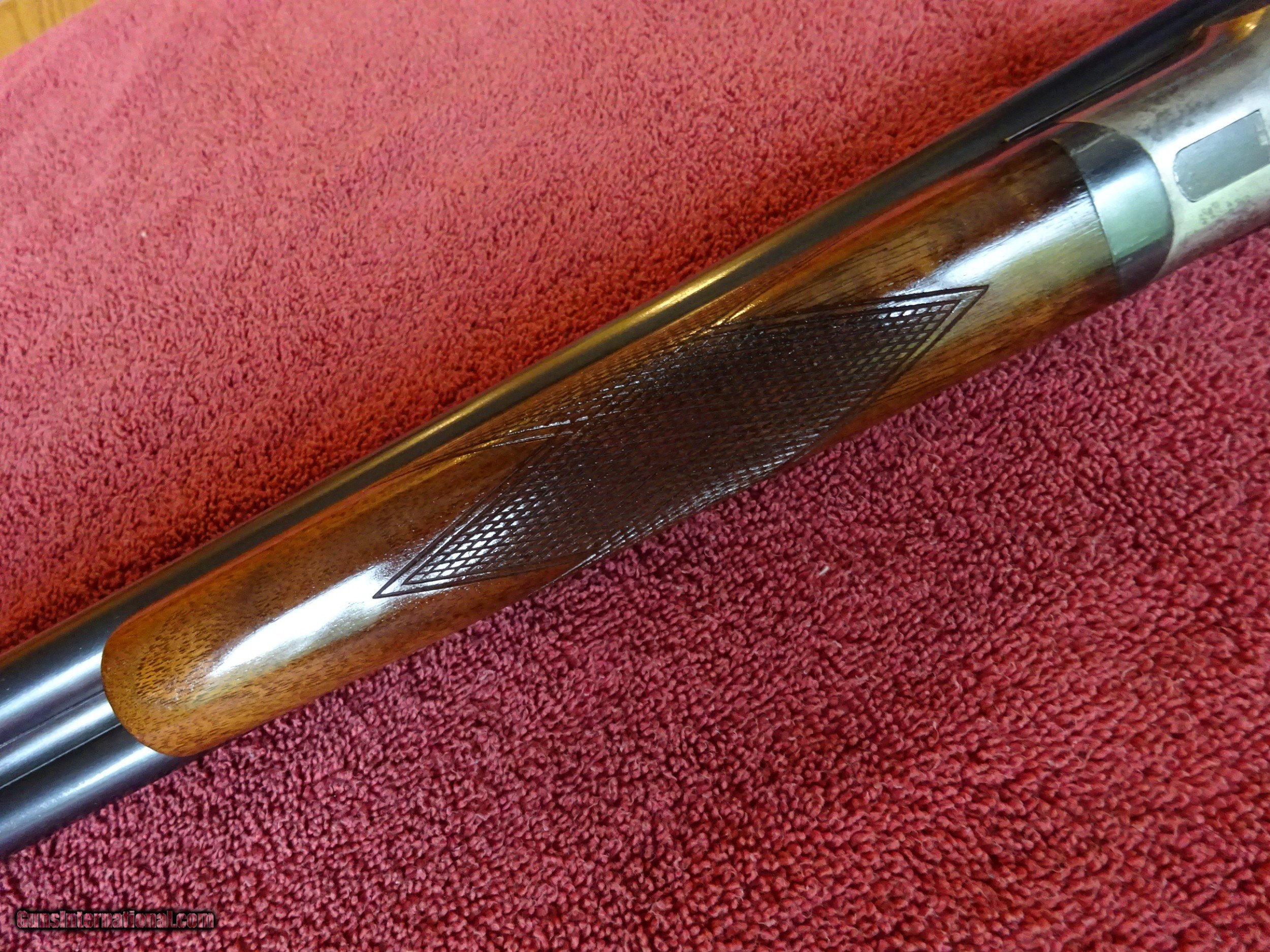 Description: SALE PENDING L C SMITH, HUNTER ARMS, FIELD GRADE, 20 GAUGE. 28" ARMOR STEEL BARRELS, IMCYL. AND MODIFIED, 2 3/4" CHAMBERS, RAISED RIB AND TWIN SIGHTS. 98% ORIGINAL BLUE, MIRROR PERFECT BORES, BARRELS RING BEAUTIFULLY. FEATHERWEIGHT FRAME, BOLD VIVID CASE COLOR, PERFECT SCREWS, TOP LEVER TO THE FAR RIGHT, TIGHT ON FACE. PISTOL GRIP STOCK, SPLINTER FOREARM, EXCELLENT WOOD AND CHECKERING. DIMENSIONS 1 1/4" X 2 1/4" X 14 5/8", SOLID PAD, 6 3/4 POUNDS. NICE GUN MADE IN 1941. $1750.00 + $60.00 Insured shipping to an FFL address. Layaway is available. See all Pats gun listings on this site! We also have hundreds of pieces of ORIGINAL gun company advertising & memorabilia available for sale on our site SPORTINGCOLLECTIBLES. We have no reprints or reproductions. Email for more information. SOLD Curio/Relic: Yes |