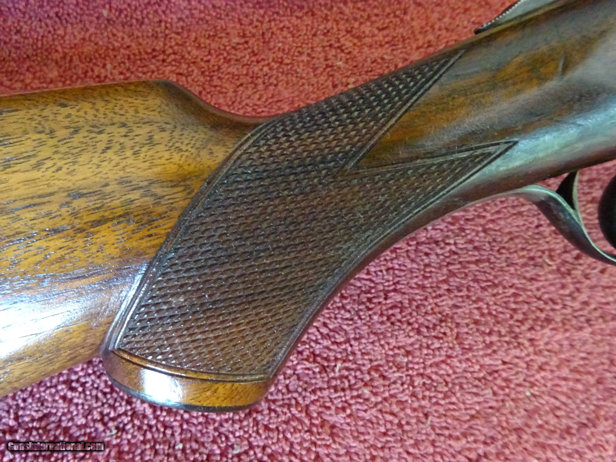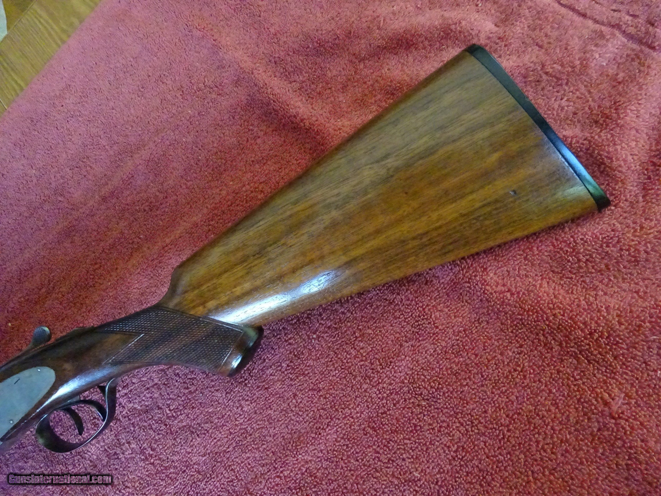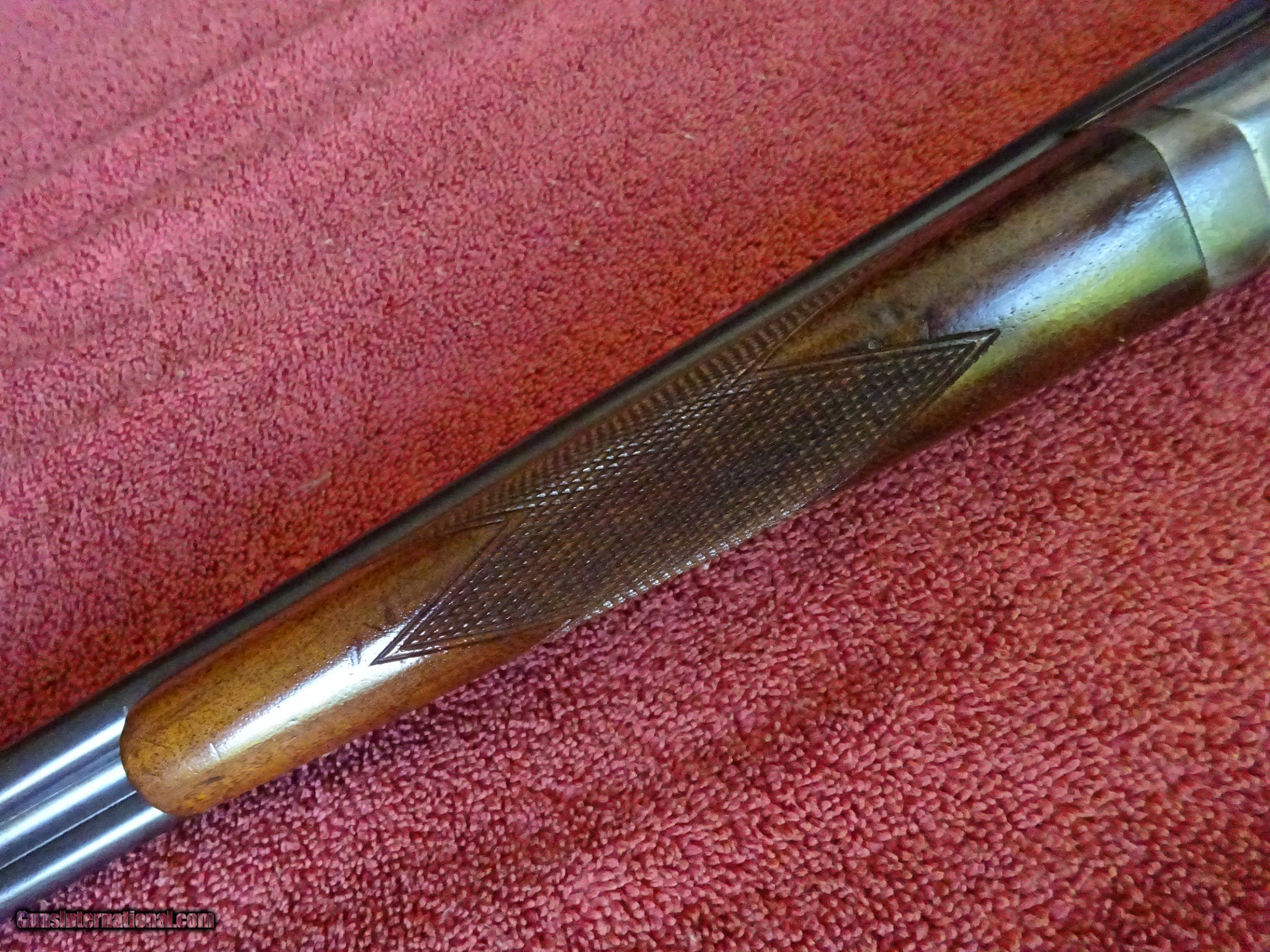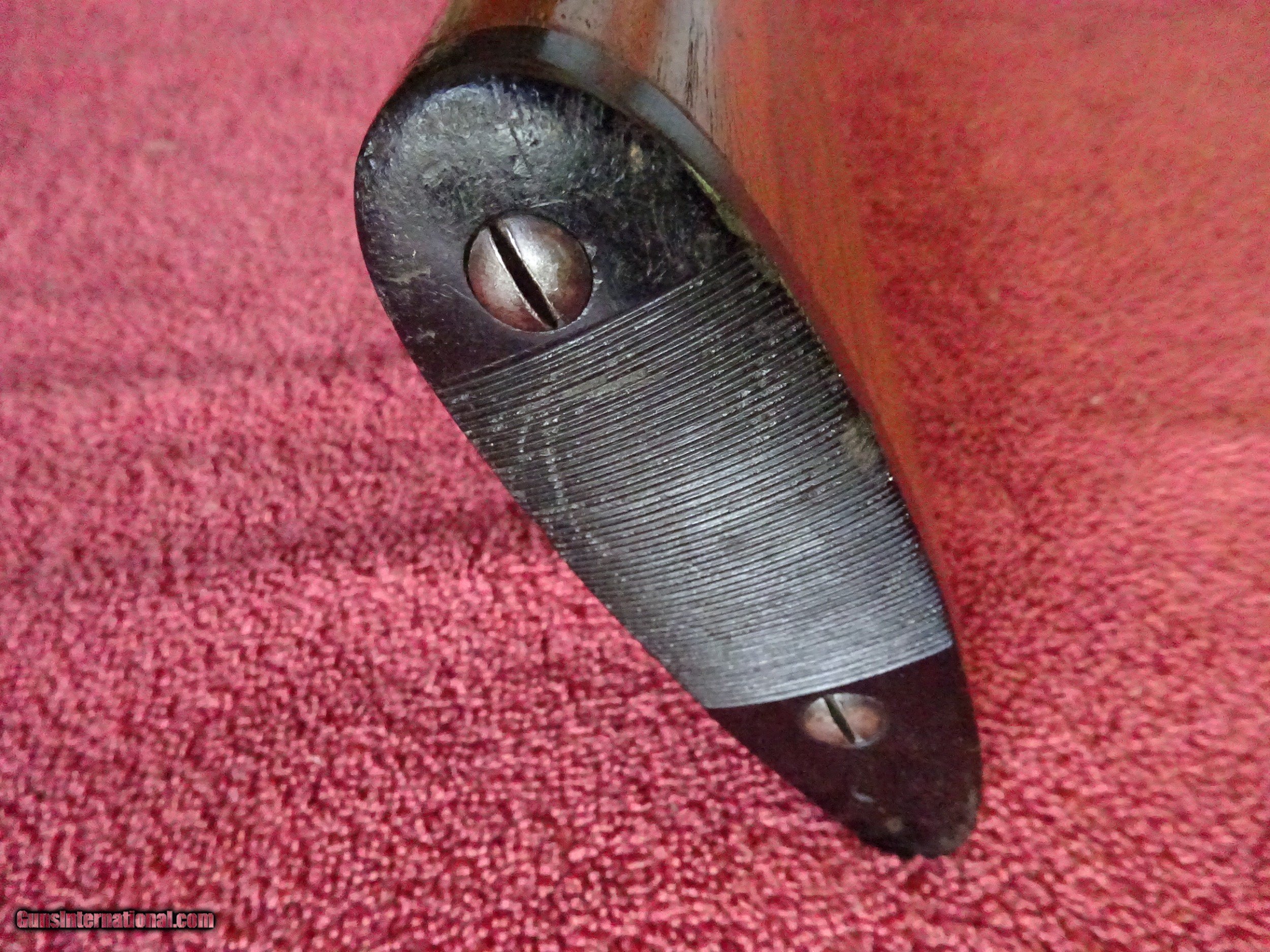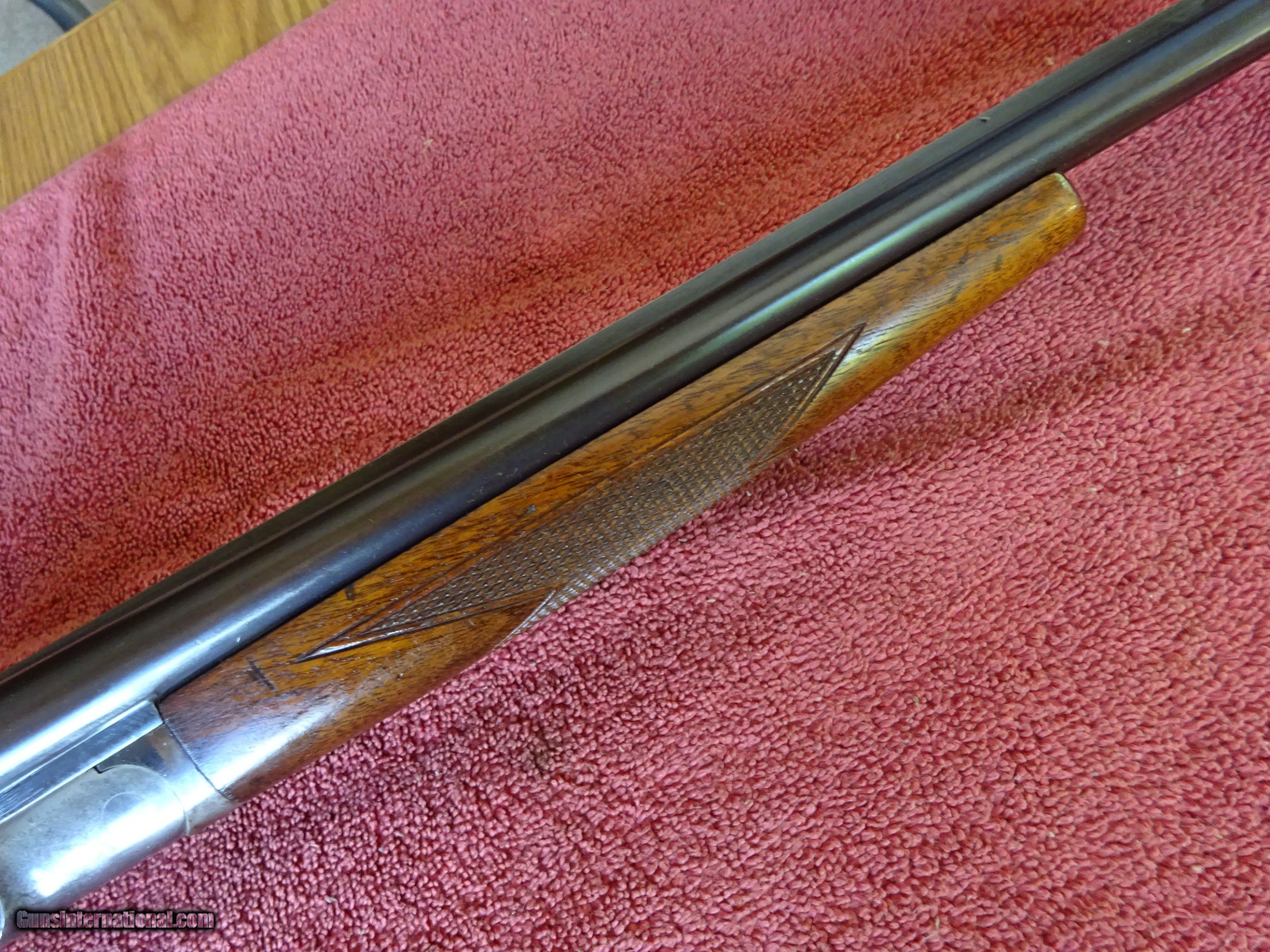 Description: SALE PENDING L C SMITH, HUNTER ARMS CO., FIELD GRADE 410 GAUGE, 26" ARMOR STEEL BARRELS. EXCELLENT BRIGHT BLUE, MIRROR PERFECT BORES, MARKED 3" CHAMBERS, FULL AND FULL. FEATHERWEIGHT FRAME, CASE COLOR IN THE PROTECTED AREAS, TOP LEVER TO THE FAR RIGHT, TIGHT AS NEW. UNTURNED SCREWS. PISTOL GRIP STOCK, ORIGINAL GRIP CAP AND BUTTPLATE, EXCELLENT WOOD AND CHECKERING. MADE IN the 1930s. ONLY ABOUT 1400 GUNS WERE BUILT IN THIS CONFIGURATION. HONEST, ORIGINAL EXAMPLE. DIMENSIONS 1 1/2" x 2 1/2" x 14 1/4" WEIGHT 5 pounds 14 ounces $4950.00 + $60.00 Insured shipping to an FFL address. Layaway is available. See all Pats gun listings on this site! We also have hundreds of pieces of ORIGINAL gun company advertising & memorabilia available for sale on our site SPORTINGCOLLECTIBLES. We have no reprints or reproductions. Email for more information. SOLD Curio/Relic: Yes |