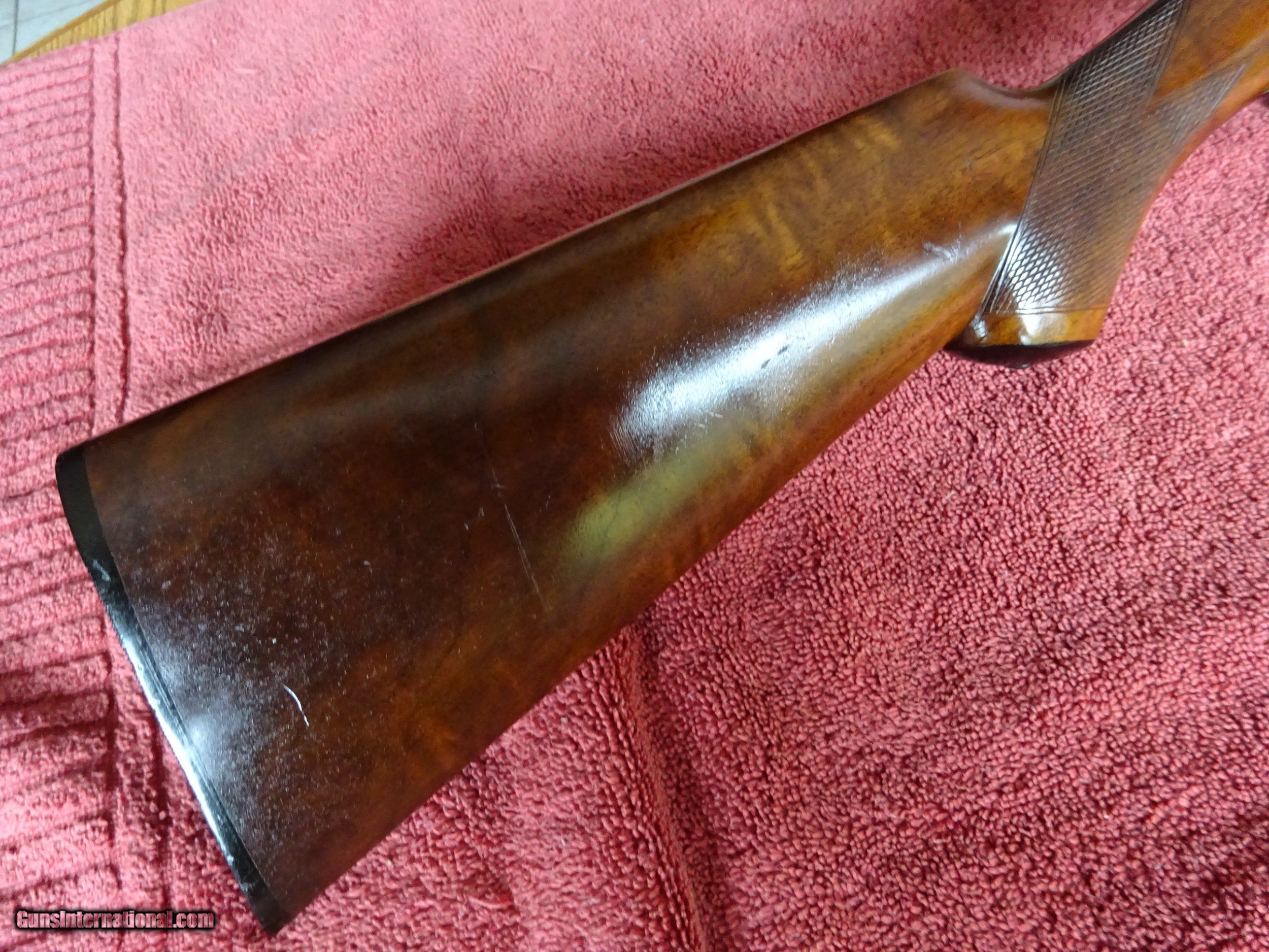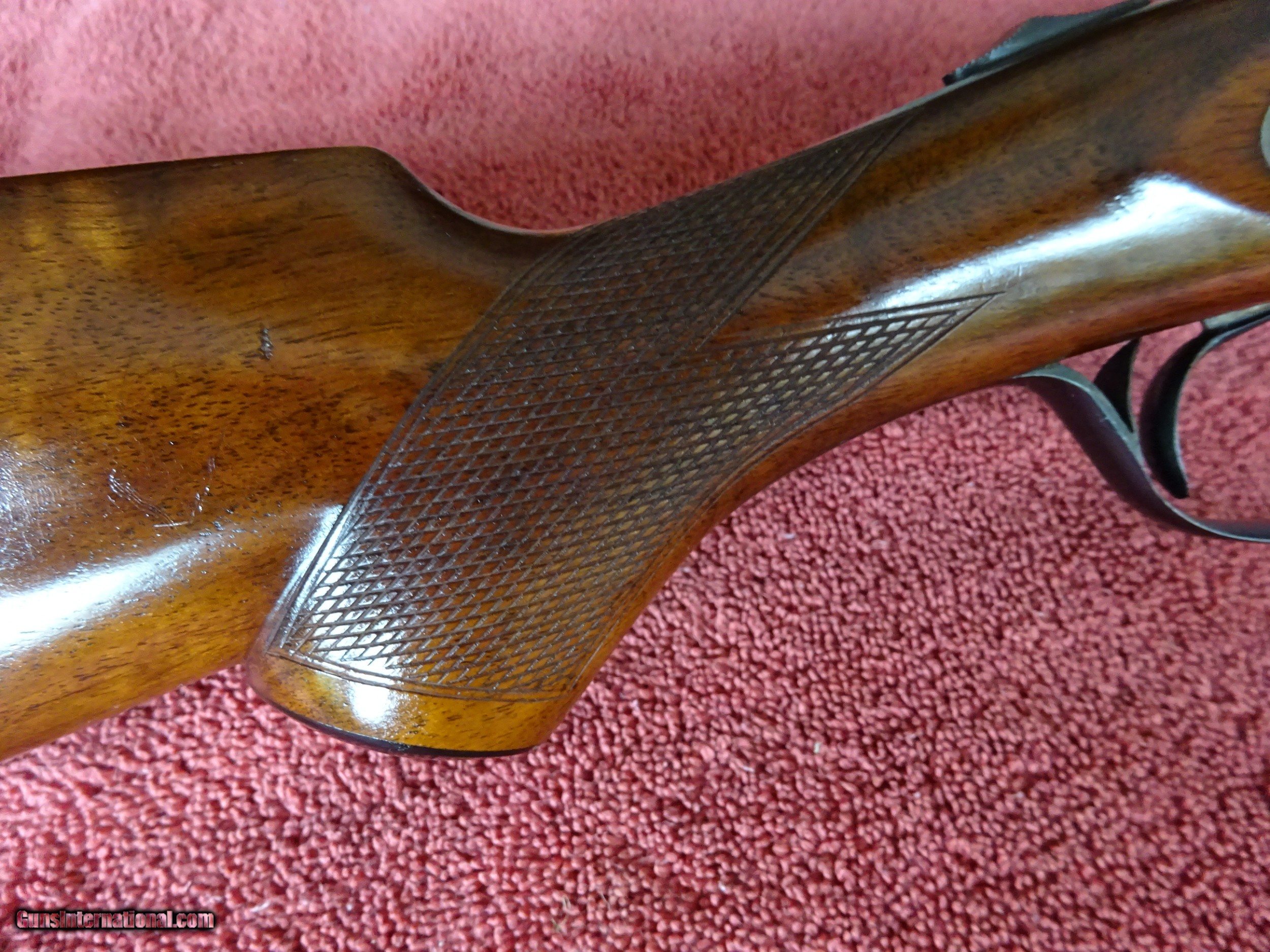 Description: L C SMITH, HUNTER ARMS, SKEET SPECIAL GRADE 12 GAUGE, 26" SKEET & SKEET BARRELS, 99% BRIGHT BLUE, MIRROR PERFECT BORES, AUTO-EJECTORS. FEATHERWEIGHT FRAME WITH MOST ALL THE BOLD VIVID CASE COLOR, PERFECT SCREWS, TOP LEVER TO THE FAR RIGHT. TIGHT ON FACE, BARRELS RING NICELY. PISTOL GRIP STOCK, SPLINTER FOREARM, NICELY FIGURED WOOD. ORIGINAL GRIP CAP AND BUTTPLATE, 1 1/2" X 2 7/8" X 14 1/4", 6 1/2 POUNDS. MADE IN 1931. LESS THEN 100 GUNS BUILT IN THIS CONFIGURATION. NICE GUN, 100% ORIGINAL CONDITION. $3500.00 + $50.00 Insured shipping to an FFL address. See all Pats listings We also have hundreds of pieces of ORIGINAL gun company advertising & memorabilia available for sale. We have no reprints or reproductions. Email for more information. SOLD Curio/Relic: Yes |
