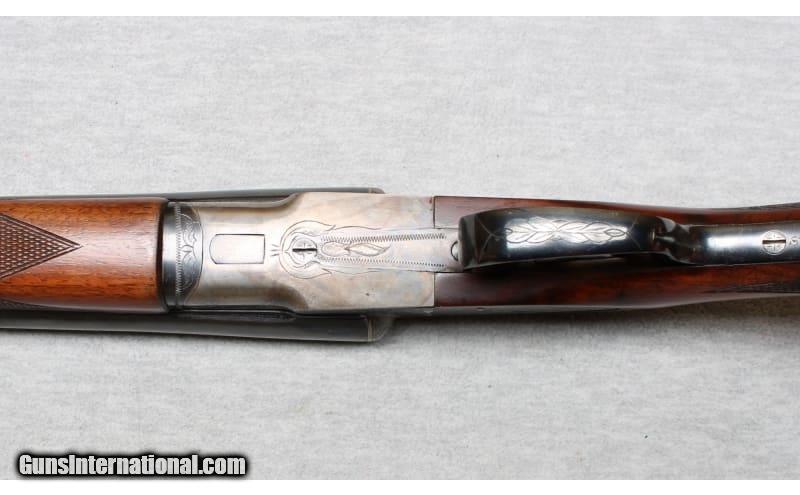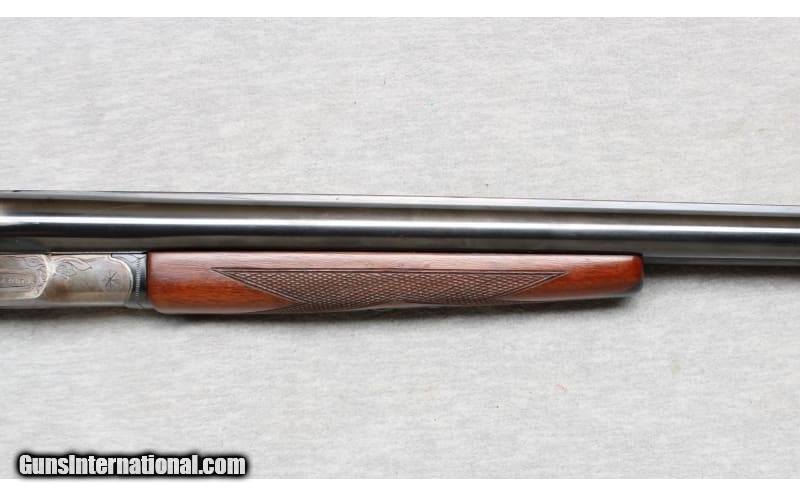 Description: L.C. Smith Ideal Grade Side-by-Side chambered in 16 Gauge. The sidelock action is case hardened with blued barrels and trigger guard. It is equipped with extractors. The right barrel is roll-stamped L.C. SMITH IDEAL GRADE. The engraved lock plates feature floral patterns. The nicely figured walnut stock has perfect checkering with no worn or flat spots. The stock has a 14 inch LOP. This shotgun was manufactured between 1912-1950. Chambers measure 2 ¾ inches and chokes measure modified/full. 16 Gauge SOLD Chambers: 2 3/4 inches Metal Condition: Excellent Wood Condition: Excellent Bore Condition: Good - Some light pitting or frosted appearance Barrels: 26 inch solid rib Triggers: Double triggers Stock Dimensions: LOP 14 Inches Fore End: Checkered walnut Butt Pad: Plastic Sights: White front bead and silver middle bead on solid rib Chokes: Full/Modified Item Location: La Vista, NE |