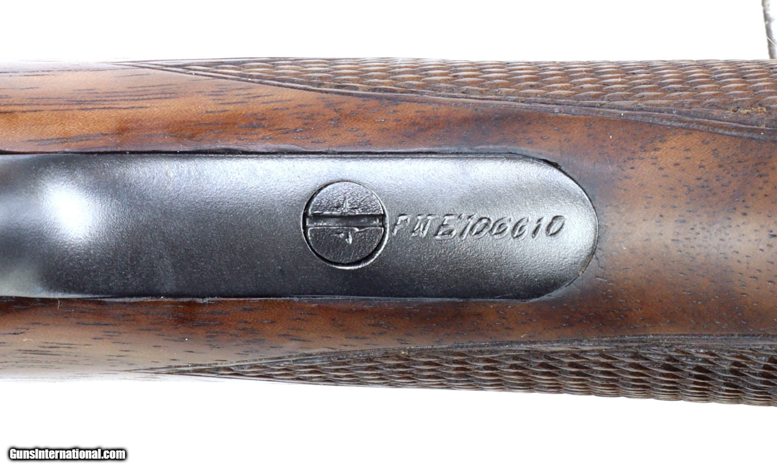 Description: BEAUTIFUL LC SMITH IDEAL GRADE 12 gauge SxS mfg in 1914!, with RARE SINGLE SELECT TRIGGER!!! S/N: FWE106610 28" barrel with chambers extended to 2 3/4", chokes are MOD/FULL and bores are EXCELLENT!!! VERY TIGHT LOCKUP and the wood is HIGHLY FIGURED!!! WT: 6.92lbs LOP: 14" DAC: 1.5" DAH: 2.75" TRIGGER: 3.25lbs BEAUTIFULLY RESTORED by SHOOTER'S EXCHANGE! VISIT SHOOTERSEXCHANGEdotCOM for all your firearm repair and restoration needs! SHIPS INSURED TO THE LOWER 48 FOR $65.00. BUY NOW SHIPS FREE AND NO CC FEE! SOLD Curio/Relic: Yes Shotgun Gauge: 12 Gauge Manufacturer: LC Smith / Hunter Arms Model: SxS Serial Number: FWE106610 Barrel Length: 28 Bore: Excellent Chambers: 2 3/4 Condition: EXCELLENT Metal Condition: Refinished Wood Condition: Refinished Bore Condition: Excellent Triggers: Single Select Stock Comb: 1.5 Stock Heel: 2.75 LOP: 14 Weight: 6.92lbs Sights: Single Brass Bead Manufacture Date: 1901 Choke Left: Full Choke Right: Modified Engraving: yes |