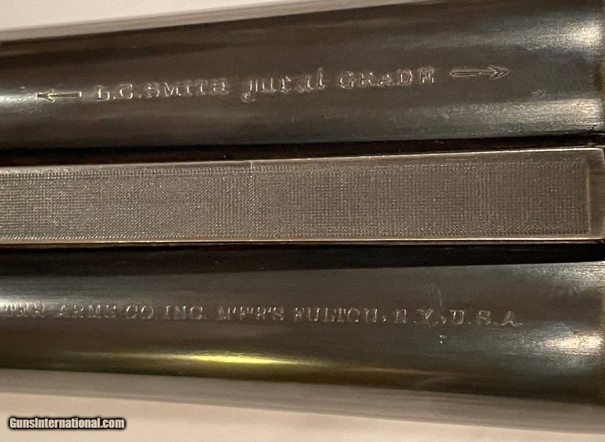 Description: Guns Listing ID: 264079 Beautiful Ideal grade with 30" barrels choked full and improved modified. Has original ivory front and center beads and "Hunter one trigger". Stock and forend have been beautifully refinished and have very crisp checkering and bright wood grain. Barrels appear to have been reblued but still have crisp, legible lettering. Length of pull is 13 7/8". This shotgun doesn't have the usual automatic safety but instead will stay on "fire" after being opened. You won't be disappointed in this fine example of a classic Ideal grade. SOLD Manufacturer: L.C. SMITH Model: Ideal Grade Condition: Used - Non-Certified Barrels: 30 BARREL Gauge Info: 12 GA Finish: BLUED |