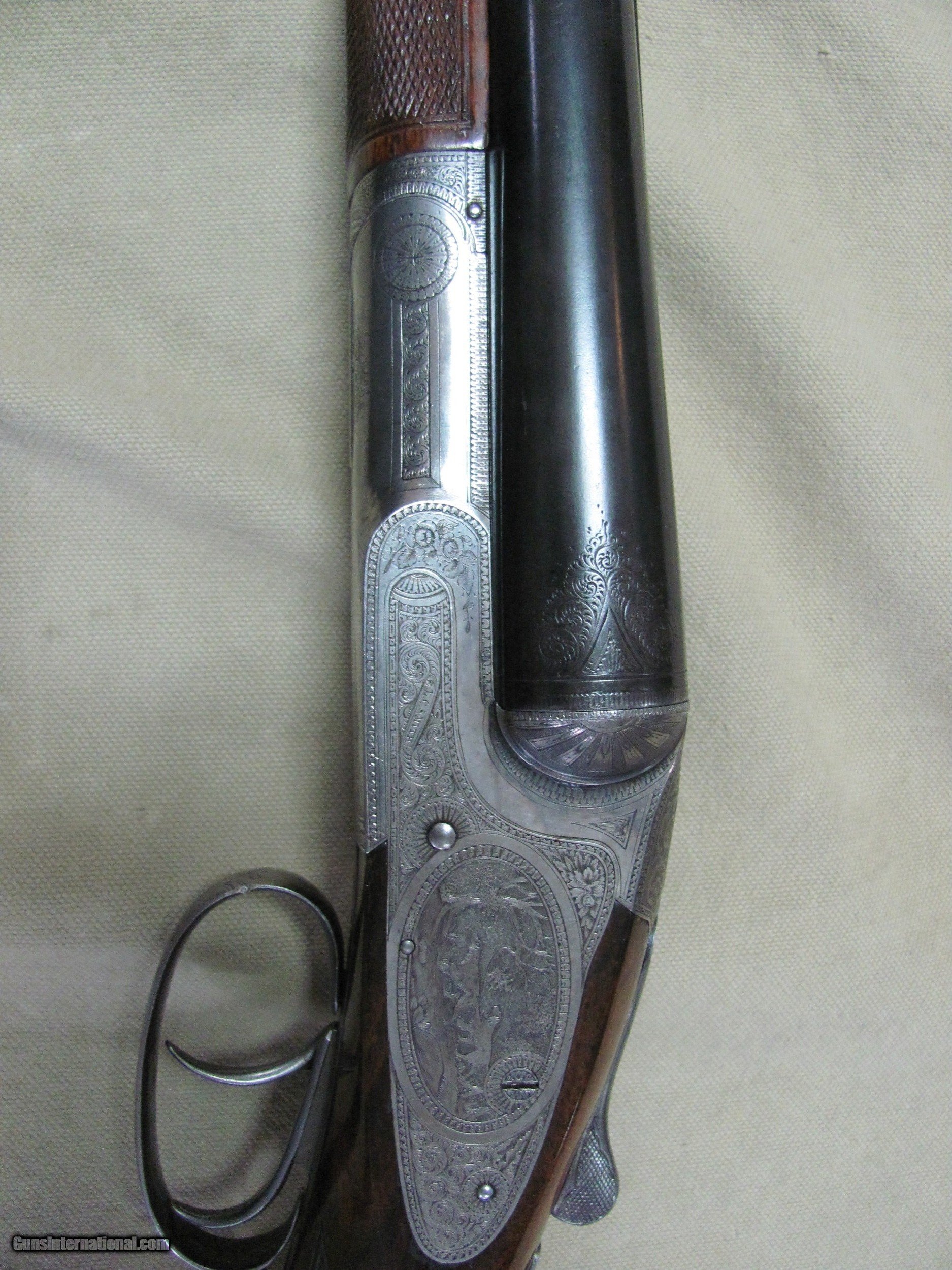 Description: THIS IS A L.C. SMITH “MADE TO ORDER” BY HUNTER ARMS CO 12ga SXS SHOTGUN THIS ONLY ALLOWS 25 PICTURES. IF YOU NEED MORE PLEASE ASK. THIS IS ONE OF THE GUNS WE BOUGHT FROM A LOCAL MAN “WESLEY M KING” WHO OWNED THE LOCAL CENTURY 21 FOR DECADES AND SOLD THE 1ST COMPUTERS TO SAM WALTON TO USE IN WALMART PHARMACY’S BACK IN THE 1970’S. HE HUNTED WITH SAM WALTON REGULARLY. ALL OF WES’S GUNS WERE UNIQUE AND NONE WERE “SAFE QUEENS”. ALL THE SERIAL NUMBERS “2195” MATCH AND ALTHOUGH L.C. SMITH SERAL NUMBERS DATING IS CONFUSING, I BELIEVE 1946 MIGHT BE THE MANUFACTURE DATE. THE 1946 ERA SEEMS TO BE A DATE THAT MOST OF MR KINGS SHOTGUNS WERE SHE WILL CHAMBER 2-3/4” 12GA ROUNDS THE BLUE FINISH WOULD RATE ABOUT 86% THE HIGHLY ENGRAVED SILVER FINISH HAS A LOT OF PATINA THE WOOD STOCK AND FOREND HAVE BREATH TAKING CHARACTER AND YEARS OF WEAR THE BORES OF THE 30” EXTRA FULL & FULL FIXED CHOKED BARRELS ARE SOME WHAT BRIGHT & SHINY BUT HAVE SOME MILD PITTING THE LENGTH AS SHOWN IN THESE MANY CLOSE UP PICTURES WITH NOTHING ELSE UNDERSTAND THAT WE WILL PUT A SIGNATURE ON THE PACKAGE SO IT WONT GET LEFT ON A PORCH AND IF THAT IS UNACCEPTABLE THEN I’M SORRY BUT PLEASE DON’T BUYER PAYS A FIXED AMOUNT OF 30.00 UPS GROUND INSURED SHIPPING TO THE LOWER 48 MAINLAND STATES. SHIPPING TO ALASKA, HAWAII OR PUERTO RICO WOULD BE 75.00 NO SHIPMENTS OUTSIDE THE USA. MISSOURI RESIDENTS DO PAY A 8.075% SALES TAX. NO EXTRA CHARGE FOR CREDIT CARDS. BRANDON'S GUN TRADING CO LLC 321 EAST 20TH ST JOPLIN MO. 64804 (417)-623-8787 FAX (417)-623-2326 9-5 TUESDAY-SATURDAY CENTRAL TIME WE ARE ALSO CLOSED THE 1'ST SATURDAY OF EVERY MONTH AND HOLIDAYS. WE DO OFFER A STORE LAY-A-WAY AND THE POLICY GOES LIKE THIS; YOU MUST ALSO MAKE A NOTATION WITH ANY MAIL TO US THAT YOU ARE USING THE LAY-A-WAY OPTION. 1/3RD DOWN WITH IN 10 DAYS OF THE CLOSE. ITEM MUST BE PAID OFF WITH IN 3 MONTHS OF THE CLOSE A CREDIT CARD "CAN NOT" BE USED AS A DOWN PAYMENT FOR A LAY-A-WAY BUT “CAN” BE USED TO PAY OFF THE BALANCE OF A LAYAWAY. THE DOWN PAYMENT OF A LAYAWAY MUST BE MADE BY “CASHIERS CHECK OR MONEY ORDER” IF YOU DO NOT PAY OFF THE LAY-A-WAY WITH IN 3 MONTHS, THE ITEM WILL BE RE-LISTED AND YOU WILL FORFEIT ANY MONEY PUT DOWN. NO EXCEPTIONS! INVENTORY PAGE AA1205 PLEASE NOTE, UPS SERVICE HAS GOTTEN SO BAD UNDER CURRENT MANAGEMENT THAT WE WON’T SHIP UPS UNLESS WE ABSOLUTELY HAVE TOO. WHEN WE DOUBLE PACK, INSURE, ADD SIGNATURE, USE GOOD BOXES AND UPS DRIVER EVEN NOTES THEY DAMAGED THE ITEM AND THEY STILL WONT PAY. ALSO, ANY INSURANCE WE DO PUT ON OUR PACKAGES IS VOID IF YOU OR YOUR DEALER THROWS AWAY THE BOX, ANY PACKING MATERIALS OR FAILS TO PICTURE AND NOTIFY US AND THE SHIPPING COMPANY IMMEDIATELY SOLD Curio/Relic: Yes Manufacturer: L.C. SMITH “MADE TO ORDER” BY HUNTER ARMS CO Model: SXS Serial Number: 2195 Caliber Info: 12GA Bore: 30 Condition: USED |