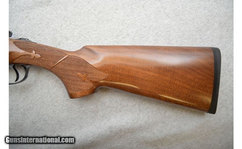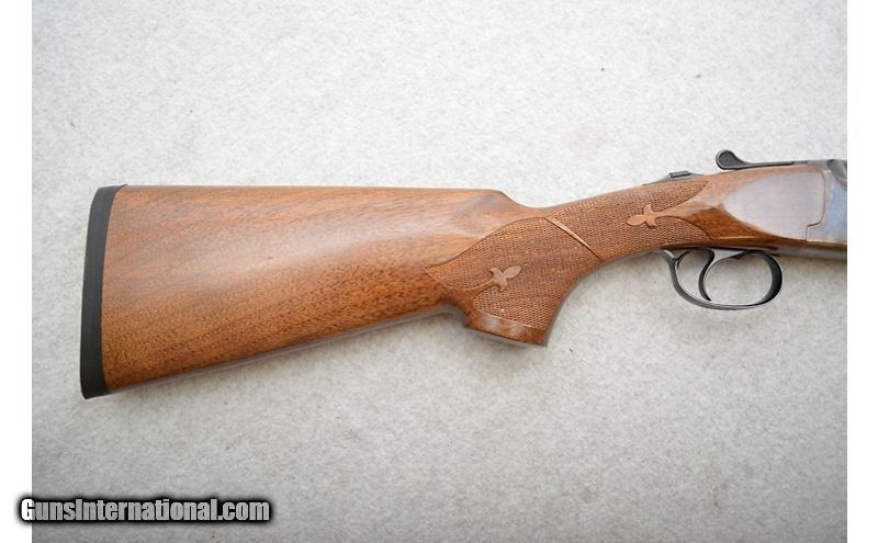 Description: Very good to excellent condition overall. The metal has a few tiny little scratches on the barrel but no rust. The furniture also has a few very shallow dents; the only easily visible one is found between the comb and heel about ¼" from the recoil pad on the right side of the stock. There are also a few missed peaks in the checkering. Comes with the mentioned choke tubes. 20 Gauge SOLD Curio/Relic: Yes Chambers: Break action over/under chambering up to 3" shells. Has shell ejectors. Metal Condition: Very good. Wood Condition: Very good. Bore Condition: Excellent. Barrels: 26" Blued with ventilated rib. Triggers: Blued metal with smooth face. Single selective with top tang mounted safety/selector. Stock Dimensions: Gloss finished fleur-de-lis checkered walnut with 13½" LOP. Fore End: Gloss finished walnut with fleur-de-lis checkered side panels. Butt Pad: Black rubber Decelerator pad. Weight: 6lbs Sights: Brass front bead. Chokes: "Comes with two improved modified, and a modified flush fit chokes. It also comes with an improved modified, full, and modified extended chokes. Item Location: Green Bay |