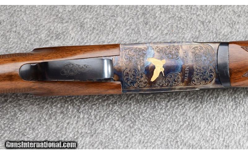 Description: This little L.C. Smith was manufactured by Marlin from 2007 until 2009. This gun remains excellent throughout showing little use. Blue and bore are also excellent. This is an Ejector gun with a Single Selective Safety. Absolutely beautiful gun with gold game birds on case colored receiver! 28 Gauge SOLD Chambers: 2 3/4 Metal Condition: Excellent Wood Condition: Excellent Bore Condition: Excellent Barrels: 26" Solid Rib Triggers: Single - Selective Safety Stock Dimensions: 14 1/2" LOP - DAC 1 3/8" - DAH 2 1/4 Fore End: Checkered Walnut Semi Pistol Grip - Checkered Walnut Splinter Forend Butt Pad: Textured Black Synthetic Butt Pad Weight: 6lb Sights: Single Front Brass Bead Chokes: Improved/Modified Screw-In Choke Tubes Item Location: Wheeling |