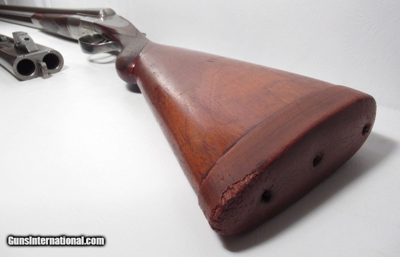 Description: LIQUIDATING PERSONAL COLLECTION!!! SALE PENDING!!! L.C. Smith Antique Hammerless Shotgun; Serial No. 44991; 12 ga. “O” Grade Made in 1897; 2 Sets of Numbered Barrels; both sets 30”, one set choked Full & Full – the other set choked Imp.Cyl. & Imp.Cyl.; Gun is Tight as New with lever far to right; Beautiful Damascus Pattern on Both Barrels which have Ivory Bead Front Sights with one set having a Mid-Rib Bead; Bores are Shiny and have No Flaws; Case Colors mostly faded out; Wood Good with repair (pin) to fore end; 14 ½” Pull to old recoil pad; DAH 3 1/8”; DAC 1 5/8”; ALL NUMBERS MATCH; Classic 122 Year-Old American Double; antique, Price: $900 Shipped; Price includes insured shipping; Buyers: We ;return policy: three days inspection from the date the item is received; full refund of shipping both ways ONLY IF THE ITEM IS MISREPRESENTED. Note: International sales only as laws permit. (Scroll to view 20 photos of this item). SOLD Antique: Yes Manufacturer: LC Smith Model: 12 ga. Double Serial Number: 44991 |