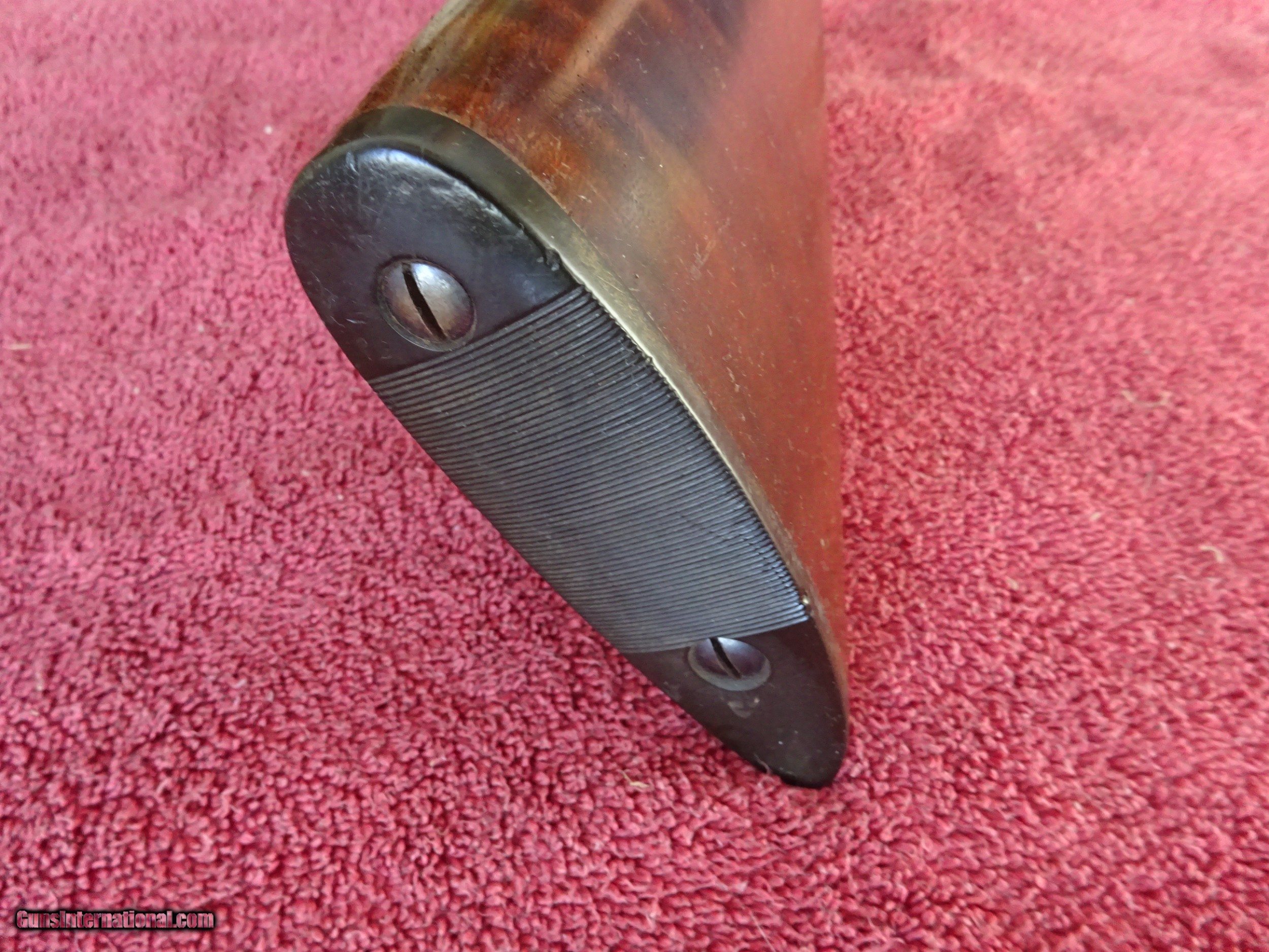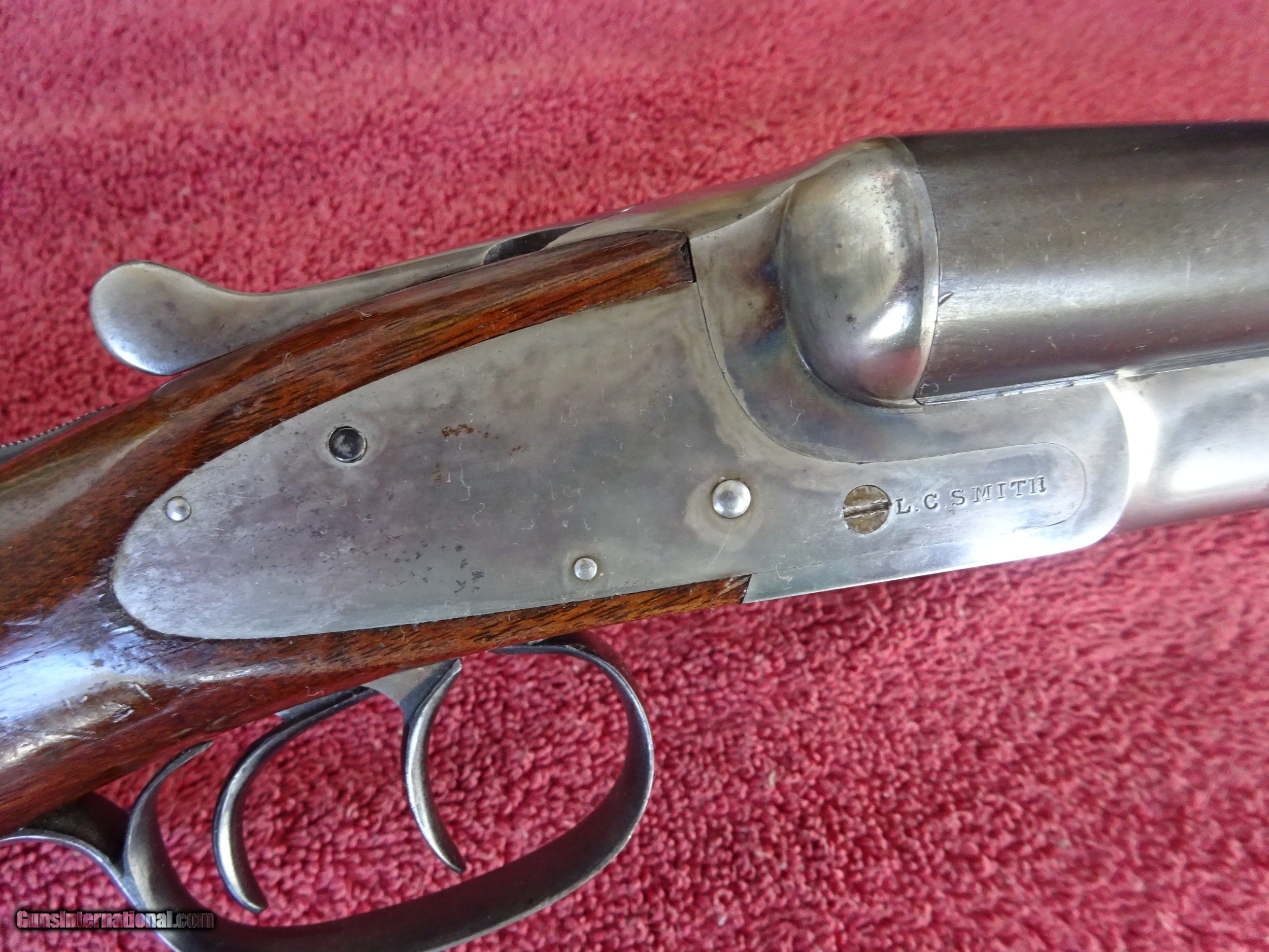 Description: L C SMITH, HUNTER ARMS, OO GRADE, 12 GAUGE, 28" BARRELS, VERY GOOD BLUE, MIRROR PERFECT BORES, SINGLE BEAD SIGHT, MODIFIED (.025) AND FULL (.040, 2 1/2" CHAMBERS, AUTOMATIC EJECTORS, BARRELS RING LIKE A BELL. FEATHERWEIGHT FRAME, VIVID CASE COLOR IN THE PROTECTED AREAS, EXCELLENT SCREWS, AUTO SAFETY, TOP LEVER TO FAR RIGHT, TIGHT ON FACE. ROUND KNOB GRIP, SPLINTER FOREARM, VERY GOOD WOOD AND CHECKERING, NUMEROUS RUBS AND SCRATCHES IN THE VARNISH, ORIGINAL BUTTPLATE. GREAT DIMENSIONS 1 1/2" X 2 1/2" X 14 1/8", 6 POUNDS 5 OUNCES. GREAT HANDLING SMITH, UNUSUAL HIGH DIMENSIONS FOR THIS ERA GUN. MADE IN 1911. VERY HARD GUN TO FIND IN THIS CONFIGURATION. 100% ORIGINAL CONDITION, FUNCTIONS PERFECTLY. $975.00 + $60.00 Insured shipping to an FFL address. Layaway is available. See all Pats gun listings on this site! We also have hundreds of pieces of ORIGINAL gun company advertising & memorabilia available for sale on our site SPORTINGCOLLECTIBLES. We have no reprints or reproductions. Email for more information. SOLD Curio/Relic: Yes |