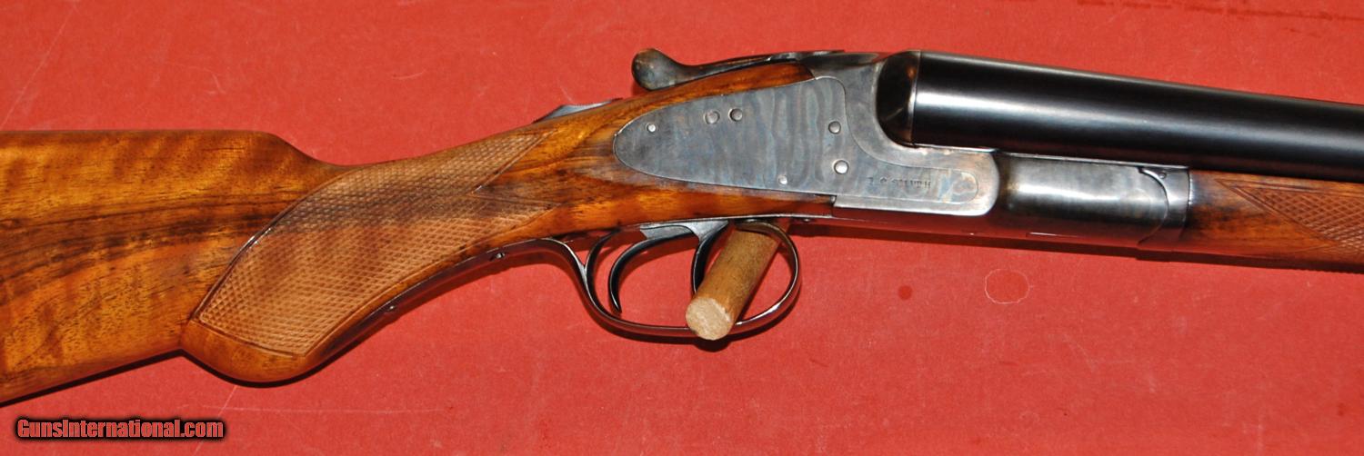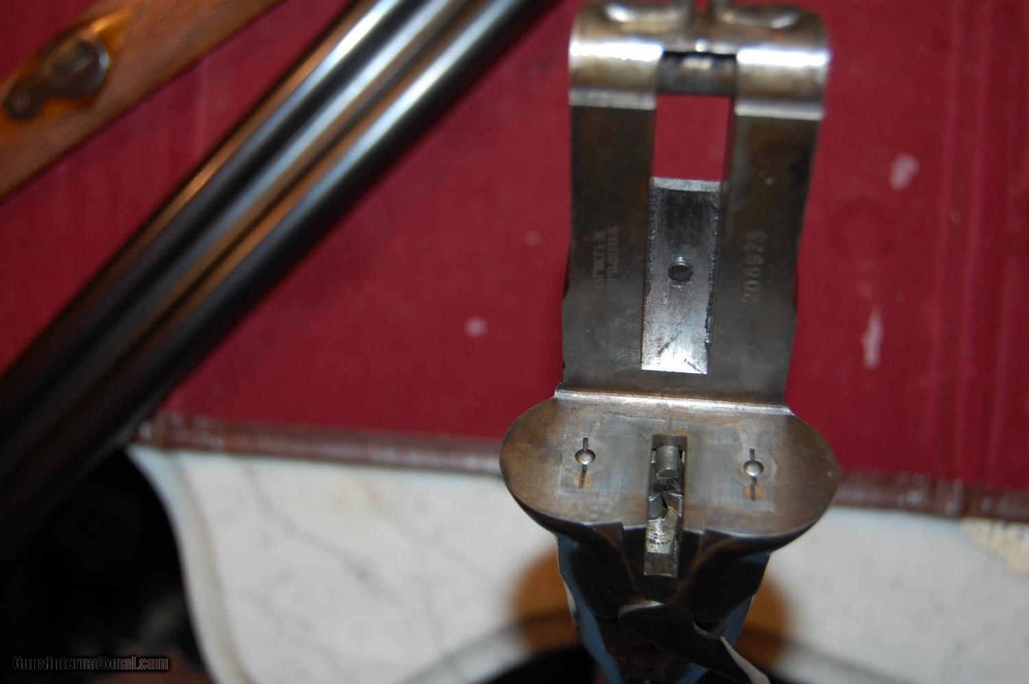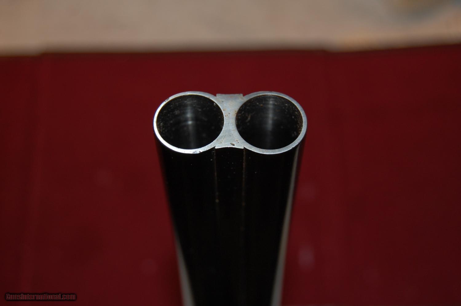 Description: L.C.Smith OO grade 12ga.This early Smith has 30" barrels choked full and full.It has a semi pistol grip stock,double triggers,and ejectors.This gun has been professionally restored to 100%case colors and 100% barrel blue.The barrels are tight and on face.The stock is sound with no cracks or damage.A great gun for hunting or for vintage clays shoots.C&R eligible. SOLD Curio/Relic: Yes Manufacturer: L.C.Smith Model: OOE Serial Number: 208975 Chambers: 23/4 Ejectors: yes Wood Condition: excellent Barrels: 30 Gauge Info: 12 Stock Dimensions: 141/4"x11/2"x25/8 Weight: 7-14 Choke Left: full Choke Right: full |