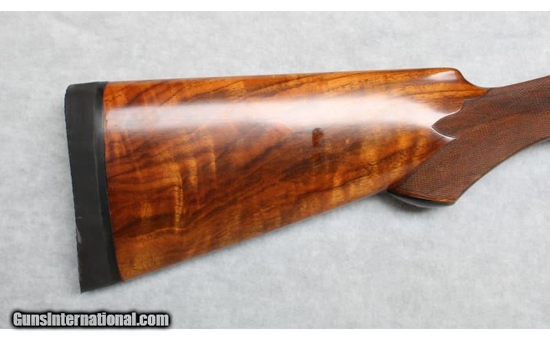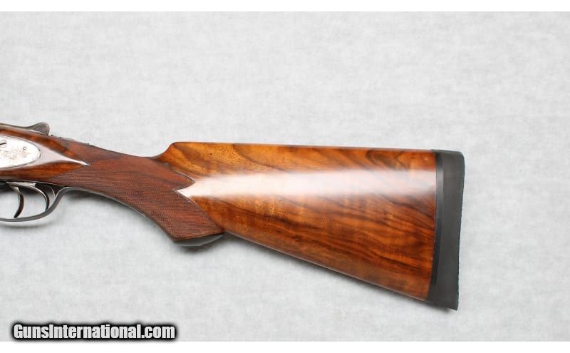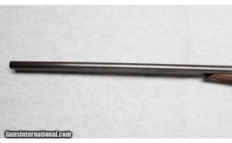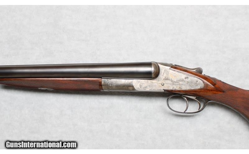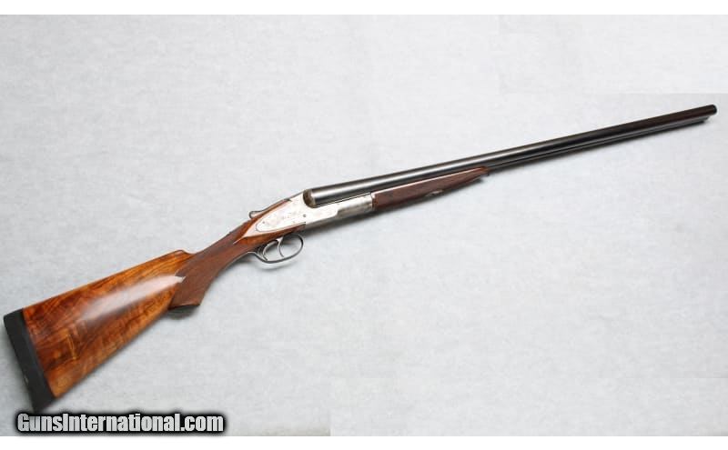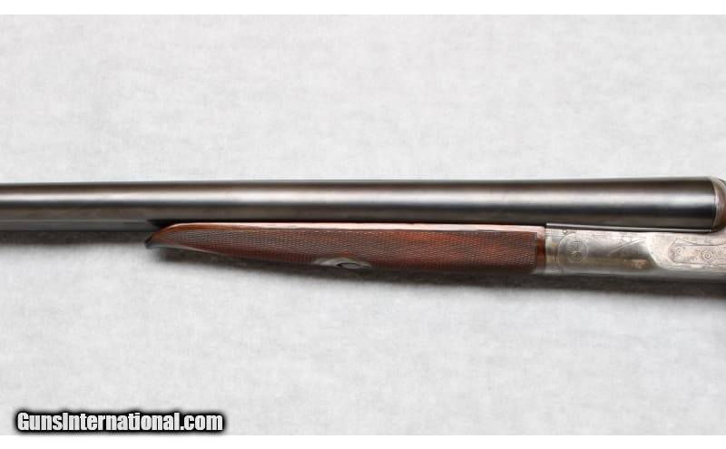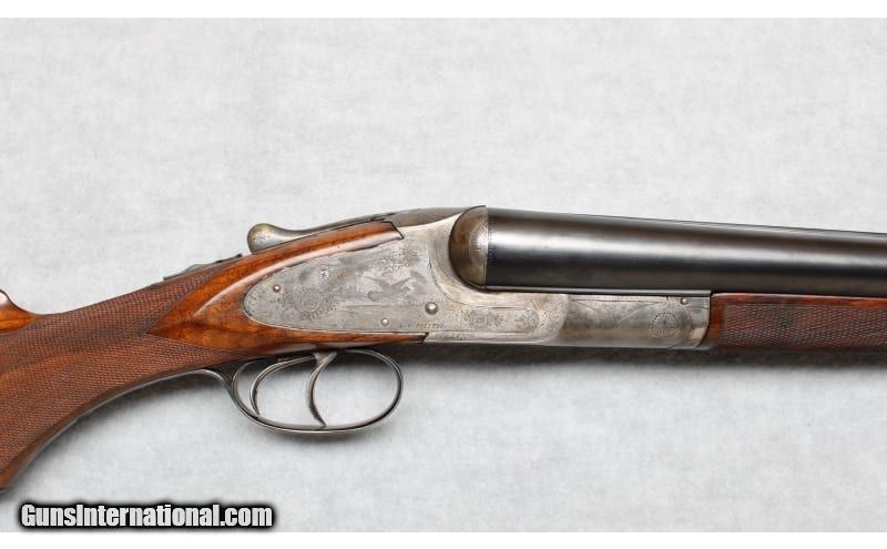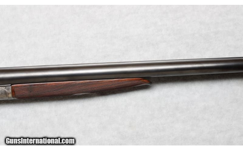 Description: L.C. Smith Pigeon Grade in 12 Gauge. This shotgun has 30-inch barrels with broad, slightly concave, matted rib with pigeon engraved on extension. The barrel is engraved "HUNTER ARMS CO. MAKERS FULTON N.Y. CROWN STEEL". Features checkered double triggers. Action is engraved with feather bursts on and behind fences, and sprays of scroll. Lockplates are engraved with nicely cut areas of scroll as counterpoint to well engraved scenes of pigeons in detailed backgrounds; pigeon perched in field on left and flying pigeon on right. "L.C. SMITH" is at bottom of each lockplate. Trigger guard with scroll on bow, has SN at grip. Dense, mottled American walnut straight grip buttstock measures 14 inches over rubber buttpad. Matching splinter ejector forend with fleur-di-lis ribbons through near full checkering, has inset ebony, slightly schnabeled tip, and typical J-spring catch with sliding push-button secondary release in round escutcheon. 12 Gauge SOLD Chambers: 3 Inches Metal Condition: Excellent Wood Condition: Excellent Bore Condition: Bright Barrels: 30 inches Triggers: Double triggers Stock Dimensions: LOP 14 Inches Fore End: Finely checkered walnut Butt Pad: Rubber pad Sights: Single bead on a game rib Chokes: Full/Full Item Location: La Vista, NE |