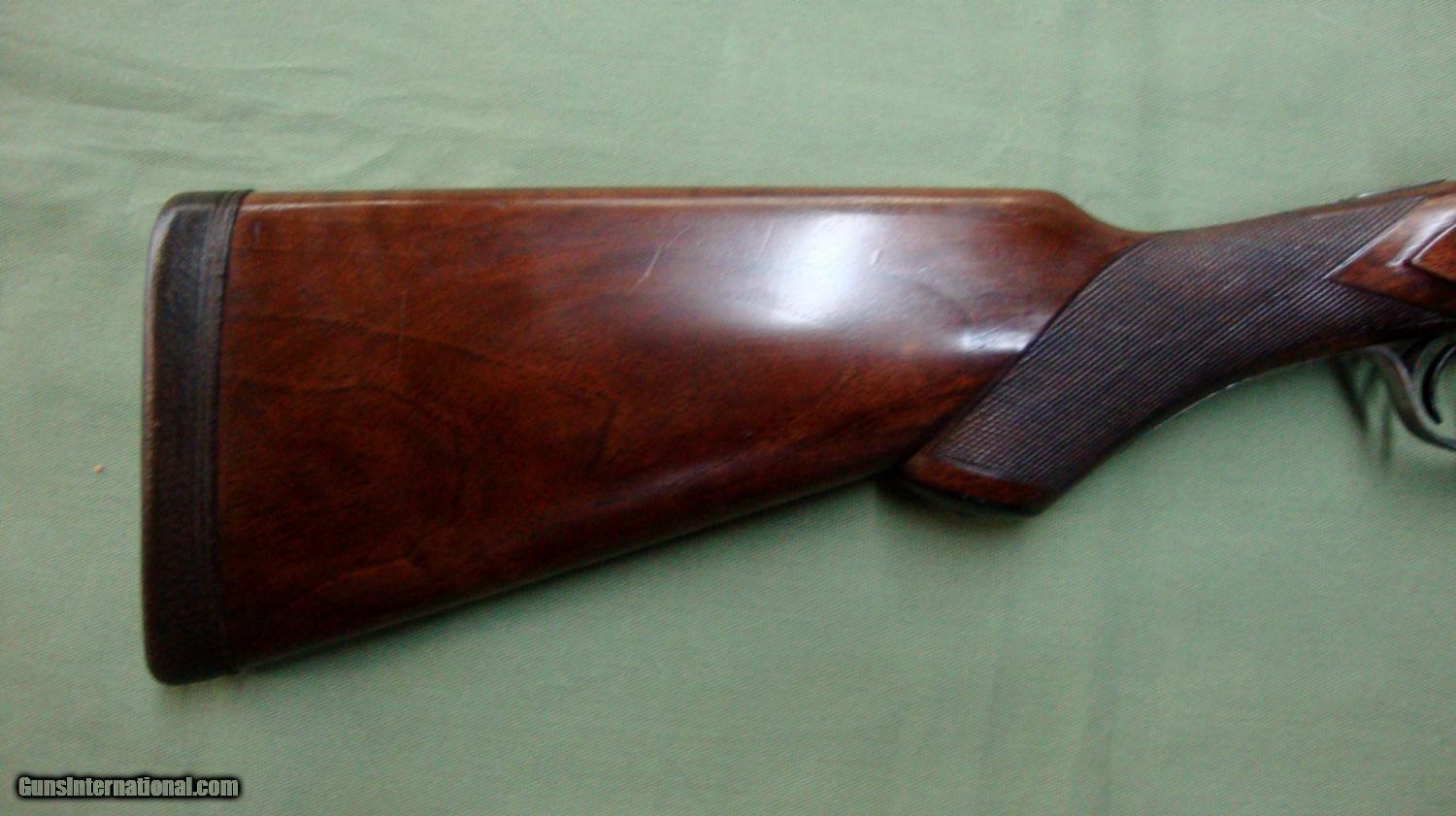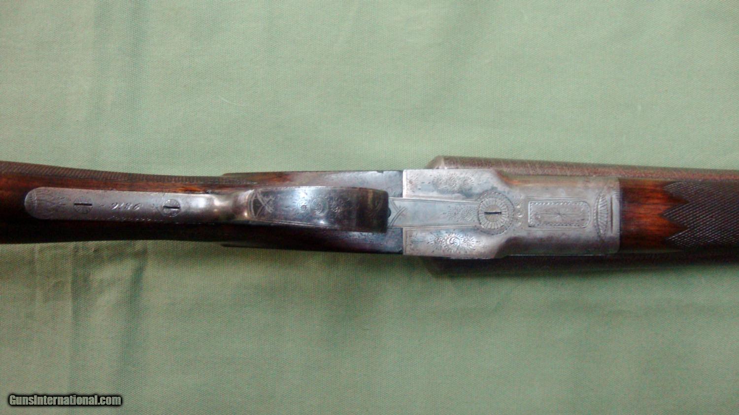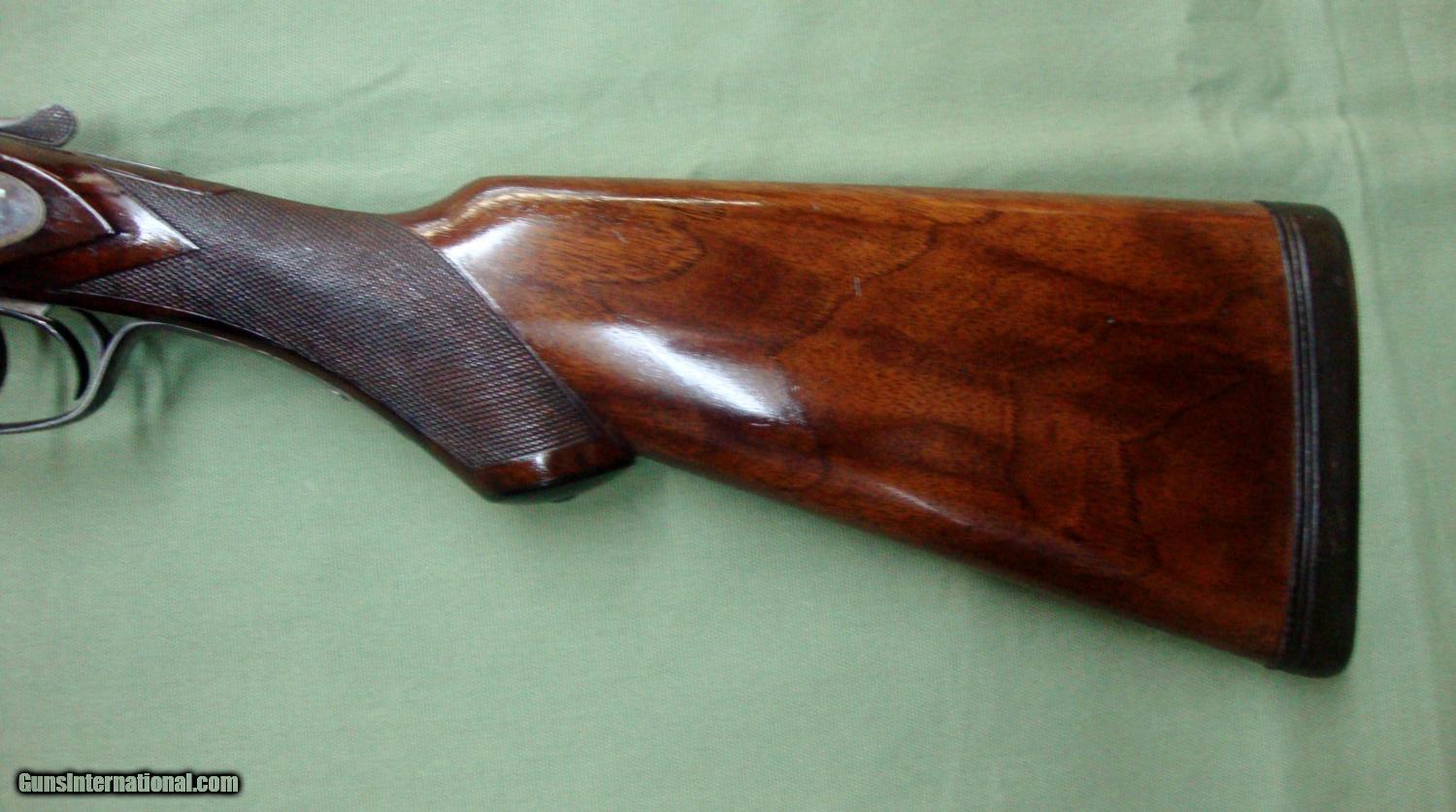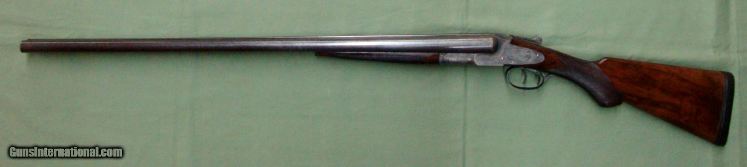 Description: L.C. Smith Pigeon Grade 12GA. This gun was manufactured in 1913. 12 bore, 2-3/4" chambers, double triggers, 30" barrels choked .020 and .035, 14" length of pull, case hardened finish, chained damascus steel barrels, beautiful wooden stock and forearm. Original condition. SOLD |