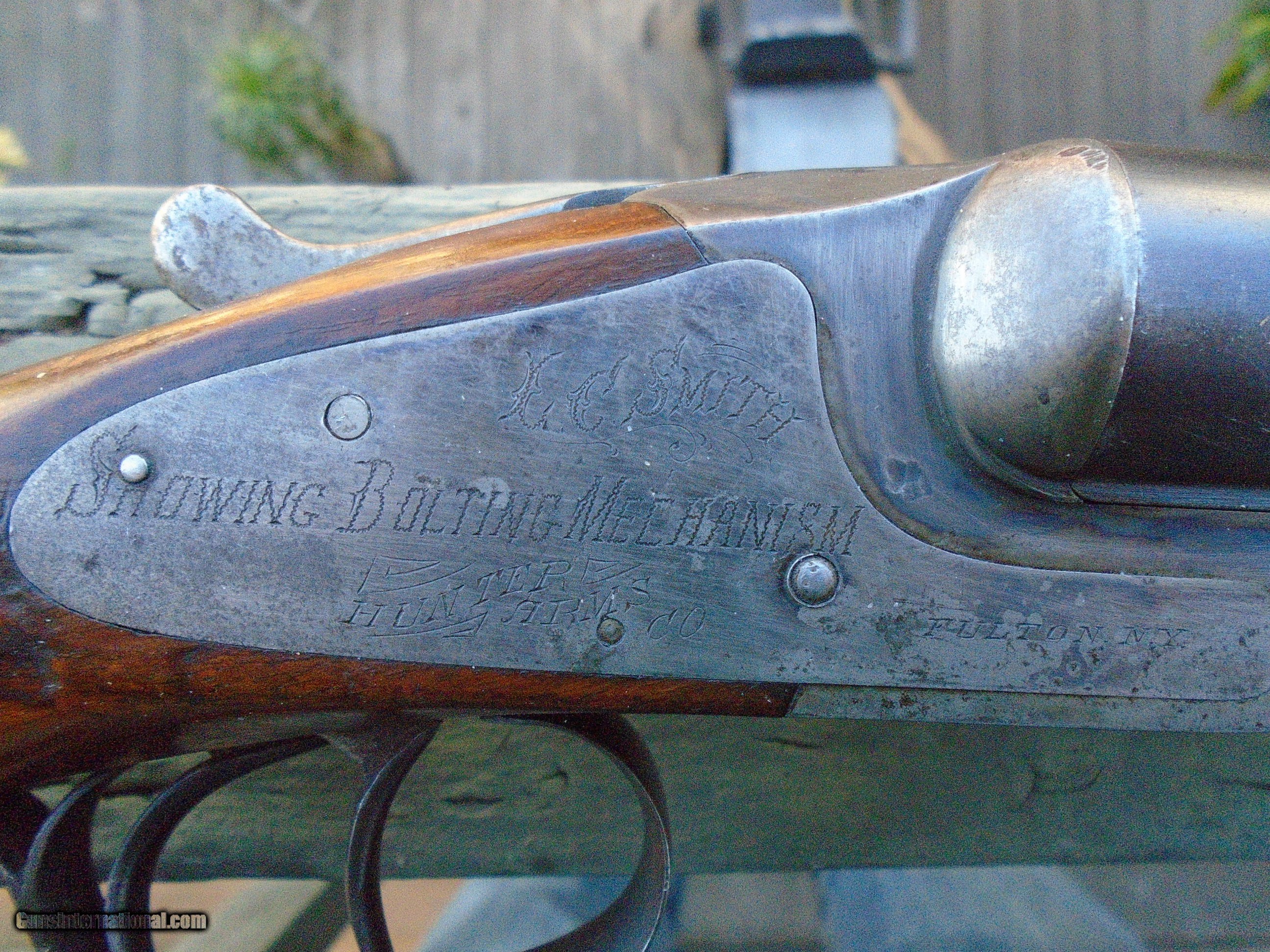 Description: L.C. Smith Salesman’s Cutaway showing rotary bolting mechanism. Good condition. In addition to the section of the action that has been "cutaway" to show internal workings parts, the right side is nicely engraved "L.C. Smith/Showing Mechinesm/ Hunter Arms Company/ Fulton, NY". Only a few of these are known. Many of the American gunmakers of the period made salesman’s models showing the internal workings of the firearm’s internal parts. They were made short enough to be carried in a suitcase. This unique example will make a fine addition to your L.C. Smith collection. (This is not a functional firearm) SOLD Curio/Relic: Yes Shotgun Gauge: 12 Gauge Manufacturer: Hunter Arms CO, Fulton, NY Model: L C Smith Serial Number: 54 Condition: Good |
