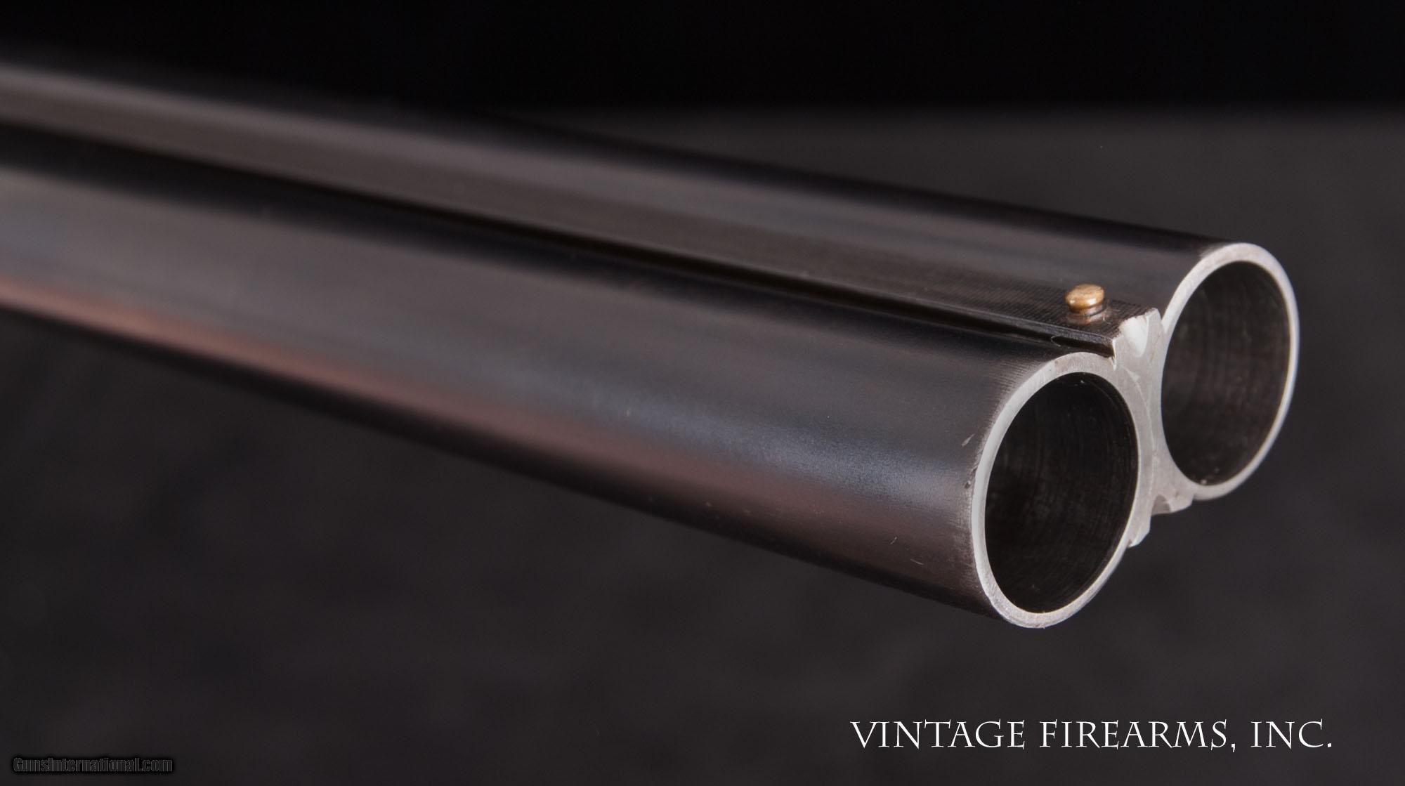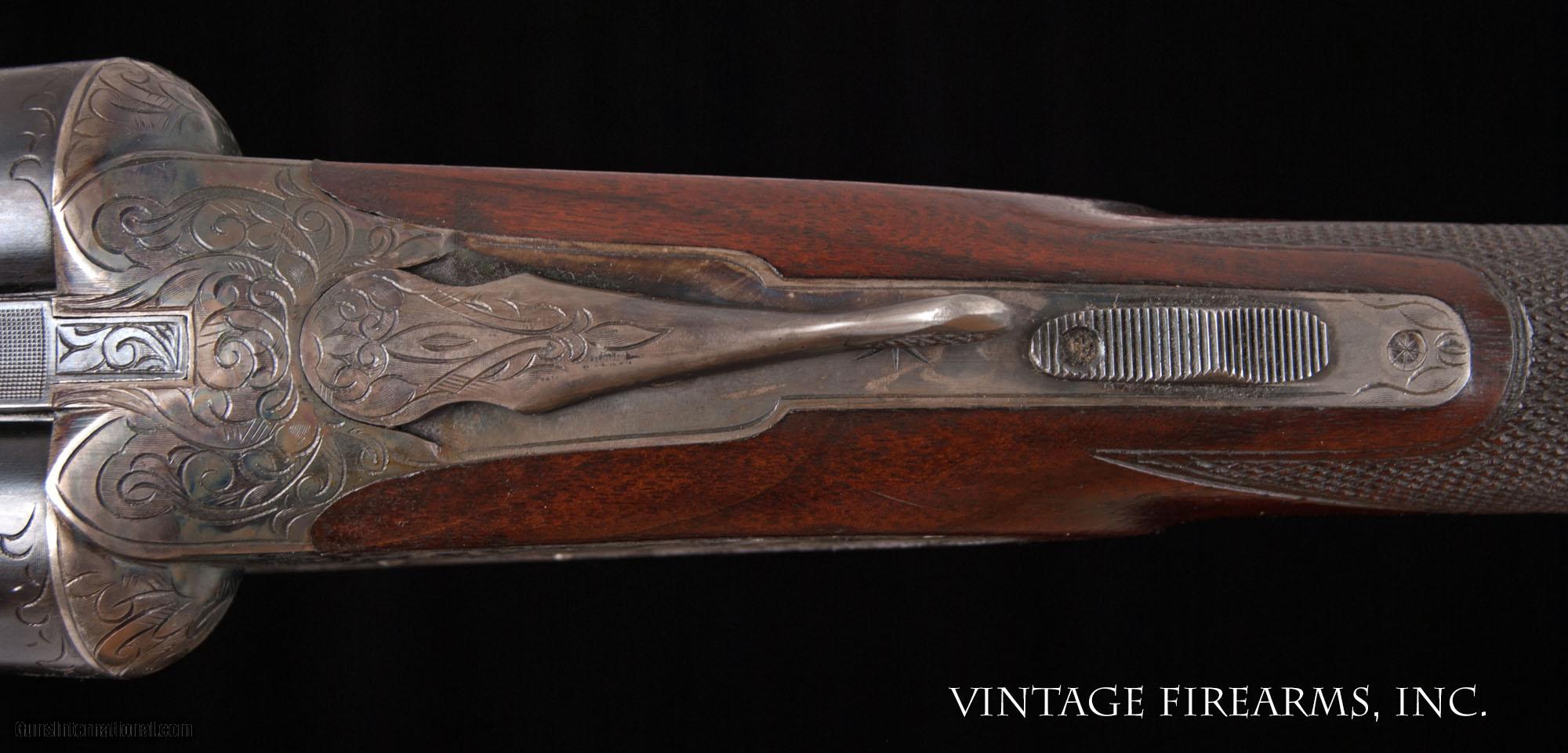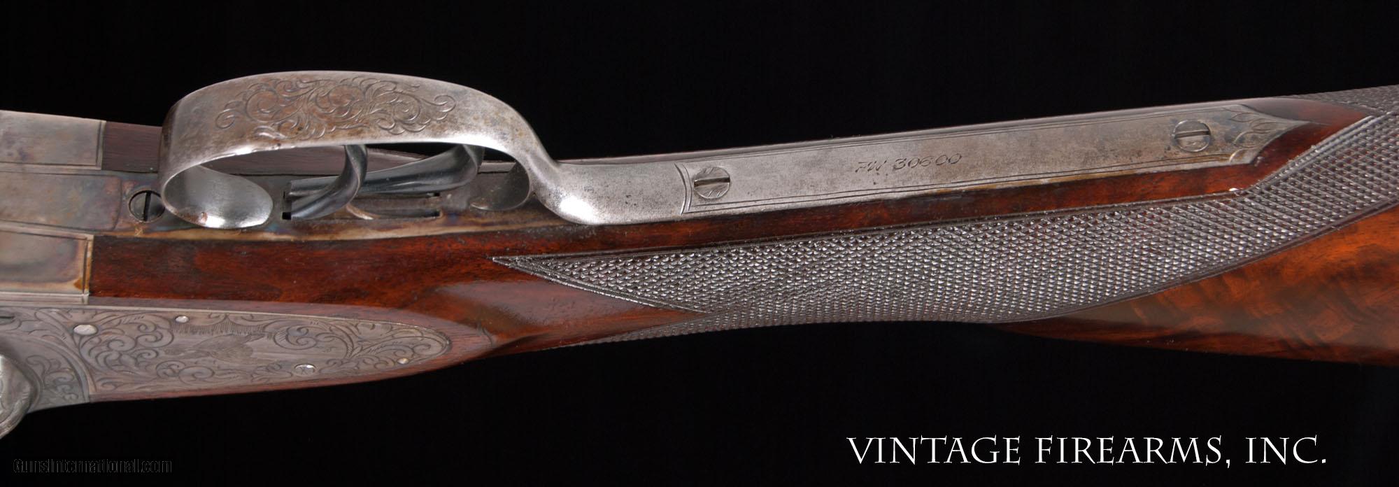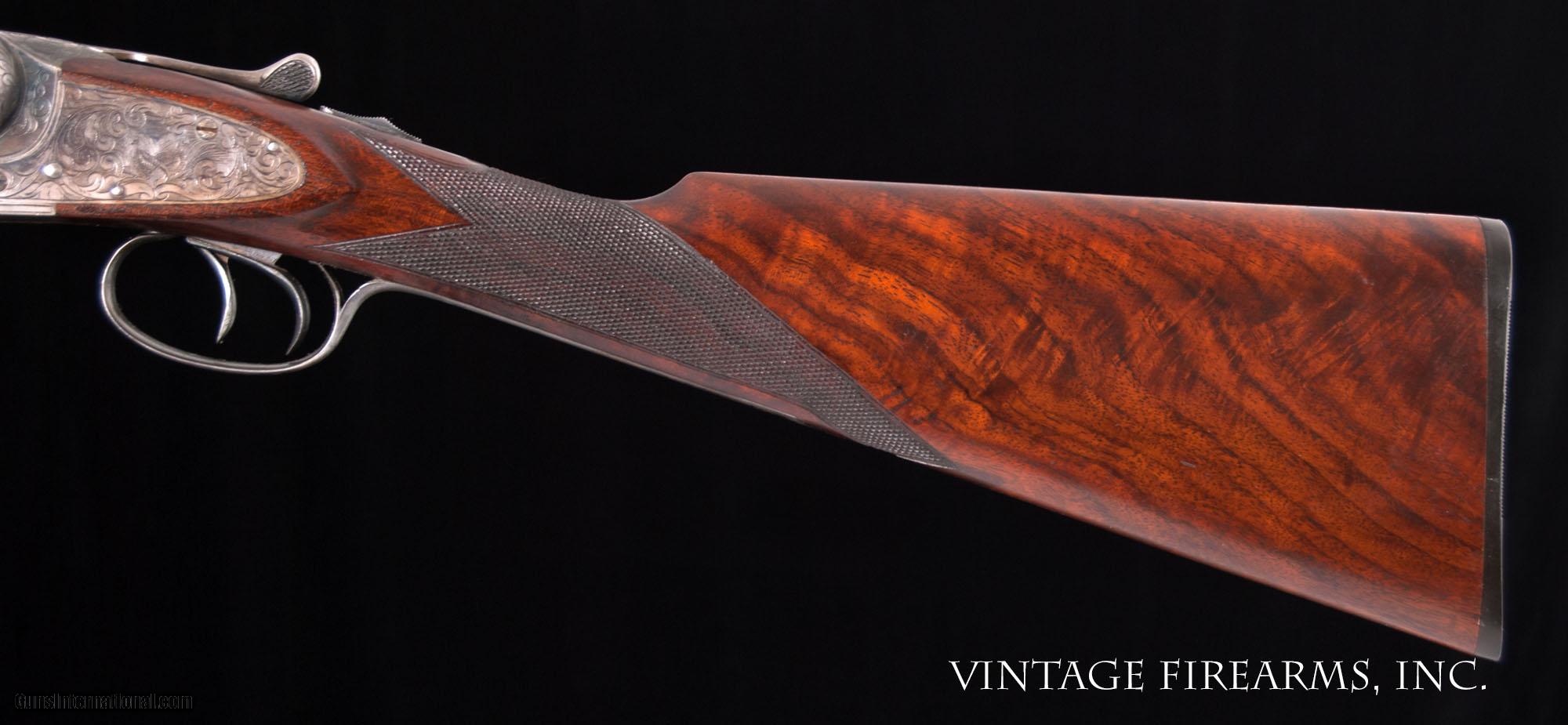 Description: L.C. Smith Specialty 12 Gauge Side-by-Side HIGH FIGURED ENGLISH STOCK, 95% CC General Specs: LC Smith, Year 1918, 12 Gauge, 6lbs 14oz, SxS Serial Number: FW30600 Why are some guns more expensive, more desirable than others that are labeled the same? I get that question often. Take this gun for example. They made 5000 L.C. Smith Specialty Grade guns in 12ga., 2000 of them with 30" barrels like this one. But when I acquired this gun I was super excited. Again, you ask why? Several very important things make this gun special amongst its Specialty Grade brethren. It has the best factory wood you will find on a Specialty Grade...full flame and feather crotch. The English style stock, a feature only found on 10% or so of the 5000 Specialty 12's made. Condition, with 95% factory case color and barrel blue, 98% factory wood finish, perfect screws, checkering, and bores...even the jewelling on the barrel breech face is still fully evident. Most older guns had lots of drop at heel and comb. Not this gun, with its 2 1/8" DAH, 1 1/2" DAC, 1/8" cast off, it has very modern dimensions. Now look at the engraving. Knowledgeable vintage double gunners often consider the engraving on a Specialty grade a bit crude and rough. This engraving is noticeably superior to all but a few. And last, this gun has amazing handling characteristics, weighing just 6lbs. 14oz. with its 30" barrels and balanced perfectly in hand. Made in 1918, snFW30600 is a special Elsie, and once you have her in hand you will agree with my analysis. This one is stunning. With the 30" Full choke barrels it would be a fine waterfowler, pheasant gun, or turkey killer. With a pocket full of RST spreader loads you can choose to have a more open pattern, or have us open the chokes to your preference within a week of purchase. We have full time gunsmiths so we can change dimensions, chokes, chambers etc. at your request without a wait. This gun has it all...only 200 with English stock and 30" barrels... so rare, high factory condition, very desirable features, and knock out wood. It will be a gun for you to enjoy as it gains in value. All who see it will want it. Thanks for looking! Barrels Barrel Length: 30" Chokes: F/F .035/.031 Bores: mirrors Bore Diameter: .728/.725 Wall Thickness: .019/.022 % Blue: 93% factory Chambers: 2 3/4" Ribs: tight Sights: single Action Action: tight - way right of center Ejectors or Extractors: extractor Case Color: 95% factory Screws: excellent Engraving: superior for Specialty by far! Trigger Type: double, crisp Trigger Guard Color: grey Stock Type: english stock/splinter forend/ xxx figure LOP: 13 7/8" LOP To End Of Wood: 13 5/8" DAH: 2 1/8" DAC: 1 1/2" Cast: 1/8" off Checkering Condition: excellent Butt Treatment: factory plate There are more photos upon request. We offer a 30 day mechanical warranty on this fine shotgun. Call us for full details. PLEASE SEE MY OTHER FINE VINTAGE FIREARMS. Just open one of my ads and click on the line that says “see all items from this seller” and a very nice list of fine sporting and collectible arms will appear. I have many more fine sxs shotguns not yet listed. Thanks for looking! We employ a full time gunsmith on premises and can perform alterations to suit your needs within a few weeks of purchase. Payment Methods: Money Order, Certified Check, Personal Check, Wire Transfer Inspection Period / Return Policy: Three Days from the date the item was received. Sales Tax: 6% Michigan Only Shipping & Insurance: Ground $55.00 We ship internationally! Item Condition: Used Requires FFL?: Yes If you have any questions about this item or payment, please email or call us directly, at #616-292-6240. Thanks! Jay Shachter, Vintage Firearms, Inc We employ a full time gunsmith on premises and can perform alterations to suit your needs within a few weeks of purchase. Common requests are: -stock bending to suit your particular requirements -addition of any specified butt pad to increase length of pull -alteration of chokes to suit your shooting preferences -lengthening of chambers and forcing cones -darkening stock color with penetrating stains -restoring any part of the gun including rust blue, charcoal blue, bone and charcoal case color, wood restoration and checkering recuts. If you like one our guns but it needs "tweaked", let us know and we can quote you a time and price. Some enthusiasts like the guns "as found" and others want them "just so". We often list guns as found and let the particular buyer choose how they want their gun to fit or look. SOLD Curio/Relic: Yes |