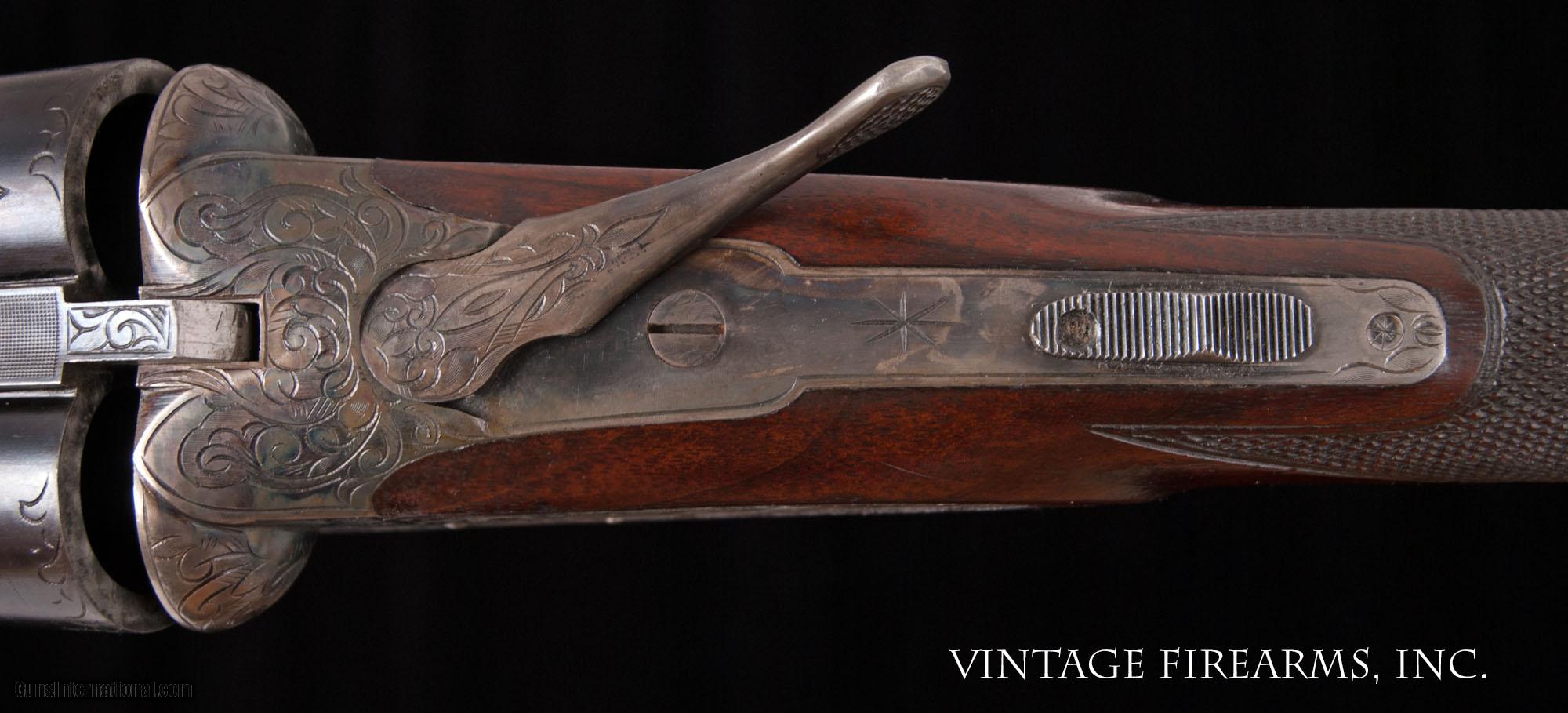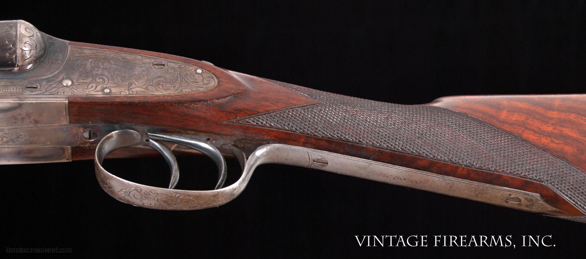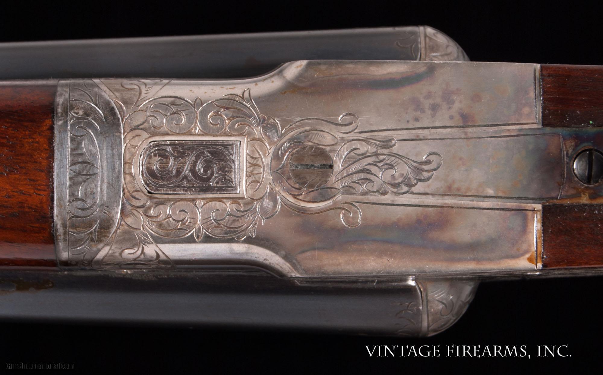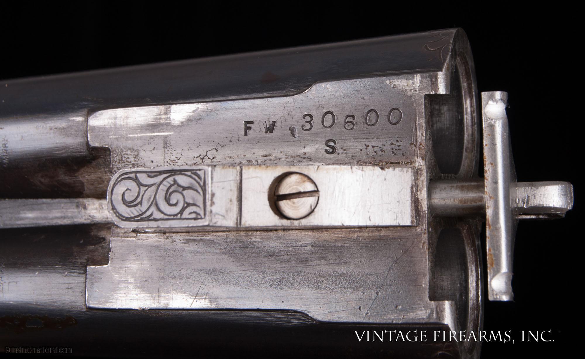 Description: L.C. Smith Specialty 12 Gauge Side-by-Side HIGH FIGURED ENGLISH STOCK, 95% CC General Specs: LC Smith, Year 1918, 12 Gauge, 6lbs 14oz, SxS Serial Number: FW30600 Why are some guns more expensive, more desirable than others that are labeled the same? I get that question often. Take this gun for example. They made 5000 L.C. Smith Specialty Grade guns in 12ga., 2000 of them with 30" barrels like this one. But when I acquired this gun I was super excited. Again, you ask why? Several very important things make this gun special amongst its Specialty Grade brethren. It has the best factory wood you will find on a Specialty Grade...full flame and feather crotch. The English style stock, a feature only found on 10% or so of the 5000 Specialty 12's made. Condition, with 95% factory case color and barrel blue, 98% factory wood finish, perfect screws, checkering, and bores...even the jewelling on the barrel breech face is still fully evident. Most older guns had lots of drop at heel and comb. Not this gun, with its 2 1/8" DAH, 1 1/2" DAC, 1/8" cast off, it has very modern dimensions. Now look at the engraving. Knowledgeable vintage double gunners often consider the engraving on a Specialty grade a bit crude and rough. This engraving is noticeably superior to all but a few. And last, this gun has amazing handling characteristics, weighing just 6lbs. 14oz. with its 30" barrels and balanced perfectly in hand. Made in 1918, snFW30600 is a special Elsie, and once you have her in hand you will agree with my analysis. This one is stunning. With the 30" Full choke barrels it would be a fine waterfowler, pheasant gun, or turkey killer. With a pocket full of RST spreader loads you can choose to have a more open pattern, or have us open the chokes to your preference within a week of purchase. We have full time gunsmiths so we can change dimensions, chokes, chambers etc. at your request without a wait. This gun has it all...only 200 with English stock and 30" barrels... so rare, high factory condition, very desirable features, and knock out wood. It will be a gun for you to enjoy as it gains in value. All who see it will want it. Thanks for looking! Barrels Barrel Length: 30" Chokes: F/F .035/.031 Bores: mirrors Bore Diameter: .728/.725 Wall Thickness: .019/.022 % Blue: 93% factory Chambers: 2 3/4" Ribs: tight Sights: single Action Action: tight - way right of center Ejectors or Extractors: extractor Case Color: 95% factory Screws: excellent Engraving: superior for Specialty by far! Trigger Type: double, crisp Trigger Guard Color: grey Stock Type: english stock/splinter forend/ xxx figure LOP: 13 7/8" LOP To End Of Wood: 13 5/8" DAH: 2 1/8" DAC: 1 1/2" Cast: 1/8" off Checkering Condition: excellent Butt Treatment: factory plate There are more photos upon request. We offer a 30 day mechanical warranty on this fine shotgun. Call us for full details. PLEASE SEE MY OTHER FINE VINTAGE FIREARMS. Just open one of my ads and click on the line that says “see all items from this seller” and a very nice list of fine sporting and collectible arms will appear. I have many more fine sxs shotguns not yet listed. Thanks for looking! We employ a full time gunsmith on premises and can perform alterations to suit your needs within a few weeks of purchase. Payment Methods: Money Order, Certified Check, Personal Check, Wire Transfer Inspection Period / Return Policy: Three Days from the date the item was received. Sales Tax: 6% Michigan Only Shipping & Insurance: Ground $55.00 We ship internationally! Item Condition: Used Requires FFL?: Yes If you have any questions about this item or payment, please email or call us directly, at #616-292-6240. Thanks! Jay Shachter, Vintage Firearms, Inc We employ a full time gunsmith on premises and can perform alterations to suit your needs within a few weeks of purchase. Common requests are: -stock bending to suit your particular requirements -addition of any specified butt pad to increase length of pull -alteration of chokes to suit your shooting preferences -lengthening of chambers and forcing cones -darkening stock color with penetrating stains -restoring any part of the gun including rust blue, charcoal blue, bone and charcoal case color, wood restoration and checkering recuts. If you like one our guns but it needs "tweaked", let us know and we can quote you a time and price. Some enthusiasts like the guns "as found" and others want them "just so". We often list guns as found and let the particular buyer choose how they want their gun to fit or look. SOLD Curio/Relic: Yes |