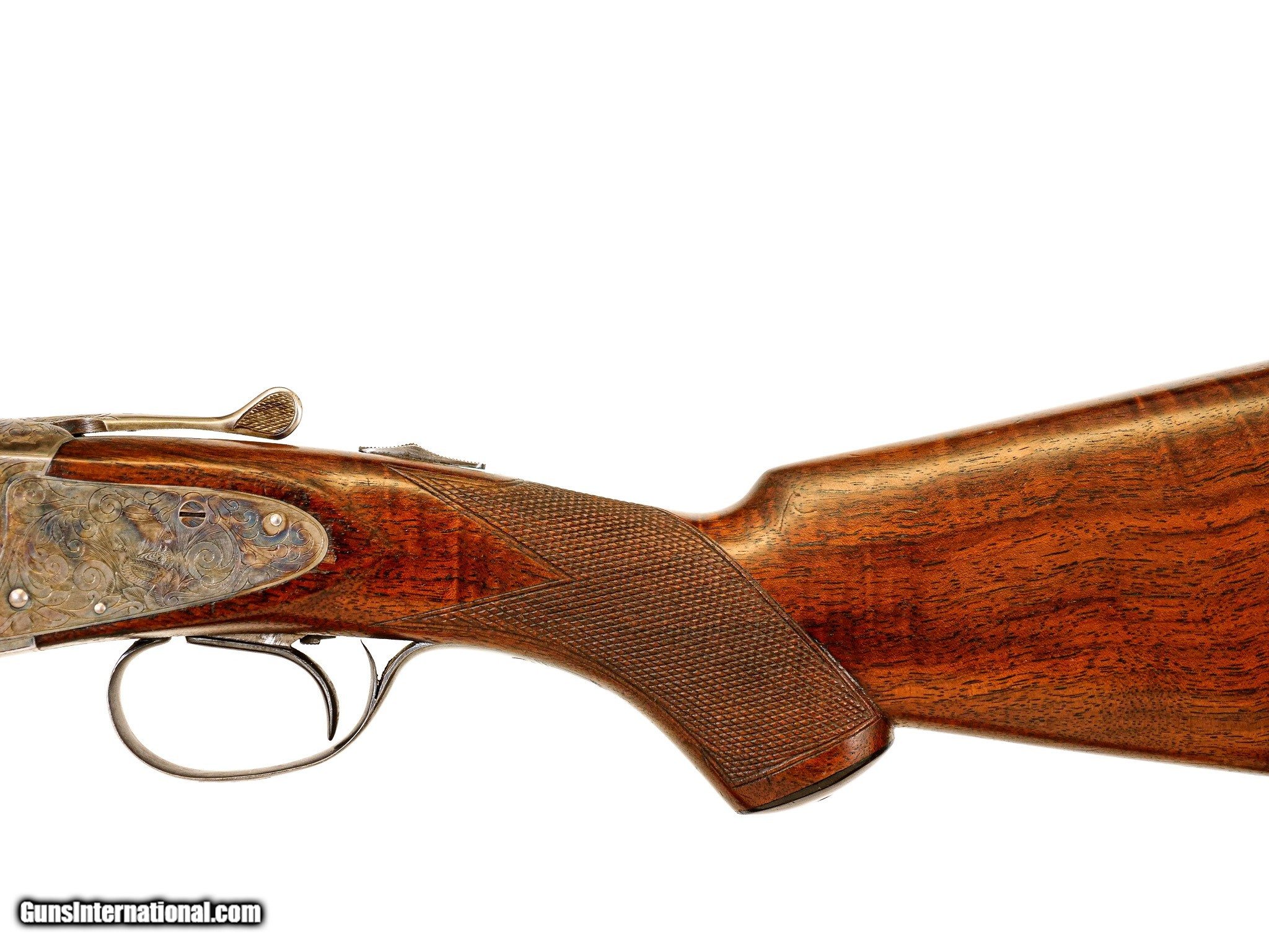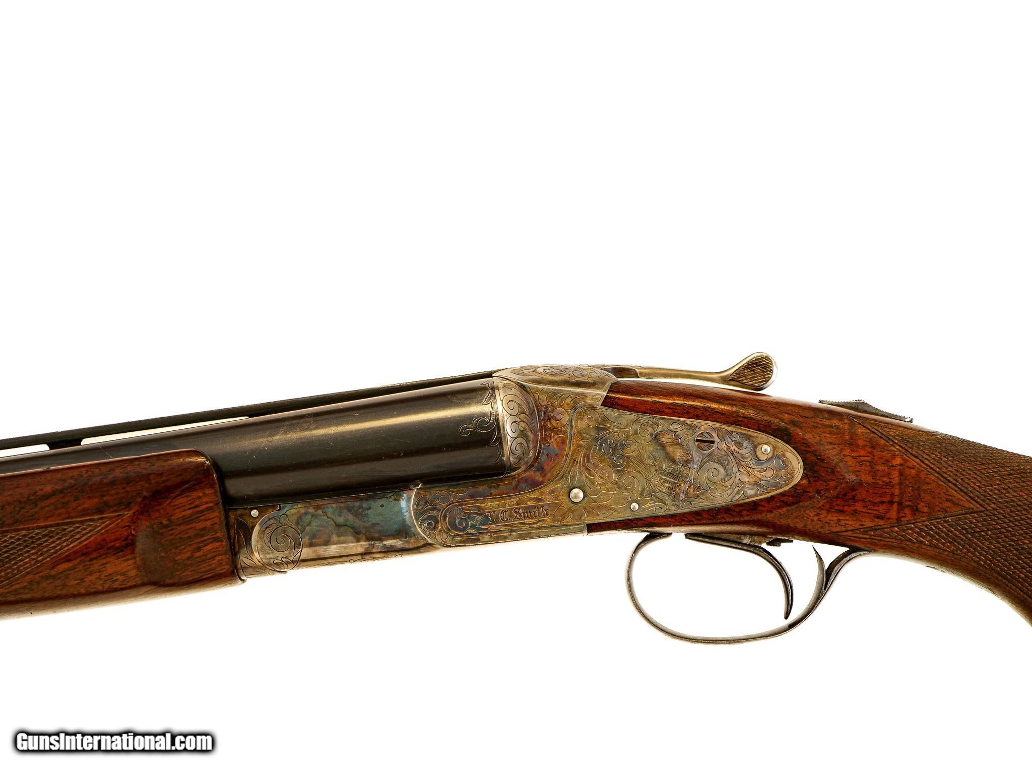 Description: L.C. Smith - Specialty Grade, 12ga. 32" Barrels Choked F/F. LC Smith Specialty 12g Virtually Brand New and unused rare and long ranged 3” magnum gun 32” Full & Full with every option. NOT refinished. Perfect screws, untouched gun, with minor handling marks but an unused gun. Hunter 1 Single Selection trigger, capped pistol grip, 15” LOP to the original Hawkins pad. Factory rare, Monte Carlo 1 3/8 x 1 3/8 x 2 ¾. Hunter Arms Co. Gun, factory dual ivory, factor beaver tail fore end, beautifully figured original wood, 100% case color, 99% barrel blue, 99% trigger guard blue, on the breach face it even has all the original damascening. This is a great collector gun, with 99% of the original bright shiny perfect case color. True color find, guaranteed original. Inv: 61538 $10,995.00 SOLD |