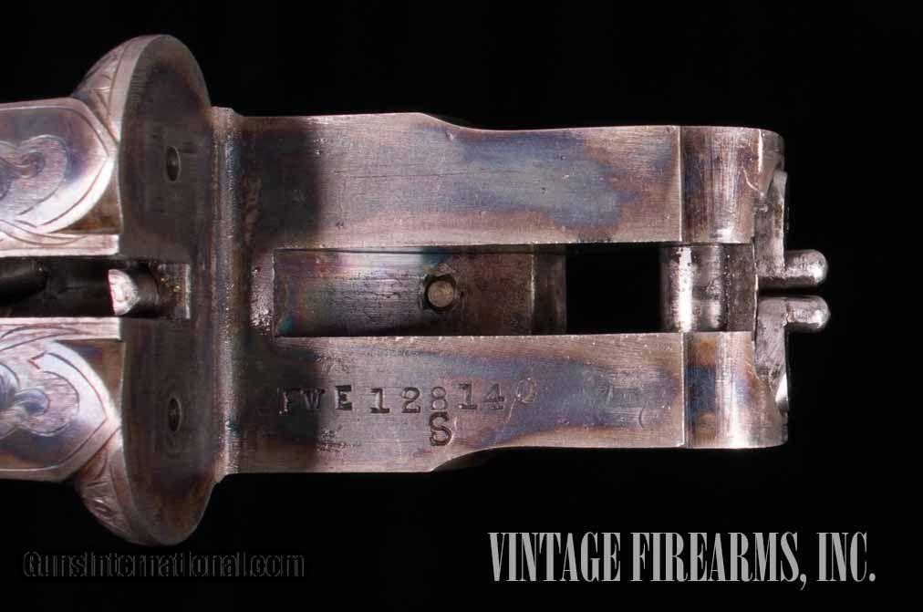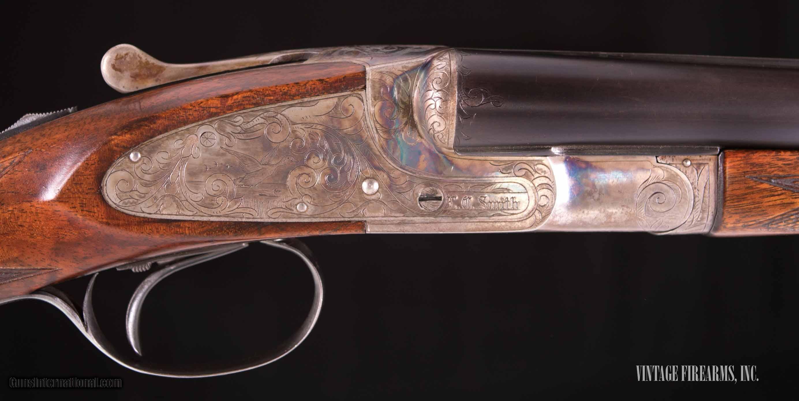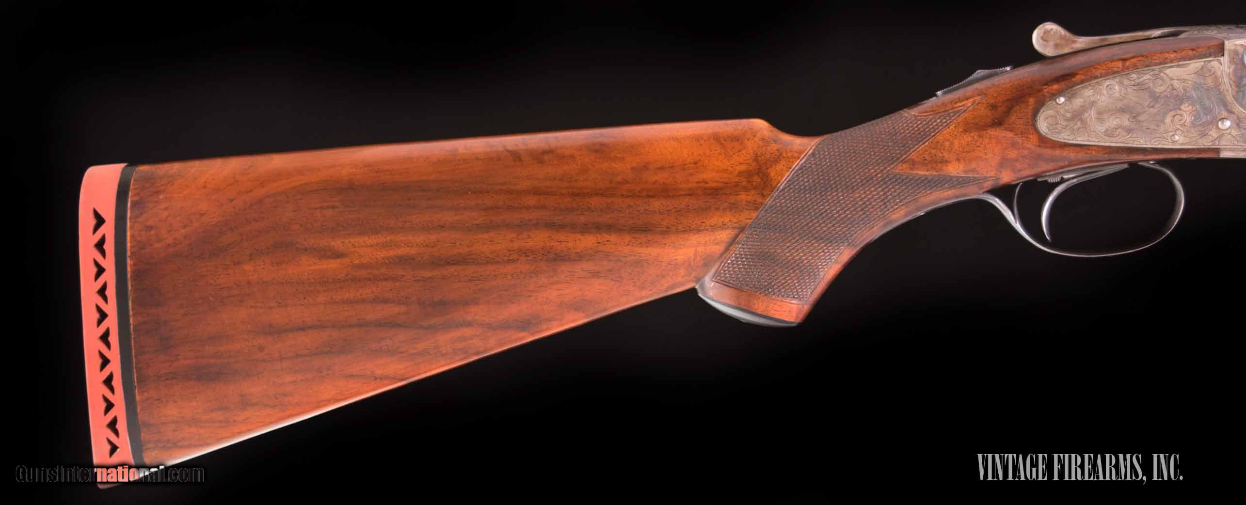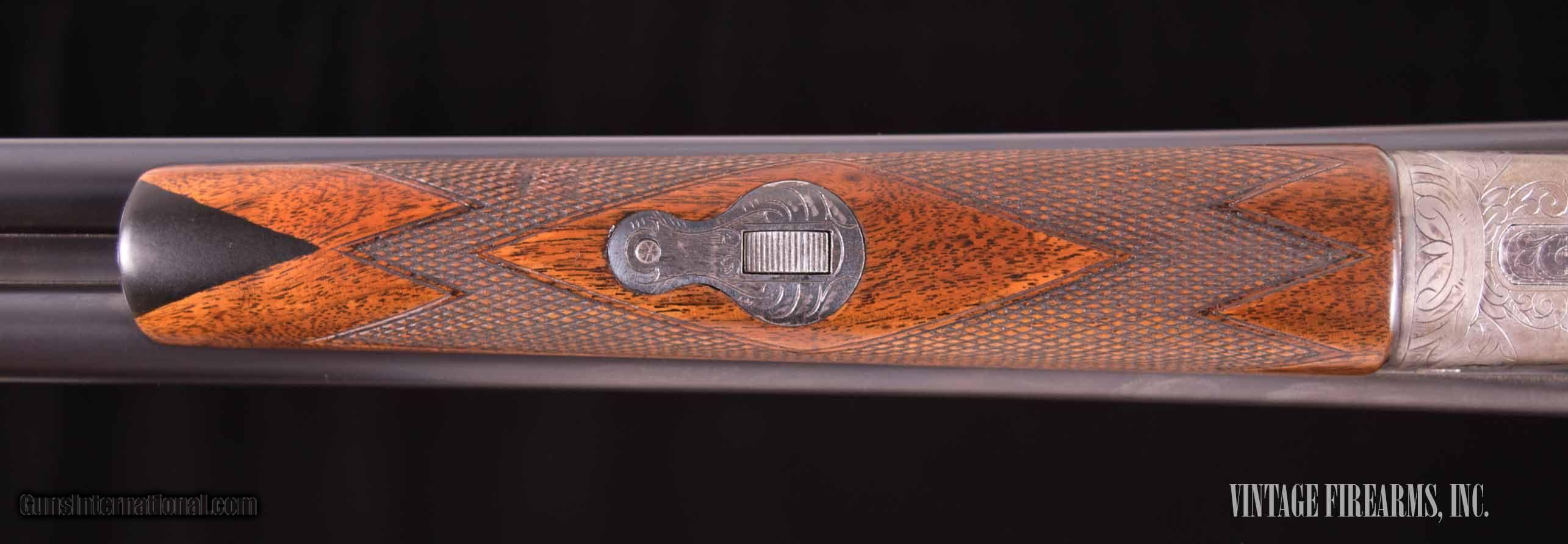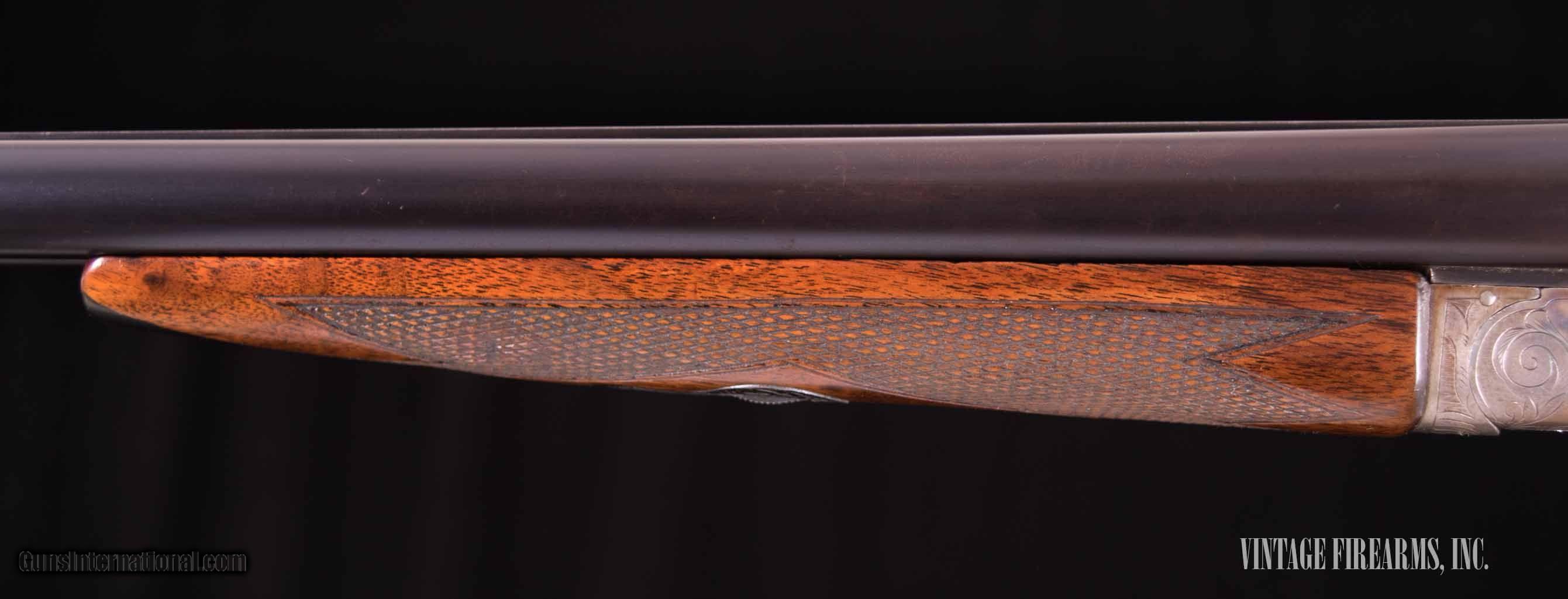 Description: L.C. Smith Specialty Grade 20 Gauge Side by Side RARE 32” BARRELS, 98% FACTORY FINISHES, AWESOME! General Specs: LC Smith, Year 1930, 20 Gauge, 6lbs 10oz, SxS Serial Number: FWE 128140 I have the privilege of handling 1000's of fine shotguns every year. I love my job and I love L.C. Smith guns, the only successful sidelock of the vintage American double shotgun manufacturers. This is one of those special Elsie guns, with a feel between the hands that puts a smile on your face, the very RARE 32” barrels balancing this Featherweight framed gun 3/8” forward of the hinge pin to keep those barrels moving on crossing shots. This gun, snFWE128140 produced in 1930, is a gun that generates that smile. Weighing 6lbs. 10oz. this gun is a wand with its long barrels and small bores. There were only 1100 Specialty Grades produced in 20ga., and only 123 made with 32" barrels, so THIS GUN IS RARE. Add the condition of this gun, with perfect screws and wood to metal fit, all factory finishes on the metal with 95% vivid case color, 99% dark barrel blue, and 90% trigger guard blue, all parts original to the gun with the original fine figured wood having been cleaned up, you have a great find. You can still see the jeweling on the breech face of the barrels! The stock dimensions are great, and if you look at the photos closely you will see something you may not see again for decades…the factory pad is a petite, original, ¾” thick Hawkins pad, not the typical 1” thick pad. I have only seen two of these in my life. The shorter pad is much more pleasing to the eye and it is still soft to absorb recoil and to keep the butt of the gun firmly mounted to your shoulder. The LOP of 14 ¼” is measured from the rear trigger position, meaning the wood is long compared to the same gun with two triggers. Those of you that like long barrels realize how hard it is to find a 20ga. with 32” tubes, and this gun has the Hunter One Trigger and ejectors, great stock dimensions, and is gorgeous from butt to muzzle. From an investment standpoint, L.C. Smith guns are still under-valued, and are poised to spike right now. Parker has peaked in its growth spurt, Fox is in the middle of its rise to the top, and L.C. Smith is just beginning. Guns like this one, with unique features and low production, great shooting dimensions, long barrels in fine original condition, are great investments that will increase in value significantly in the next few years. WHAT A GREAT GUN! Thanks for looking. Barrels Barrel Length: 32" Chokes: .037/.037 F/F Bores: perfect Bore Diameter: .623/.622 Wall Thickness: .035/.031 % Blue: 99% factory Chambers: 2 3/4" Ribs: tight Sights: ivory middle; brass front Action Action: tight, way right of center Ejectors or Extractors: ejectors, strong, timed Case Color: 95% factory strong Screws: perfect Engraving: clear, sharp Trigger Type: SST, crisp Trigger Guard Color: 90% factory charcoal blue Stock Type: capped pistol girp/splinter forend LOP: 14 1/4" rear trigger LOP To End Of Wood: 13 1/2" DAH: 2 3/4" DAC: 1 5/8" Cast: 0 Checkering Condition: perfect Butt Treatment: original hawkins There are more photos upon request. We offer a 30 day mechanical warranty on this fine shotgun. Call us for full details. PLEASE SEE MY OTHER FINE VINTAGE FIREARMS. Just open one of my ads and click on the line that says “see all items from this seller” and a very nice list of fine sporting and collectible arms will appear. I have many more fine sxs shotguns not yet listed. Thanks for looking! We employ a full time gunsmith on premises and can perform alterations to suit your needs within a few weeks of purchase. Payment Methods: Money Order, Certified Check, Personal Check, Wire Transfer Inspection Period / Return Policy: Three Days from the date the item was received. Sales Tax: 6% Michigan Only Shipping & Insurance: Ground $65.00 We ship internationally! Item Condition: Used Requires FFL?: Yes If you have any questions about this item or payment, please email or call us directly, at #616-292-6240. Thanks! Vintage Firearms Inc We employ a full time gunsmith on premises and can perform alterations to suit your needs within a few weeks of purchase. Common requests are: -stock bending to suit your particular requirements -addition of any specified butt pad to increase length of pull -alteration of chokes to suit your shooting preferences -lengthening of chambers and forcing cones -darkening stock color with penetrating stains -restoring any part of the gun including rust blue, charcoal blue, bone and charcoal case color, wood restoration and checkering recuts. If you like one our guns but it needs "tweaked", let us know and we can quote you a time and price. Some enthusiasts like the guns "as found" and others want them "just so". We often list guns as found and let the particular buyer choose how they want their gun to fit or look. SOLD Curio/Relic: Yes |