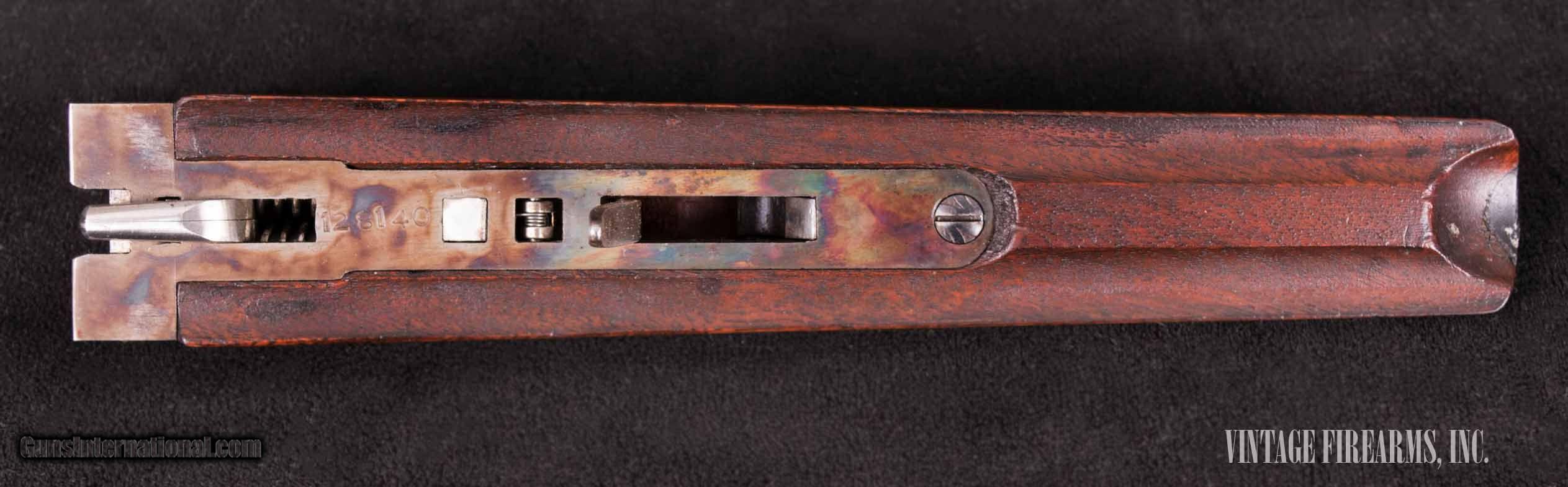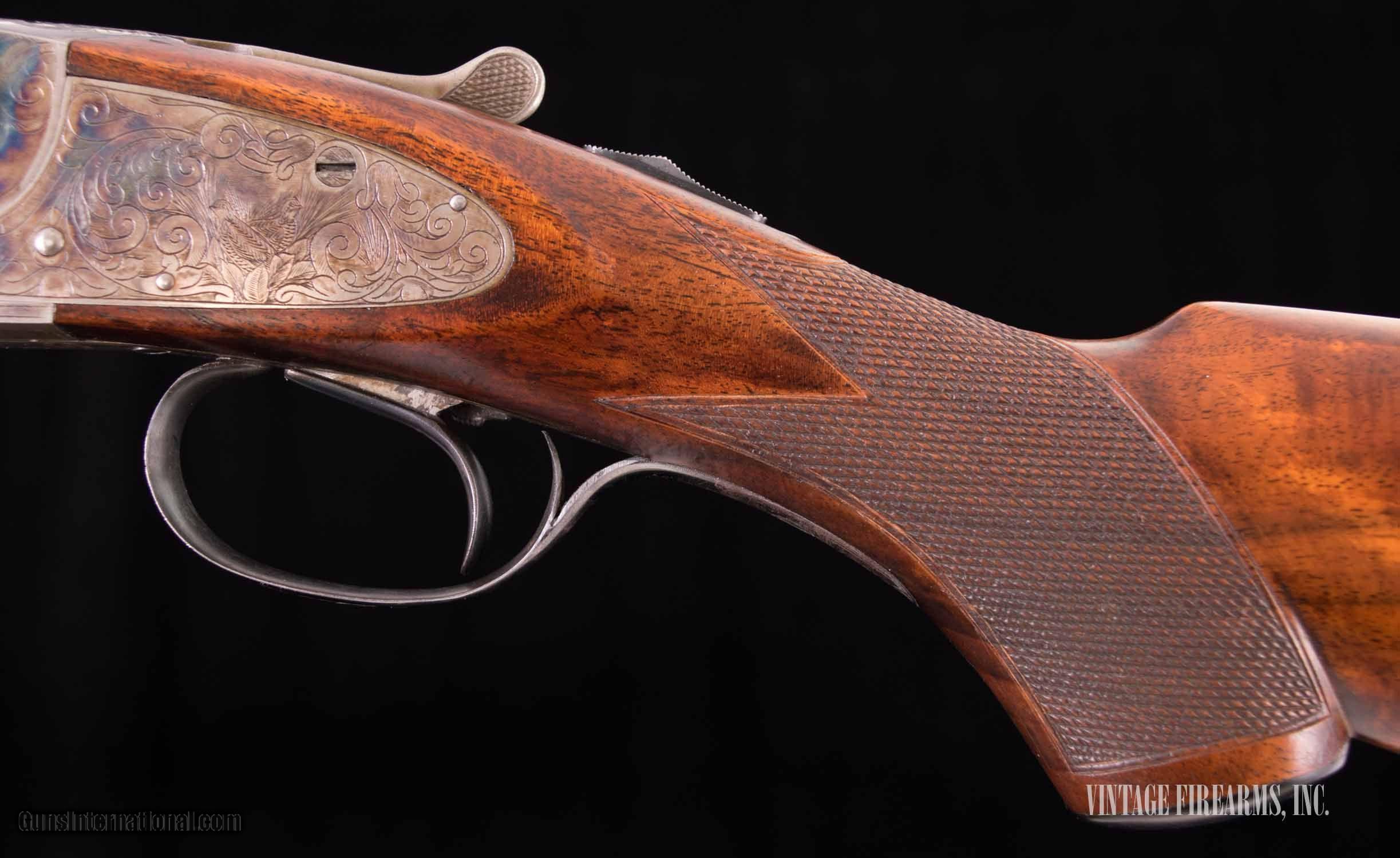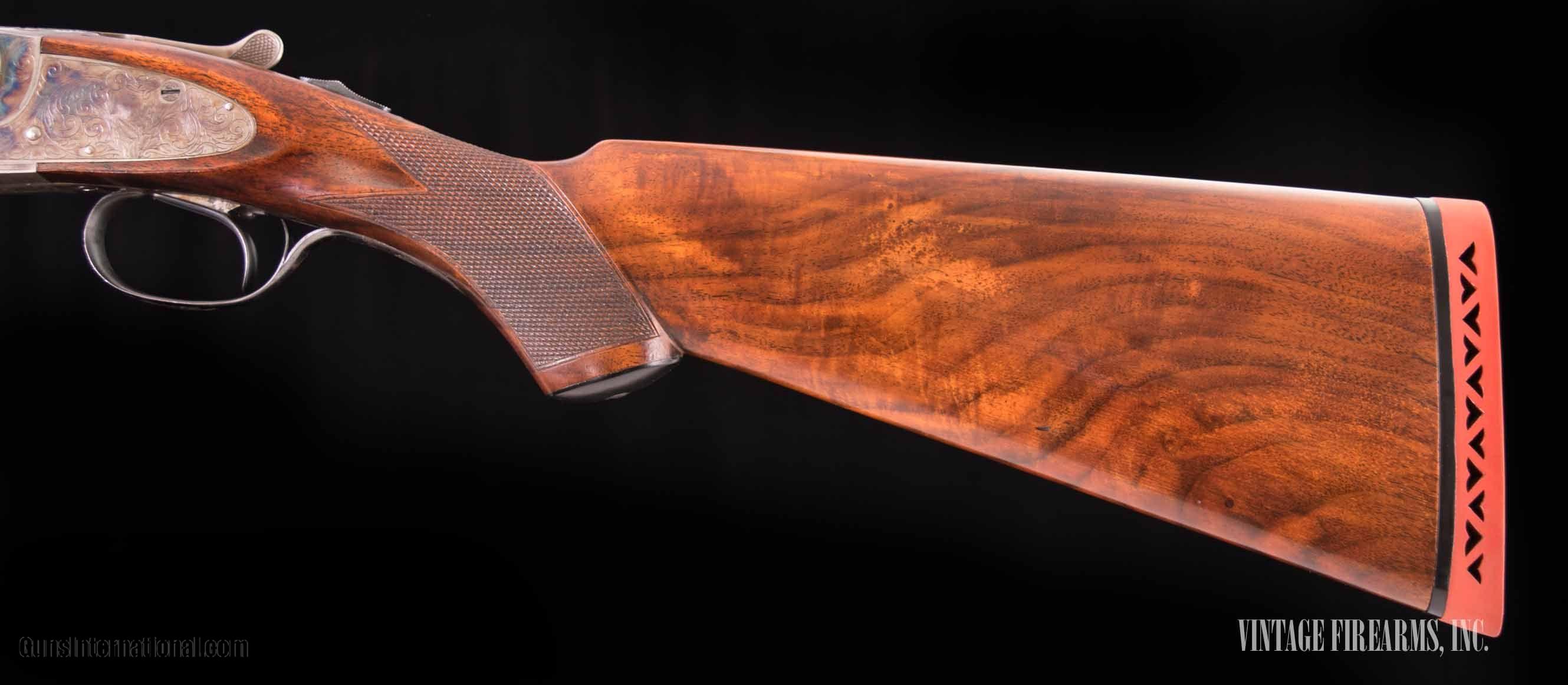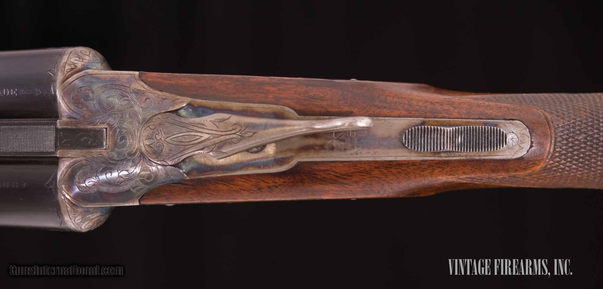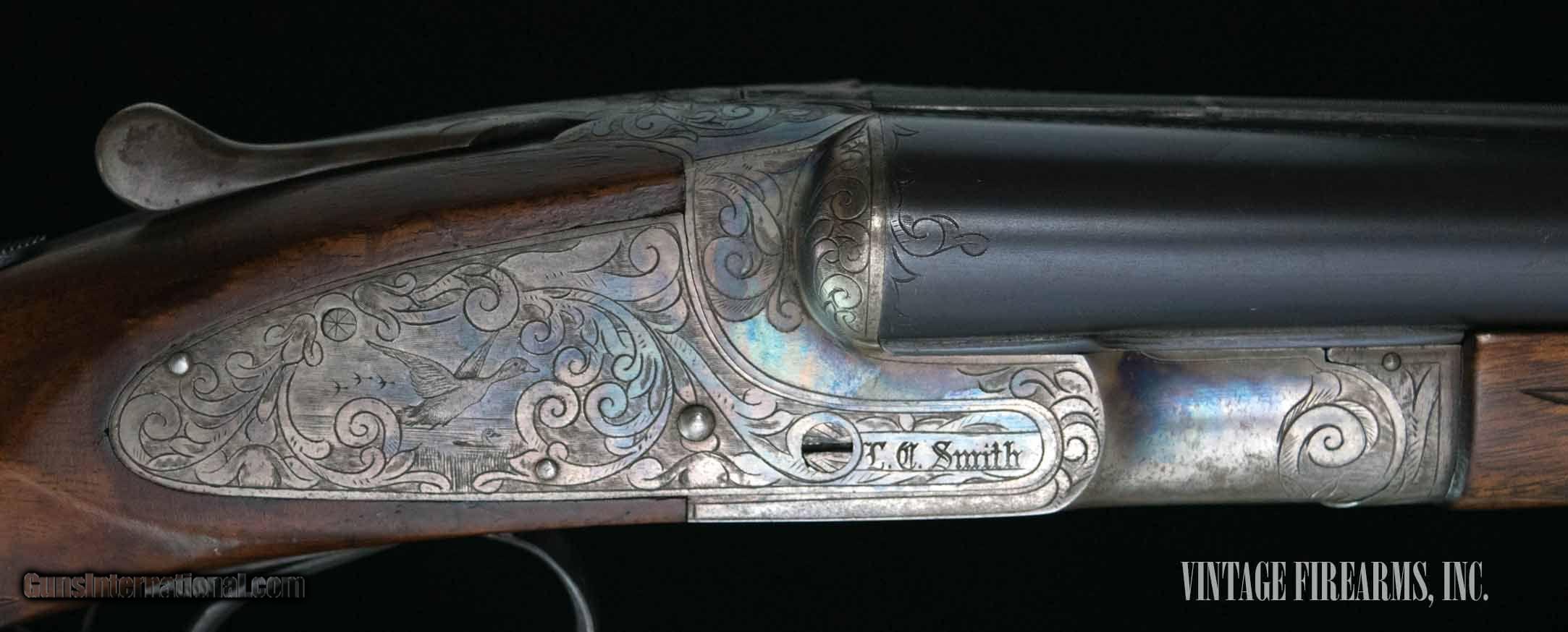 Description: L.C. Smith Specialty Grade 20 Gauge Side by Side RARE 32” BARRELS, 98% FACTORY FINISHES, AWESOME! General Specs: LC Smith, Year 1930, 20 Gauge, 6lbs 10oz, SxS Serial Number: FWE 128140 I have the privilege of handling 1000's of fine shotguns every year. I love my job and I love L.C. Smith guns, the only successful sidelock of the vintage American double shotgun manufacturers. This is one of those special Elsie guns, with a feel between the hands that puts a smile on your face, the very RARE 32” barrels balancing this Featherweight framed gun 3/8” forward of the hinge pin to keep those barrels moving on crossing shots. This gun, snFWE128140 produced in 1930, is a gun that generates that smile. Weighing 6lbs. 10oz. this gun is a wand with its long barrels and small bores. There were only 1100 Specialty Grades produced in 20ga., and only 123 made with 32" barrels, so THIS GUN IS RARE. Add the condition of this gun, with perfect screws and wood to metal fit, all factory finishes on the metal with 95% vivid case color, 99% dark barrel blue, and 90% trigger guard blue, all parts original to the gun with the original fine figured wood having been cleaned up, you have a great find. You can still see the jeweling on the breech face of the barrels! The stock dimensions are great, and if you look at the photos closely you will see something you may not see again for decades…the factory pad is a petite, original, ¾” thick Hawkins pad, not the typical 1” thick pad. I have only seen two of these in my life. The shorter pad is much more pleasing to the eye and it is still soft to absorb recoil and to keep the butt of the gun firmly mounted to your shoulder. The LOP of 14 ¼” is measured from the rear trigger position, meaning the wood is long compared to the same gun with two triggers. Those of you that like long barrels realize how hard it is to find a 20ga. with 32” tubes, and this gun has the Hunter One Trigger and ejectors, great stock dimensions, and is gorgeous from butt to muzzle. From an investment standpoint, L.C. Smith guns are still under-valued, and are poised to spike right now. Parker has peaked in its growth spurt, Fox is in the middle of its rise to the top, and L.C. Smith is just beginning. Guns like this one, with unique features and low production, great shooting dimensions, long barrels in fine original condition, are great investments that will increase in value significantly in the next few years. WHAT A GREAT GUN! Thanks for looking. Barrels Barrel Length: 32" Chokes: .037/.037 F/F Bores: perfect Bore Diameter: .623/.622 Wall Thickness: .035/.031 % Blue: 99% factory Chambers: 2 3/4" Ribs: tight Sights: ivory middle; brass front Action Action: tight, way right of center Ejectors or Extractors: ejectors, strong, timed Case Color: 95% factory strong Screws: perfect Engraving: clear, sharp Trigger Type: SST, crisp Trigger Guard Color: 90% factory charcoal blue Stock Type: capped pistol girp/splinter forend LOP: 14 1/4" rear trigger LOP To End Of Wood: 13 1/2" DAH: 2 3/4" DAC: 1 5/8" Cast: 0 Checkering Condition: perfect Butt Treatment: original hawkins There are more photos upon request. We offer a 30 day mechanical warranty on this fine shotgun. Call us for full details. PLEASE SEE MY OTHER FINE VINTAGE FIREARMS. Just open one of my ads and click on the line that says “see all items from this seller” and a very nice list of fine sporting and collectible arms will appear. I have many more fine sxs shotguns not yet listed. Thanks for looking! We employ a full time gunsmith on premises and can perform alterations to suit your needs within a few weeks of purchase. Payment Methods: Money Order, Certified Check, Personal Check, Wire Transfer Inspection Period / Return Policy: Three Days from the date the item was received. Sales Tax: 6% Michigan Only Shipping & Insurance: Ground $65.00 We ship internationally! Item Condition: Used Requires FFL?: Yes If you have any questions about this item or payment, please email or call us directly, at #616-292-6240. Thanks! Vintage Firearms Inc We employ a full time gunsmith on premises and can perform alterations to suit your needs within a few weeks of purchase. Common requests are: -stock bending to suit your particular requirements -addition of any specified butt pad to increase length of pull -alteration of chokes to suit your shooting preferences -lengthening of chambers and forcing cones -darkening stock color with penetrating stains -restoring any part of the gun including rust blue, charcoal blue, bone and charcoal case color, wood restoration and checkering recuts. If you like one our guns but it needs "tweaked", let us know and we can quote you a time and price. Some enthusiasts like the guns "as found" and others want them "just so". We often list guns as found and let the particular buyer choose how they want their gun to fit or look. SOLD Curio/Relic: Yes |