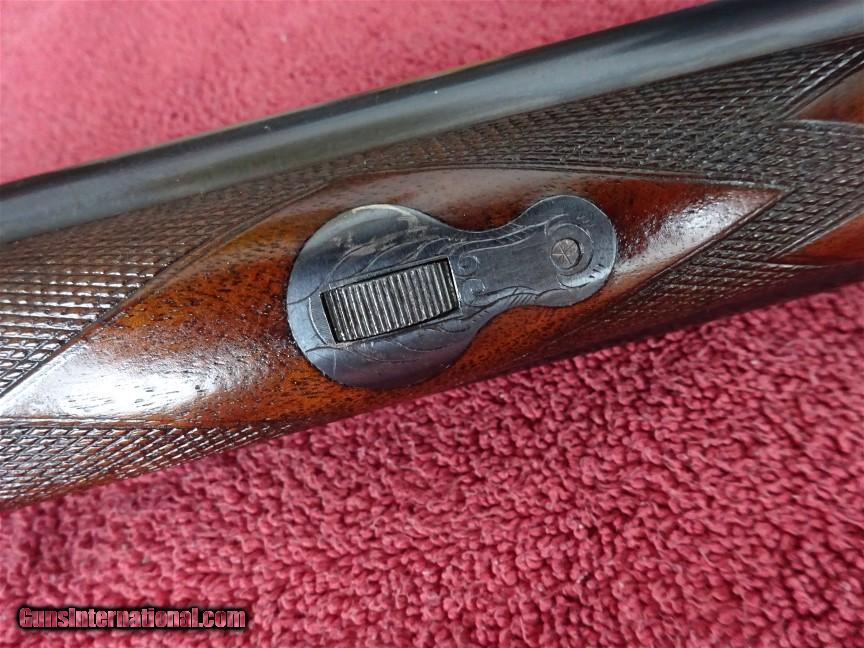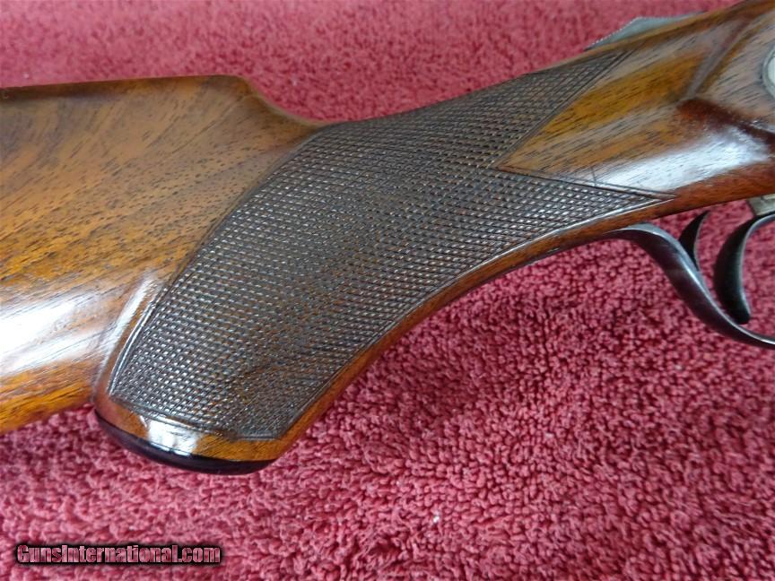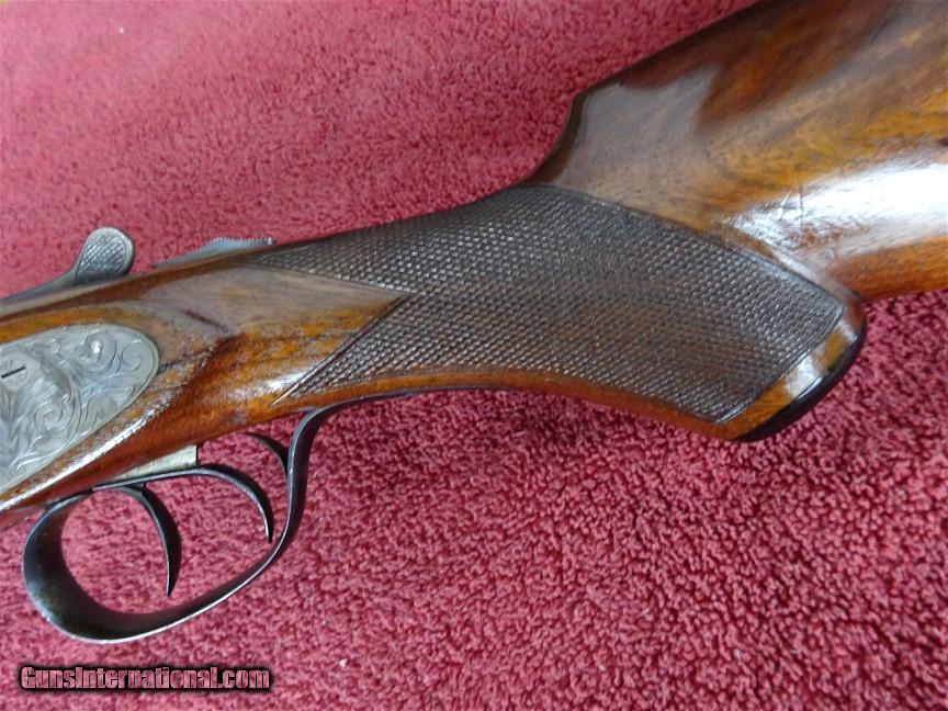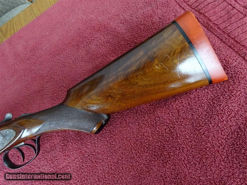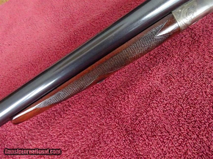 Description: L C SMITH, HUNTER ARMS, SPECIALTY GRADE 12 GAUGE, 30" BARRELS, FULL AND MODIFIED, VERY GOOD BLUE, MIRROR BORES, AUTOMATIC EJECTORS. REGULAR FRAME WITH GOOD CASE COLOR, TYPICAL ENGRAVING PATTERN, MALLARD IN FLIGHT ON RIGHT, PAIR OF SITTING QUAIL ON LEFT PLUS SCROLLWORK AND BORDERS, TOP LEVER TO THE FAR RIGHT. MOST ALL THE ORIGINAL BLUE ON TRIGGERGUARD AND FOREARM LATCH, PERFECT SCREWS, TIGHT AS NEW. PISTOL GRIP STOCK, SPLINTER FOREARM, NICELY FIGURED WOOD, PERFECT CHECKERING. NICE SHOOTABLE DIMENSIONS 1 1/2" X 2 1/2" X 13 3/4", 7 POUNDS 10 OUNCES. MADE IN 1926. NICE GUN, ALL ORIGINAL FINISH. $2950.00 + $50.00 Insured shipping to an FFL address. See all Pats listings We also have hundreds of pieces of ORIGINAL gun company advertising & memorabilia available for sale. We have no reprints or reproductions. Email for more information. SOLD Curio/Relic: Yes |