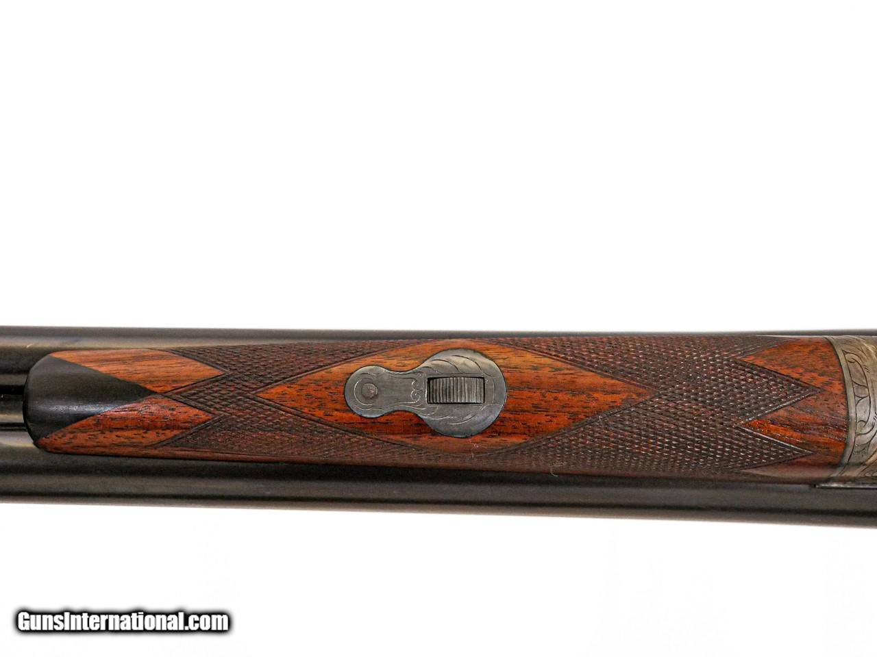 Description: L.C. Smith - Specialty Grade Long Range, 12ga. 32” Barrels Choked M/F. *NEW* *NEW* *NEW* Capped pistol grip stock, factory serrated butt pate, double triggers, automatic ejectors, splinter forend with enbony tip, incredible and vivid 99% case coloring, 3” cambers, appears unfired, virtually all of the factory wood finish, case coloring, and bluing, 100% original and perfect gun, finest example we have encountered, available for immediate delivery. S & H - $50.00. Inv: 51252 8 lbs. 0 oz. 14 ¼” x 1 ¾” x 3” $10,995.00 SOLD |