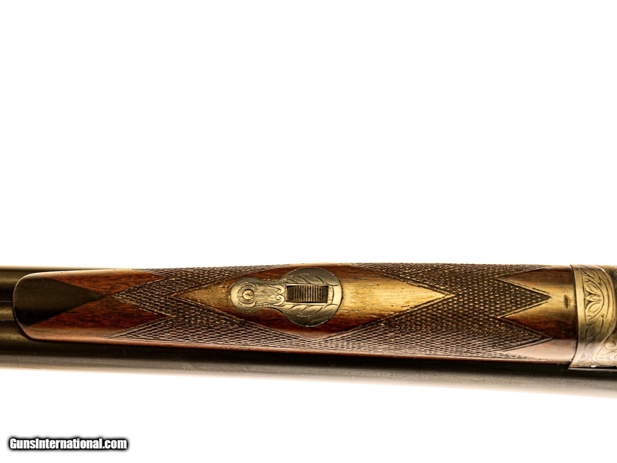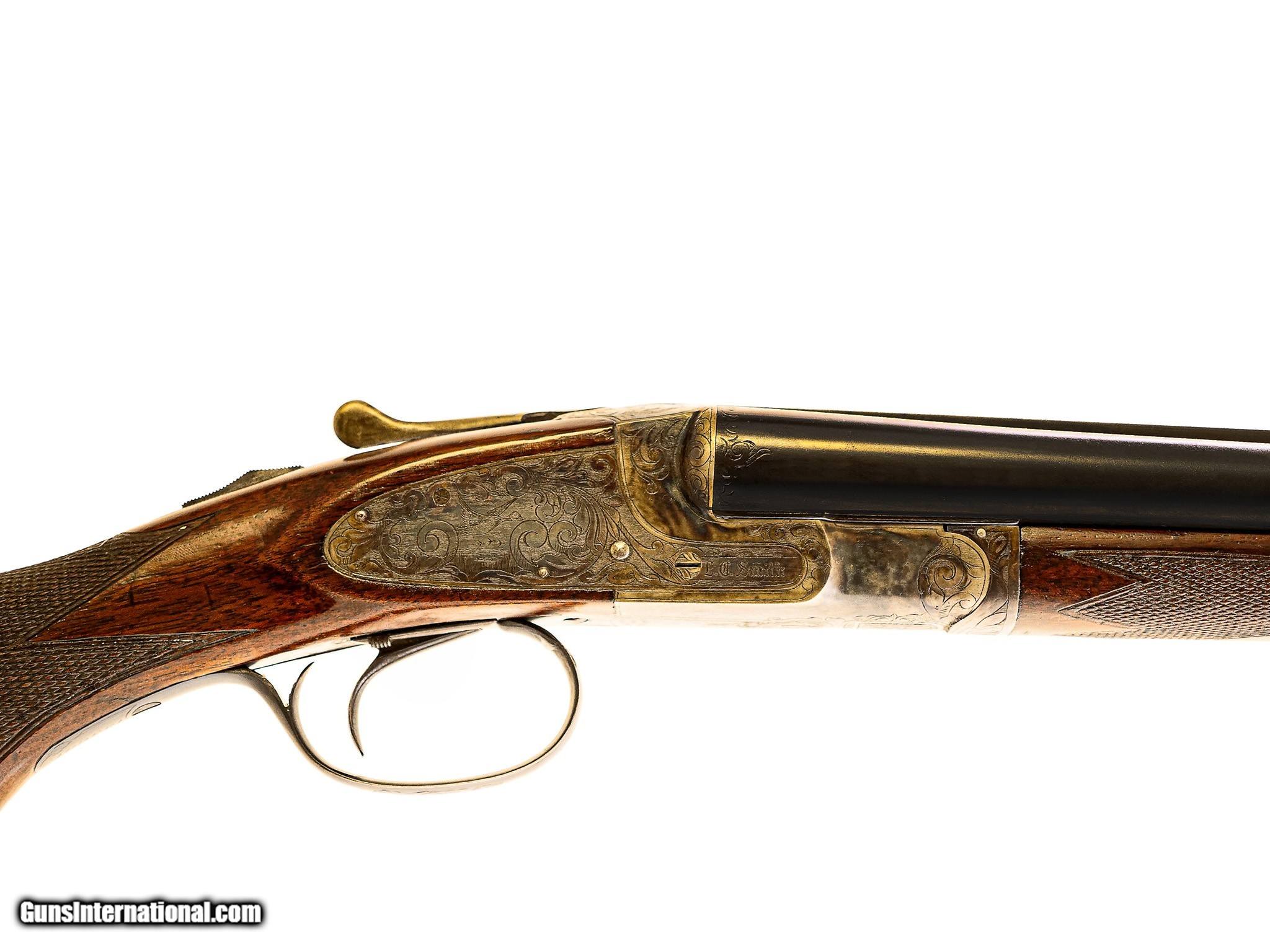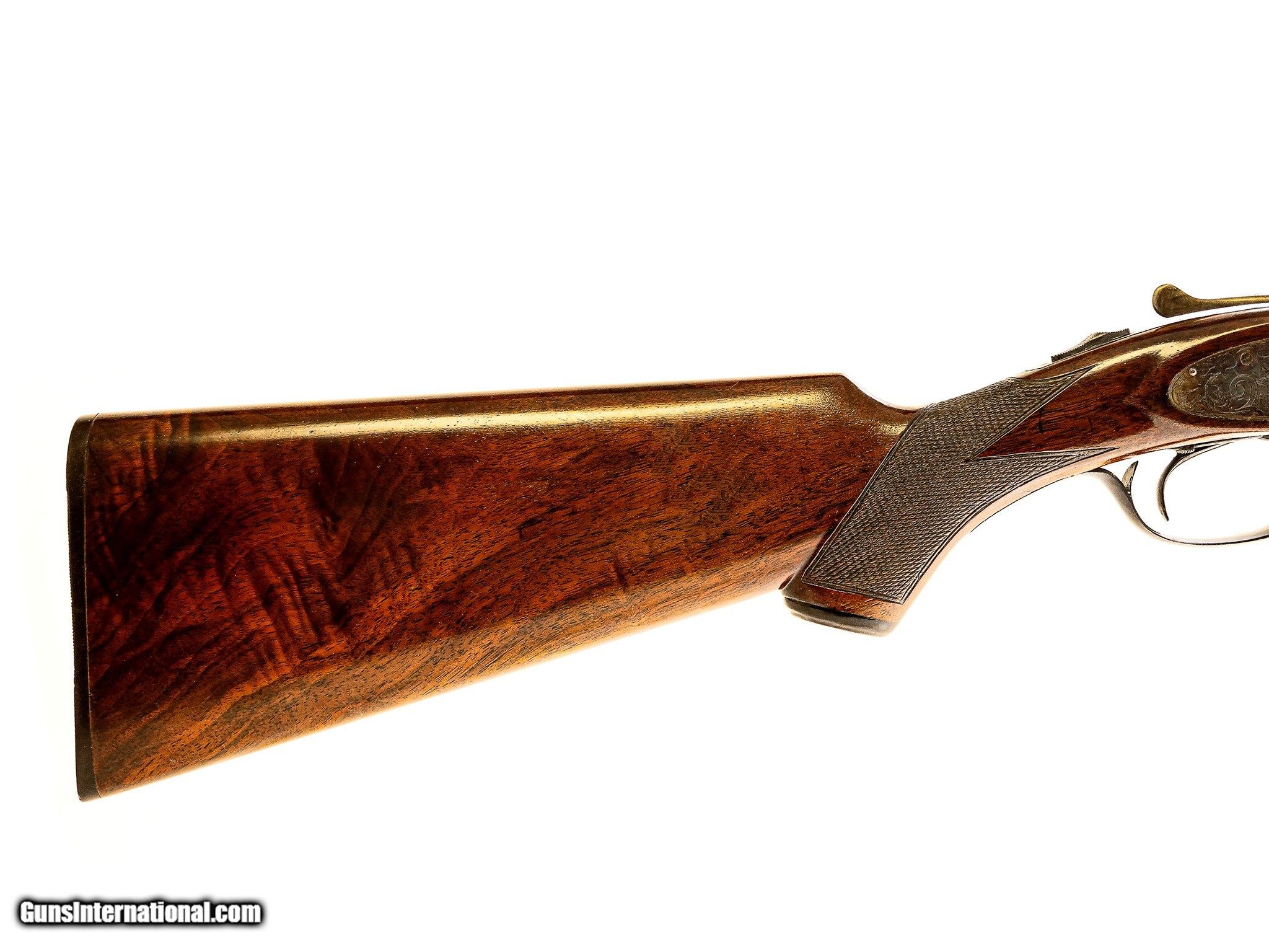 Description: L.C. Smith - Specialty Grade, SxS, 99% Condition, 20ga. 28" Barrels Choked IM/F. Hunter 1 trigger, capped pistol grip, butt plate, splinter forend, auto ejector, 99% case color, blue, and wood finish. The gun is possibly unfired, perfect screws, small handling marks on wood. Hunter Arms Co. gun. Case color is shiny, perfect engraving, outstanding collector grade gun, all the trigger guard blue. A near perfect gun. Inv: 63763 6 lbs. 1 oz. 14 3/8" x 1 3/8" x 2 1/2" $10,995.00 SOLD |