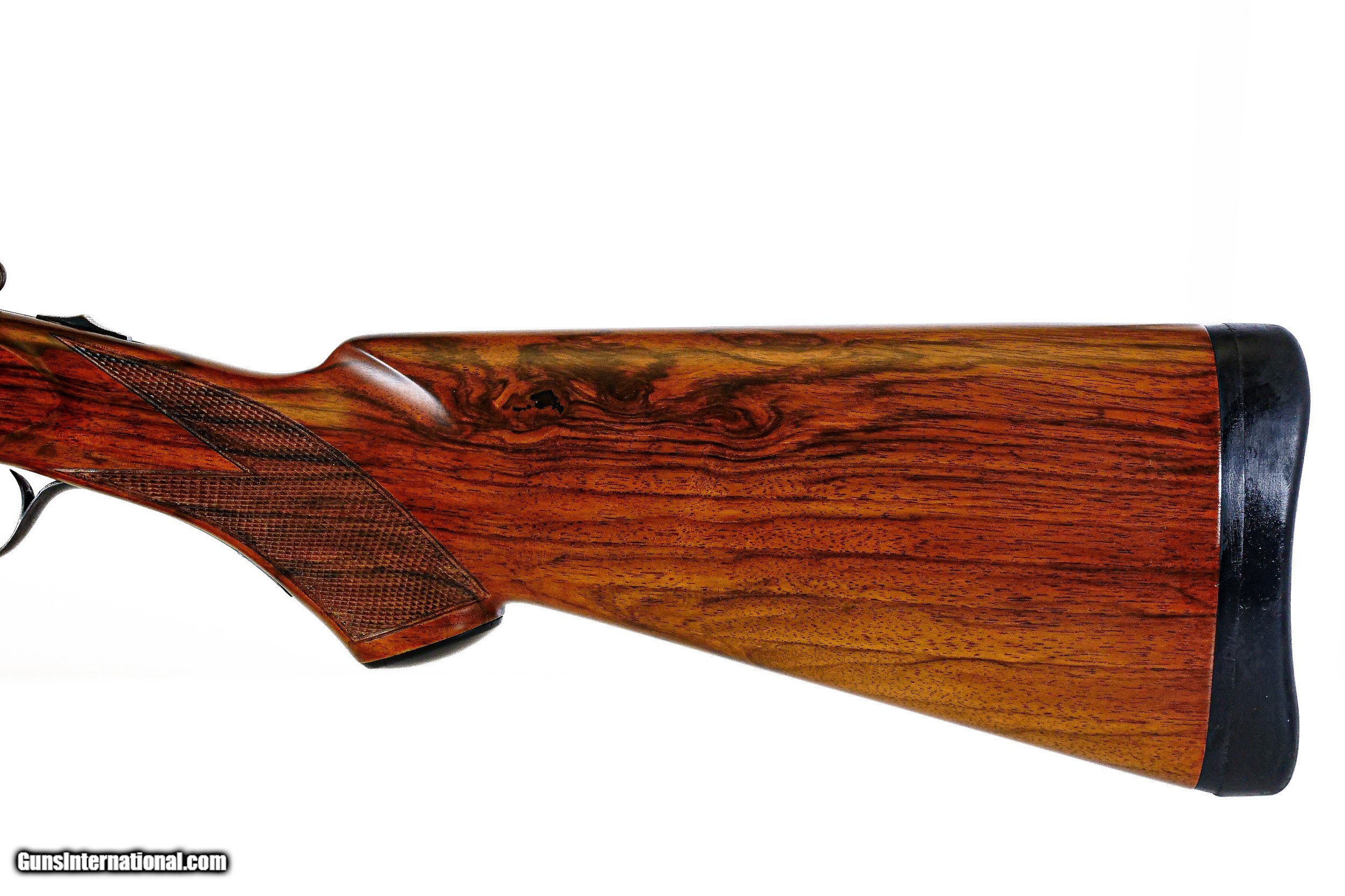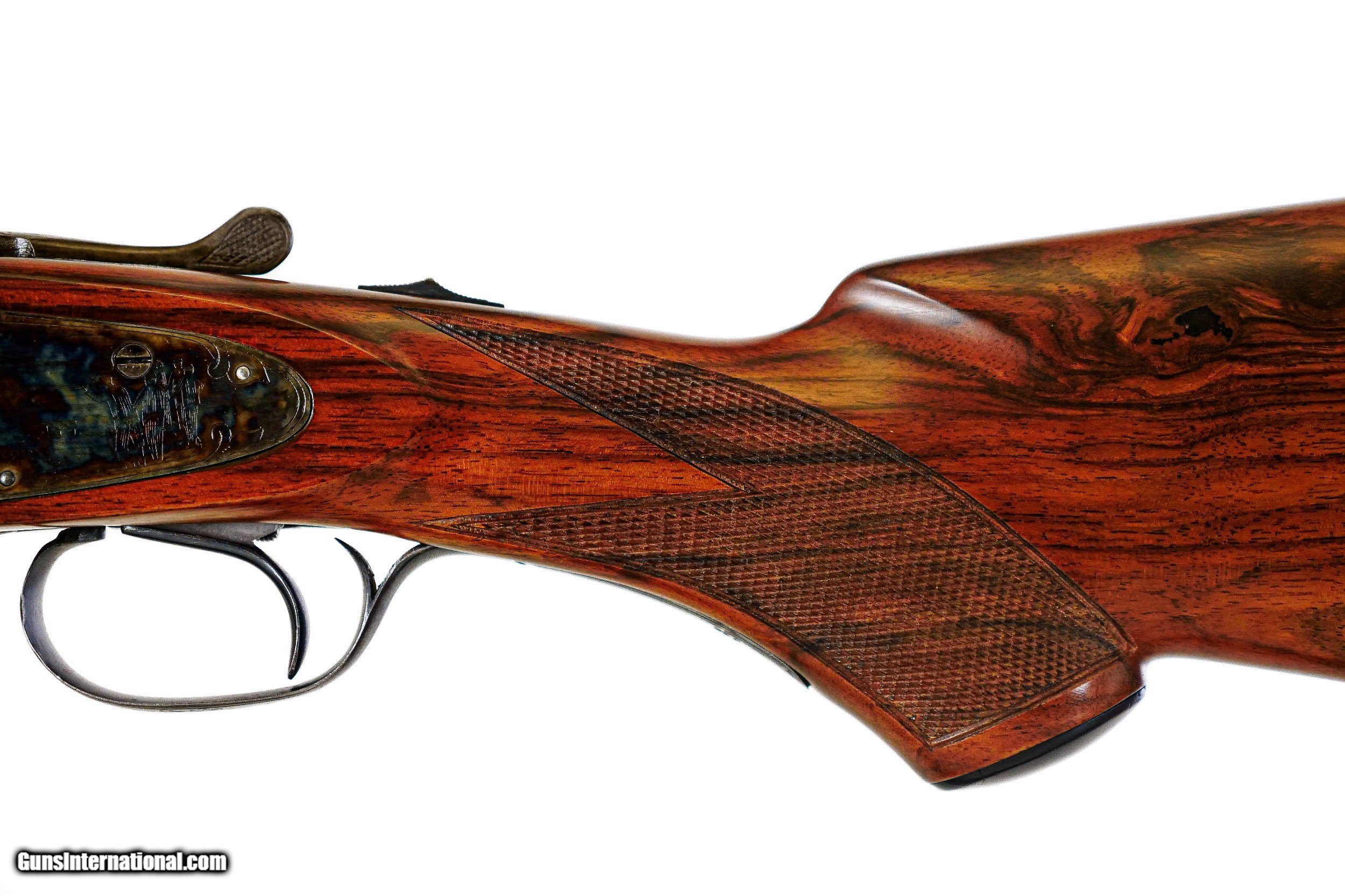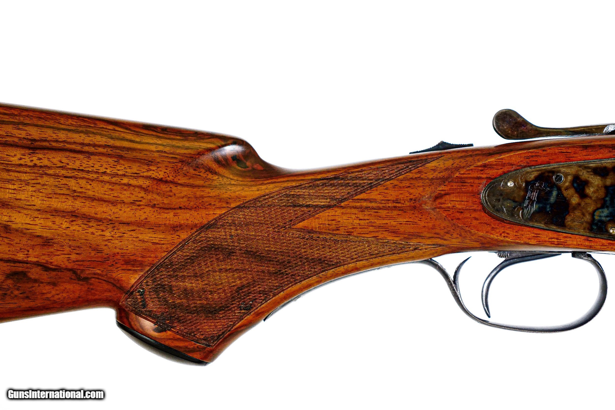 Description: L.C. Smith - Trap Grade, 12ga. 32” Barrels Choked IM/F. Capped pistol grip stock, recoil pad, single selective trigger, automatic ejectors, vent rib, beavertail forend, 100% case coloring, excellent wood finish, checkering, and barrel bluing, perfect and sharp engraving, rare fully optioned gun, restored by the L.C. Man, available for immediate delivery. S & H - $50.00. Inv: 50907 8 lbs. 8 oz. 14 ¼” x 1 ½” x 2” $4,250.00 SOLD |