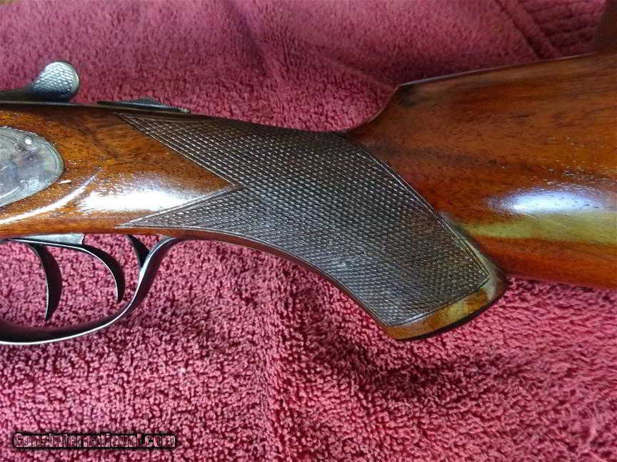 Description: L C SMITH, HUNTER ARMS, TRAP GRADE 16 GAUGE, 30" VENT RIB BARRELS. EXCELLENT BLUE, MIRROR BORES, TWIN IVORY SIGHTS, AUTOMATIC EJECTORS. FEATHERWEIGHT FRAME, TYPICAL ENGRAVING PATTERN WITH FIELD SHOOTING SCENE ON THE RIGHT AND A TRAP SHOOTING SCENE ON THE LEFT LOCK, PLUS FINE SCROLLWORK AND BORDERS. GORGEOUS VIVID CASE COLOR, UNTURNED SCREWS, TOP LEVER TO THE FAR RIGHT. PISTOL GRIP STOCK, BEAVERTAIL FOREARM, NICELY FIGURED WOOD, FINE CHECKERING. ORIGINAL GRIP CAP AND SILVERS PAD, 1 1/2" X 2 1/2" X 14 1/4". SEVEN POUNDS EVEN. BUILT IN 1927, ONLY 10 GUNS MADE IN THIS CONFIGURATION. ONLY 16 GAUGE VENT RIB SMITH I'VE EVER SEEN, 100% ORIGINAL CONDITION. $9000.00 reduced to $7200.00 + $50.00 Insured shipping to an FFL address. See all Pats listings We also have hundreds of pieces of ORIGINAL gun company advertising & memorabilia available for sale. We have no reprints or reproductions. Email for more information. SOLD Curio/Relic: Yes |