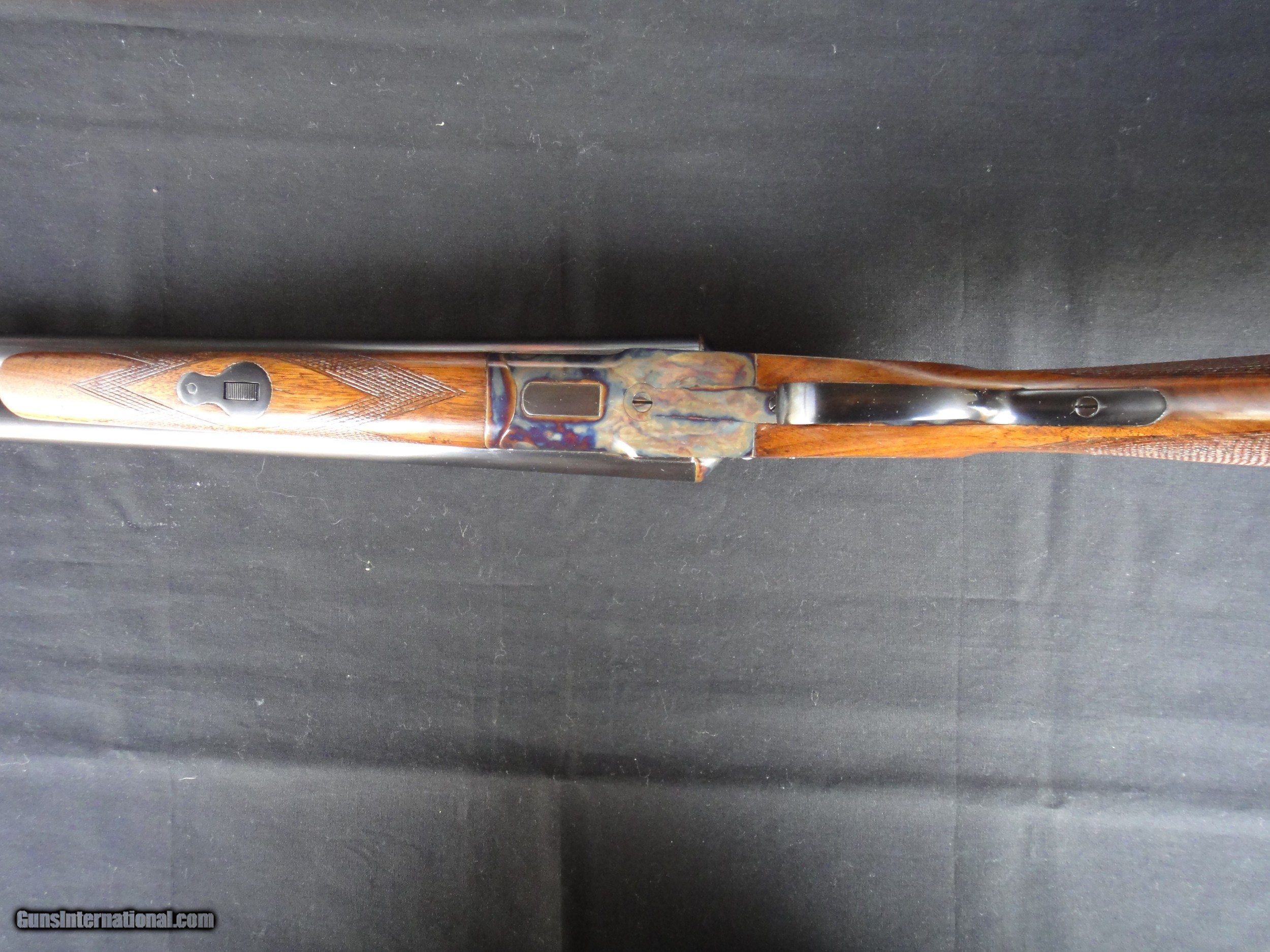 Description: An LC Smith Field grade 12 gauge with ejectors, recently restored to almost like new condition. This is a robust gun with 30" barrels choked F/F, new double white beads, 1 9/16" DAC, 14 3/8" LOP over new vintage style pad, 2 3/4" chambers, and weighing in at 8 lbs, 1 oz. The action locks up tight like new and the ejectors are strong and work perfectly. 3 position safety allows a shooter to shoot clays with the safety off in the rear position so it does not reset automatically every time the gun is opened. Inletted and epoxy bedded behind the locks to resist cracking. Perfect mirror shiny bores. Regular frame. This gun was designed for stout loads and likely served as somebody's prized duck and goose gun back in the days before steel shot. Barrels freshly rust blued, frame and forend iron bone charcoal case colored with beautiful colors and patterns, furniture hot blued and stocks refinished with hand rubbed oil. This great example of a vintage double is both usable and collectable. Hi def photos taken in natural light will tell the rest of the story. A note about the barrels....the lighting makes them look a bit grayish. I will guarantee that in person they are a deep rich black color, and not at all grey. Lettering is sharp and screws are all properly aligned, tight, and slots are all just about perfect. Feel free to ask any questions, and check out my other listings. 3 day non-shooting, non-disassembly inspection period runs from time of receipt by your FFL. $60 insured USPS priority mail. SOLD Curio/Relic: Yes |