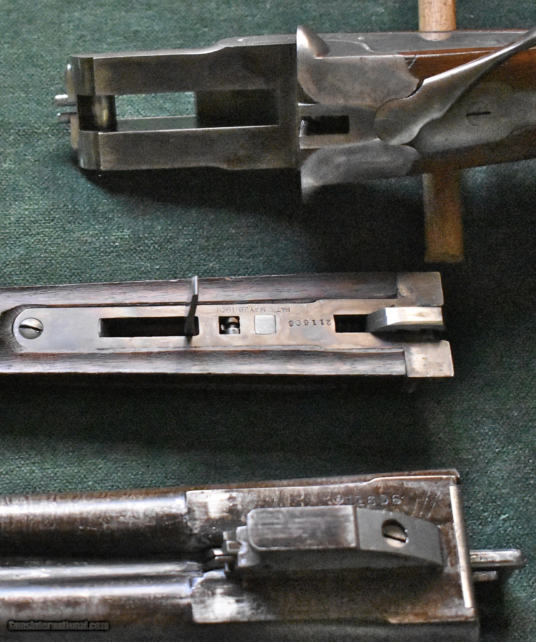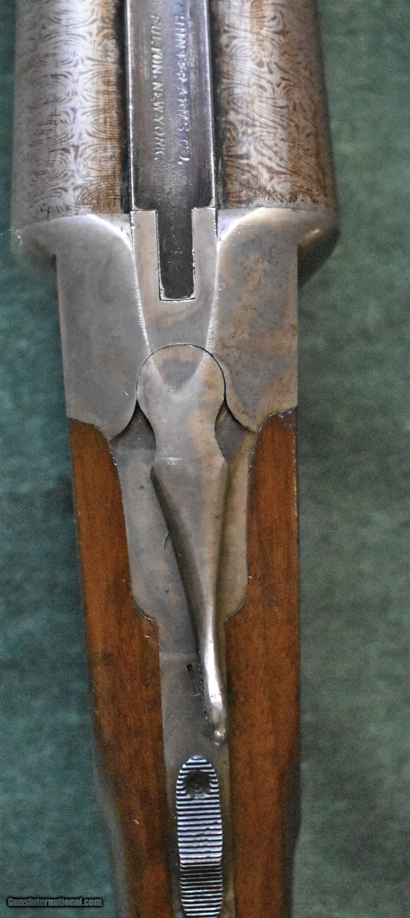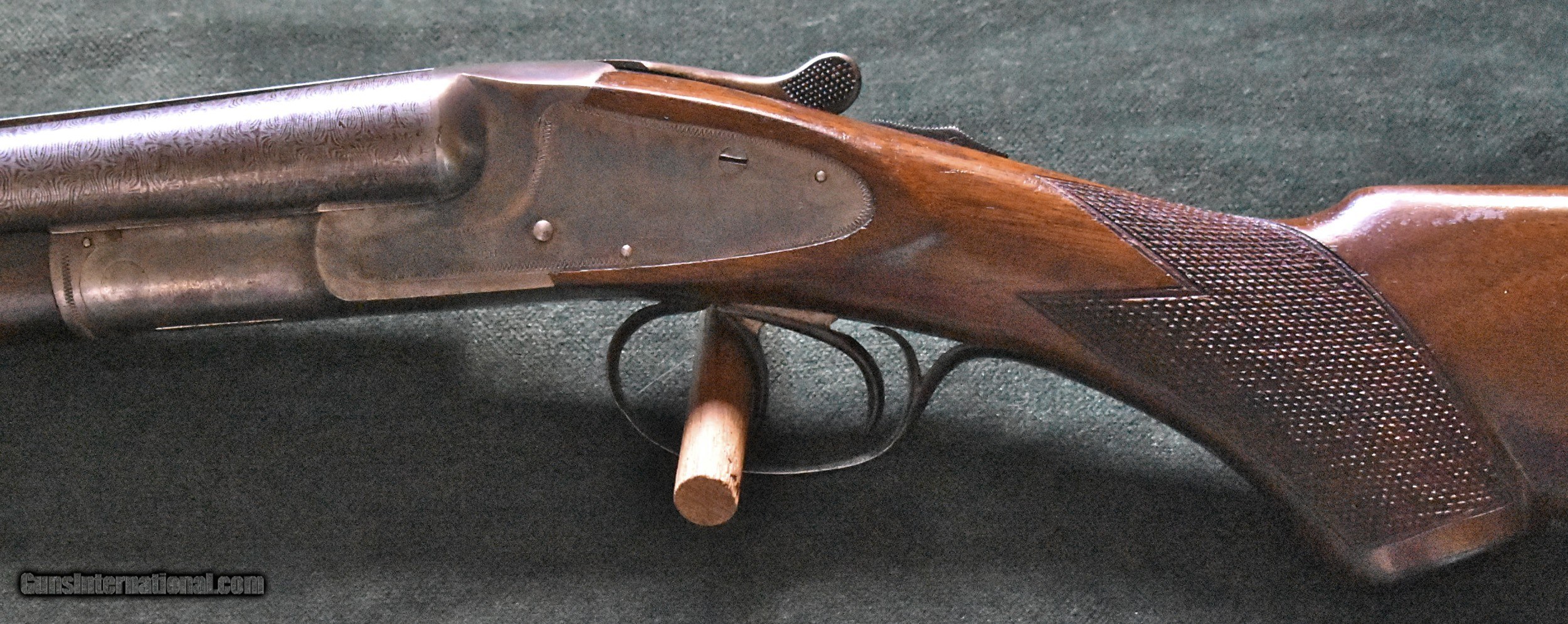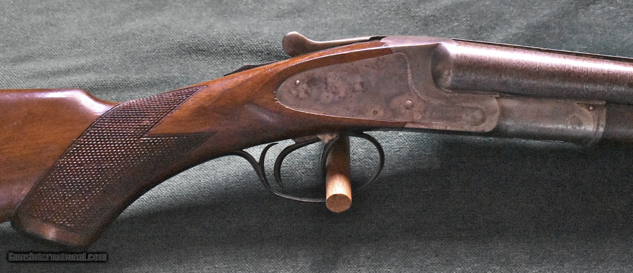 Description: L.C.Smith O grade 16 gauge with ejectors. Built in 1909,this gun has 26" fine damascus barrels choked cylinder and improved cylinder. The barrels are original length and have mint bores. The barrels have excellent wall thickness with .070" in front of the chambers and a minimum of .030" at the muzzle. The gun retains around 40% of the original case colors,90% of the damascus pattern,and 80% of the original wood finish. The stock is sound with no cracks. O grade ejector guns are very scarce. The ejectors are strong and properly timed. I shot skeet with this gun and it patterns much tighter than you would expect for an open choked gun. It would make a great quail,grouse,or woodcock gun. An American classic that you can shoot and enjoy. C&R eligible. SOLD Curio/Relic: Yes Shotgun Gauge: 16 Gauge Manufacturer: L/C.Smith (Hunter Arms) Model: O grade Serial Number: 211606 Barrel Length: 26 Chambers: 23/4 Ejectors: yes Condition: e Metal Condition: excellent Wood Condition: very good Bore Condition: mint Barrel Type: damascus steel Action: double barrel Triggers: double Stock Dimensions: 131/2"x13/4"x23/4 Fore End: splinter Butt Pad: factory buttplate Weight: 6-8 Manufacture Date: 1909 Choke Left: Improved (.005") Choke Right: cylinder (.0) |