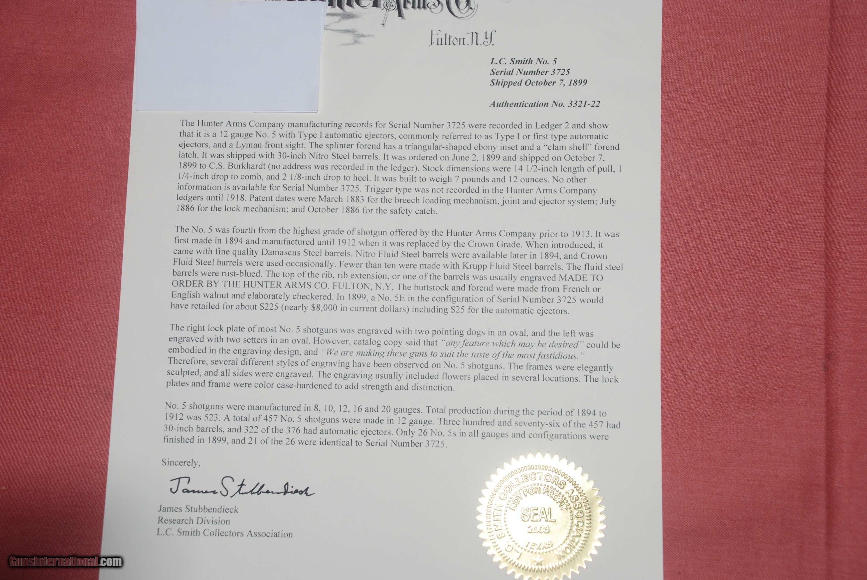 Description: This is a beautiful restored LC Smith 12ga 5E with factory letter The letter tells everything about the gun. Serial number 3725 is a very early gun made in 1899 The engraving detail is beautiful. I am not a dealer so please make sure your dealer will accept a copy of my driver's license. Shipping to the lower 48 is $100. Curio/Relic: Yes Price: $5,000.00 Buy Now Contact Seller |