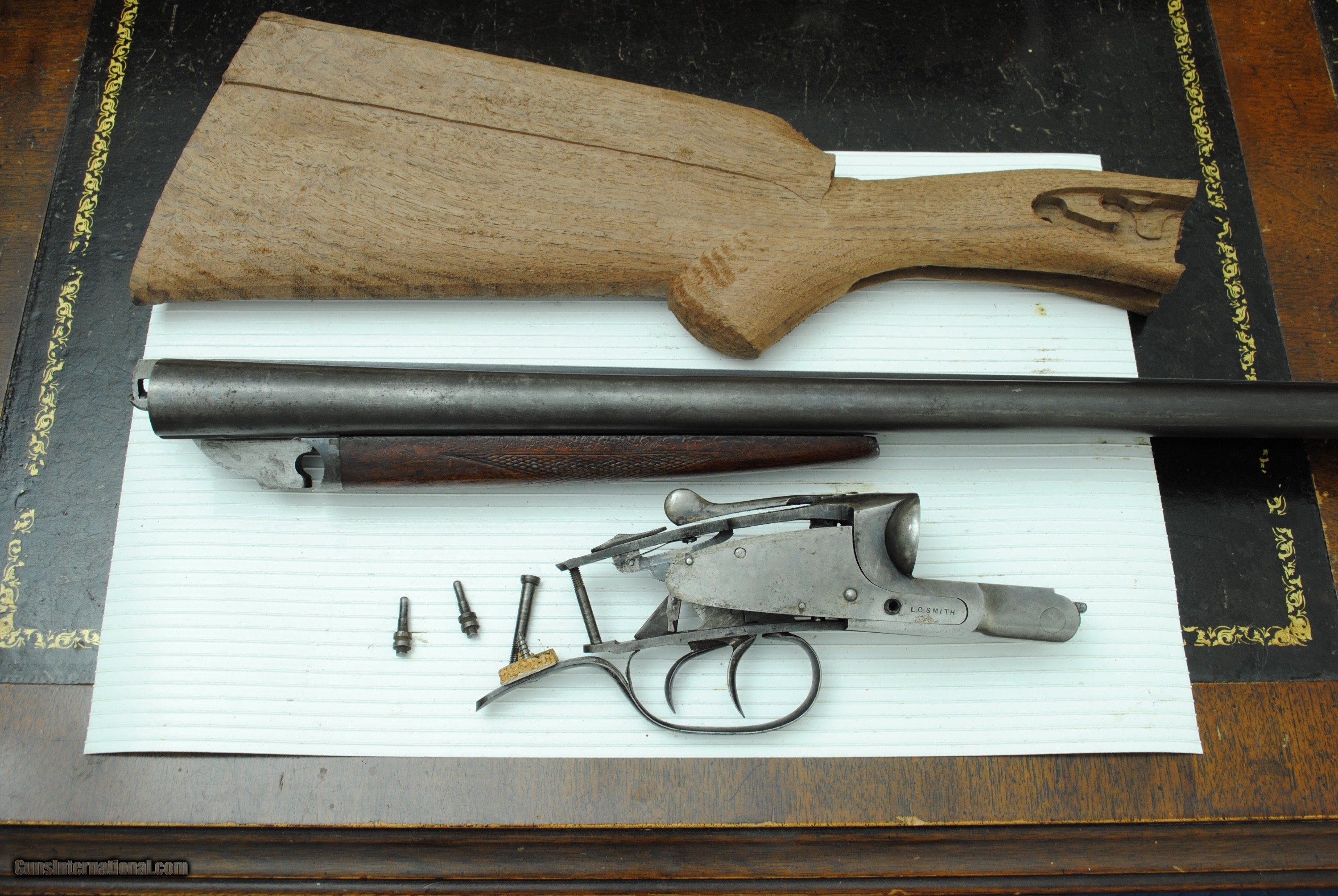 Description: LC Smith 12 gauge project gun - ready to finish. All serial numbers matching. Appears to have all the parts except the top lever retention screw and lock plate screw (both are available). Barrels are 28" with mirror bores. Right barrel measures .728 with 20/1000 choke (Mod). Left barrel is .727 with 37/1000 (Full). Chambers are 2 3/4". Stock is ready for final fitting. The stock was duplicated by ShowMe Gunstocks. They have an excellent reputation for accurate duplication. There is extra material on the comb to allow for a more contemporary fit. Shipping is $50. SOLD Curio/Relic: Yes Shotgun Gauge: 12 Gauge |