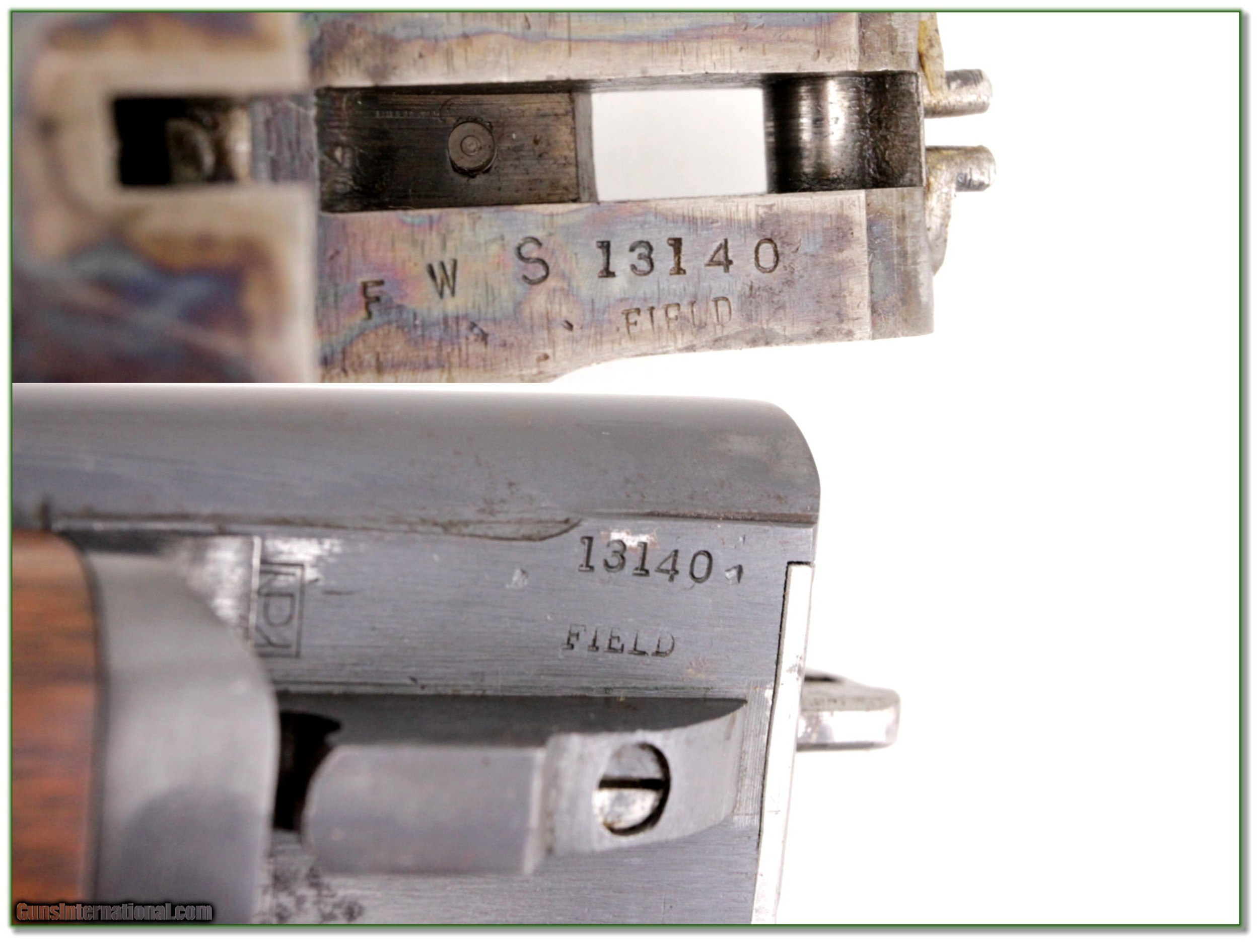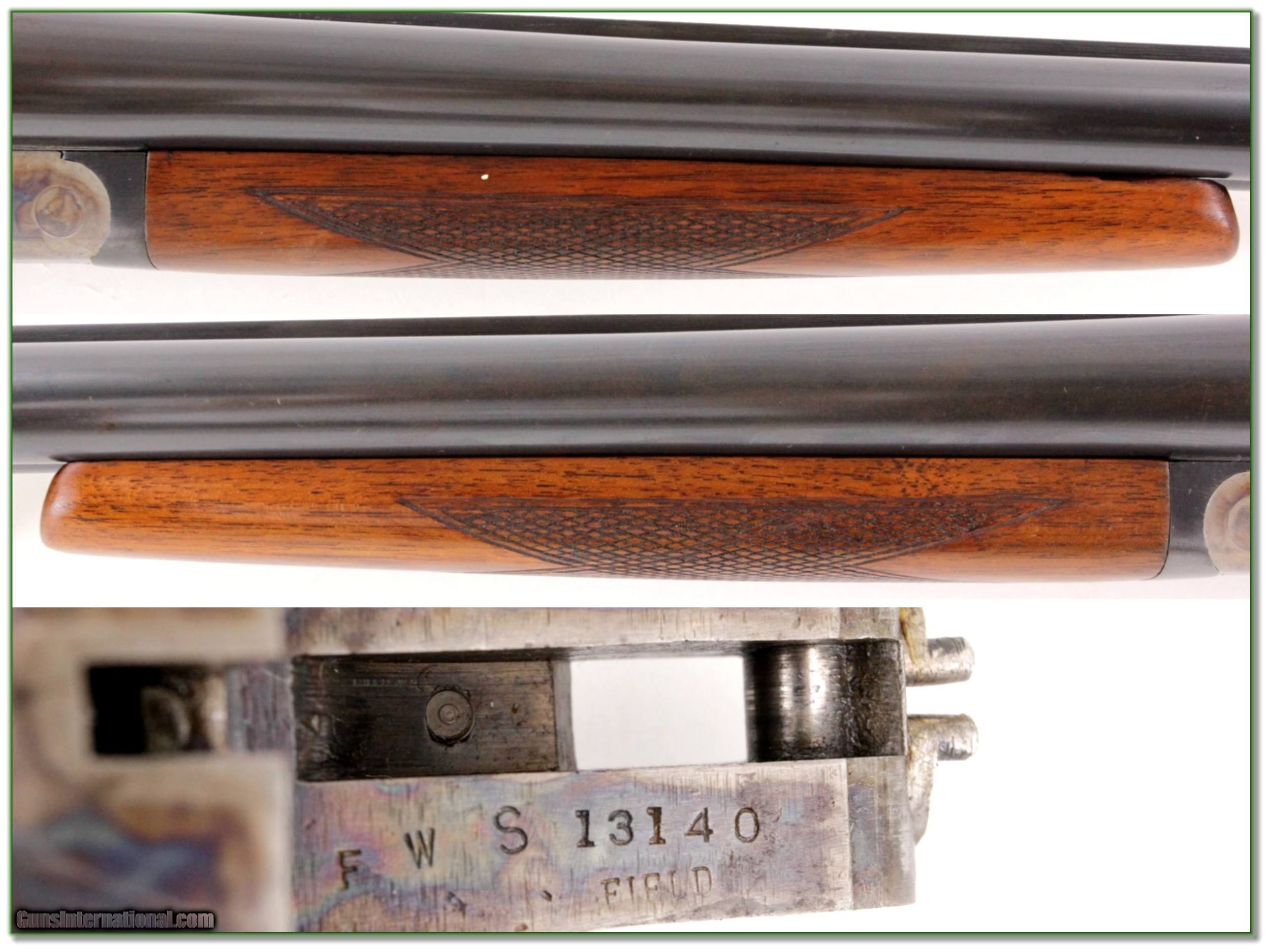 Description: This is an excellent LC Smith Field grade 12 Ga SxS. It has excellent blue and wood with only a few minor marks and the case colors are about as new! The LOP to front trigger is 14.25in to end of pad. It has 30in barrels choked Full and Full and will make a fine addition to your collection. I am selling this one on consignment and as such lay-a-way can’t be used. It does of course have the standard 3-day inspection. Shipping with insurance is $49. Please email me with any questions or larger pictures. (Consign your quality firearms with Shooting Investments for only 12%! Let me know if you have any you would like to sell!) 19-0826 Payment: Payment is by Money Order, Cashiers Check or Personal Check. I can now also accept MasterCard and Visa with a 3% convenience fee. PayPal can be used for some items but never firearms. Please let us know if you would like to pay via PayPal. Shipping: The shipping charge will be listed in each description. It is $39 for most long guns and $29 for most handguns. Some heavy guns or those insured for over $2000 will be higher. Shipments to Alaska and Hawaii are higher because air shipment is required. Most firearms are shipped on Tuesday and Thursday and usually in 5 days of receipt of payment. We package all shipments carefully and insure them. For long guns you can purchase a new Plano case for $19. They now cost us $22 when buying 100 at a time. Optics are shipped Priority Mail and most other non-firearm shipments are shipped First Class. Returns: Our return policy is simple. If for any reason you are not pleased with your purchase, you may return your item for a full refund of purchase price. Ammunition cannot be returned. It is important to us that you are happy. Guns cannot be fired or dissembled before returning them and they must be returned in the same condition as received. Notification of a return must occur with-in 3 days of receipt at your dealer. Shipping, convenience and dealer fees are not refundable and are the responsibility of the buyer. Lay-a-way: If needed, we offer a 60 day lay-a-way option on most firearms. It is 1/3 now, 1/3 in 30 days and 1/3 in 60 days. Lay-a-way firearm sales are final and if not completed the first payment cannot be returned. Consigning your firearms with Shooting Investments: We will help you get top dollar for your firearms. While most local guns shops charge 20% or more, our fee is only 12% with a minimum of $75. At your local gun shop it might take months to sell. Selling on-line provides instant access to thousands of interested buyers. You won’t find any other on-line dealer willing to sell your firearms for only 12% or listing every gun on 3 separate s. Selling through an House typically costs the seller 15% and the buyer an addition 15% (so 30%) and you have to wait several months to sell and longer to receive funds. If properly priced, we will sell your firearms in a few weeks. Send us an email or give us a call and we’ll explain how easy it is for you to get top dollar. Trading: Trading for use is really just buying your gun to re-sell. If you have a gun you want to trade, please email a picture and we will let you know what we can give or it. You will always get more if we sell it for you on consignment. Help for California Buyers: We are happy to ship to California. It is the buyer’s responsibility to make sure any item you buy is legal in your state. We are also happy to help with your purchase of a firearm from someone other than us. If you see a gun you would like to buy but the seller can’t or won’t ship to California they can ship to use and we’ll then ship it to your California dealer. The cost for this service is only $30 + shipping. Let us know if we can help! SOLD |