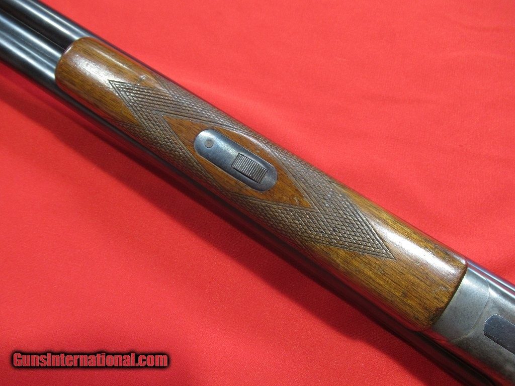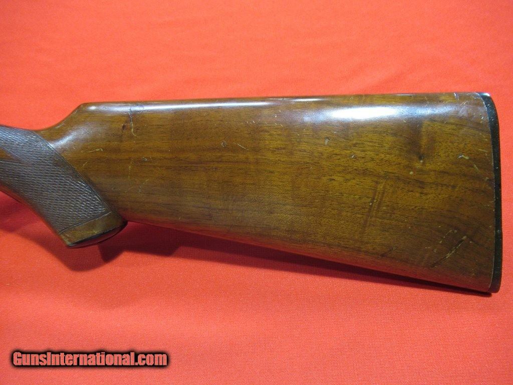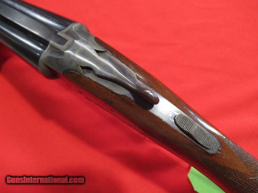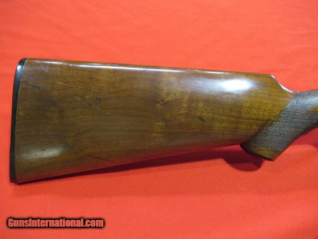 Description: Gun remains in overall good condition, good case colors, very strong blue on the barrels and minor handling of the wood. Single selective trigger, pistol grip stock and splinter forend. Length of pull is 14 1/4", drop at comb 1 1/2", drop at heel 2 1/2" and weight is 6 lbs 4 ozs. Chokes are .014"/.024 SOLD |
