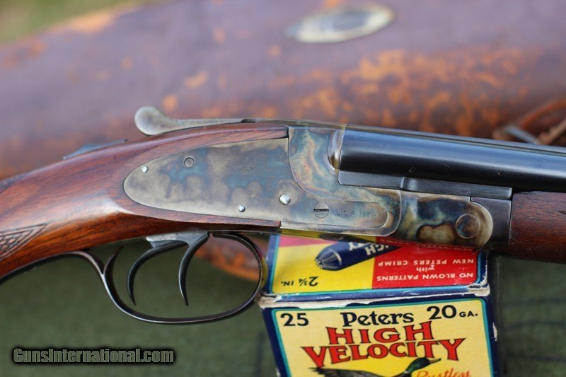 Description: Manufactured by Hunter Arms Circa 1942 Serial # 2008xx 25 " barrel Chokes modified and full with extractors LOP 14 1/4" over original serrated factory LC Smith butt plate Drop at comb 1 1/2 " Drop at heel 2 1/2 " This gun has been 100% restored , using old world methods. Looks amazing ...you will not be disappointed !!! Weighs just 5lbs 14 oz $ 7950 + Shipping SOLD |