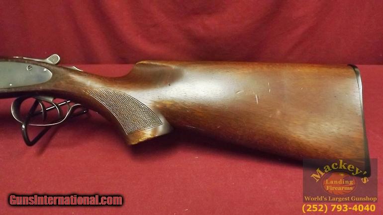 Description: LC Smith FW Field Grade side by side shotgun, chambers .12 gauge shells through 30 inch barrels with excellent bores. Fixed chokes at full and modified. Lever is straight but not loose. Muzzle ware with patina and minor rust throughout. Stock does not have any cracks but some general ware. Butt plate does not appear to be the original and extends the top a tiny bit. Fore-arm has been repaired near the receiver, but snug with no unfixed cracks. Double triggers with length of pull at 14-3/8 and 13-3/8 inches, drop at heel is 2-1/2 inches and drop at comb is 1-1/8 inches. Dated 1923. SN: 58### FFL dealer required for shipment. We do not ship outside the United States. SOLD |