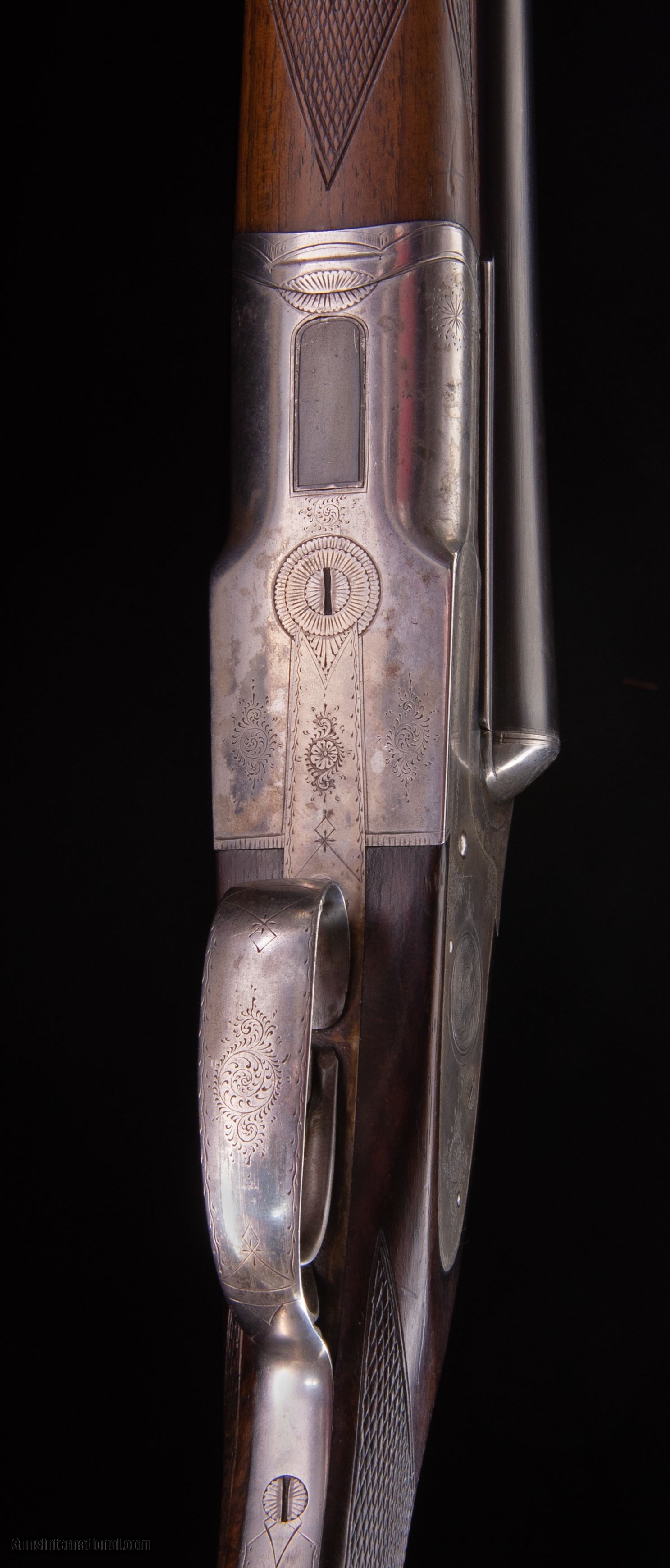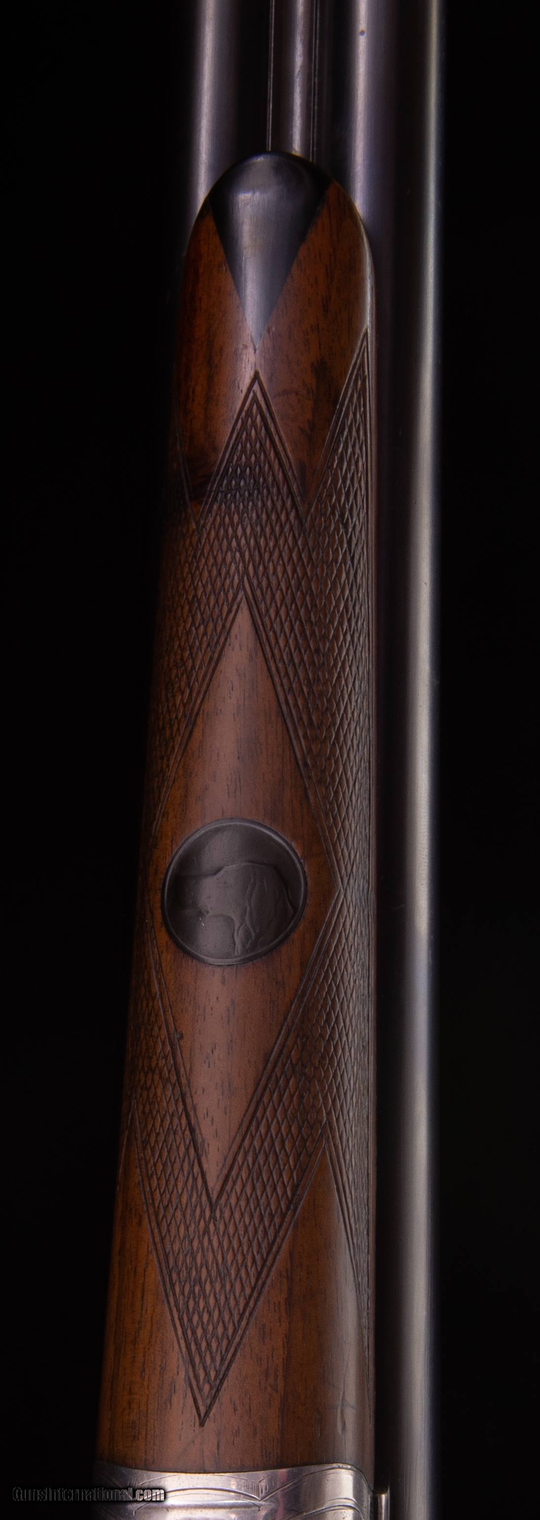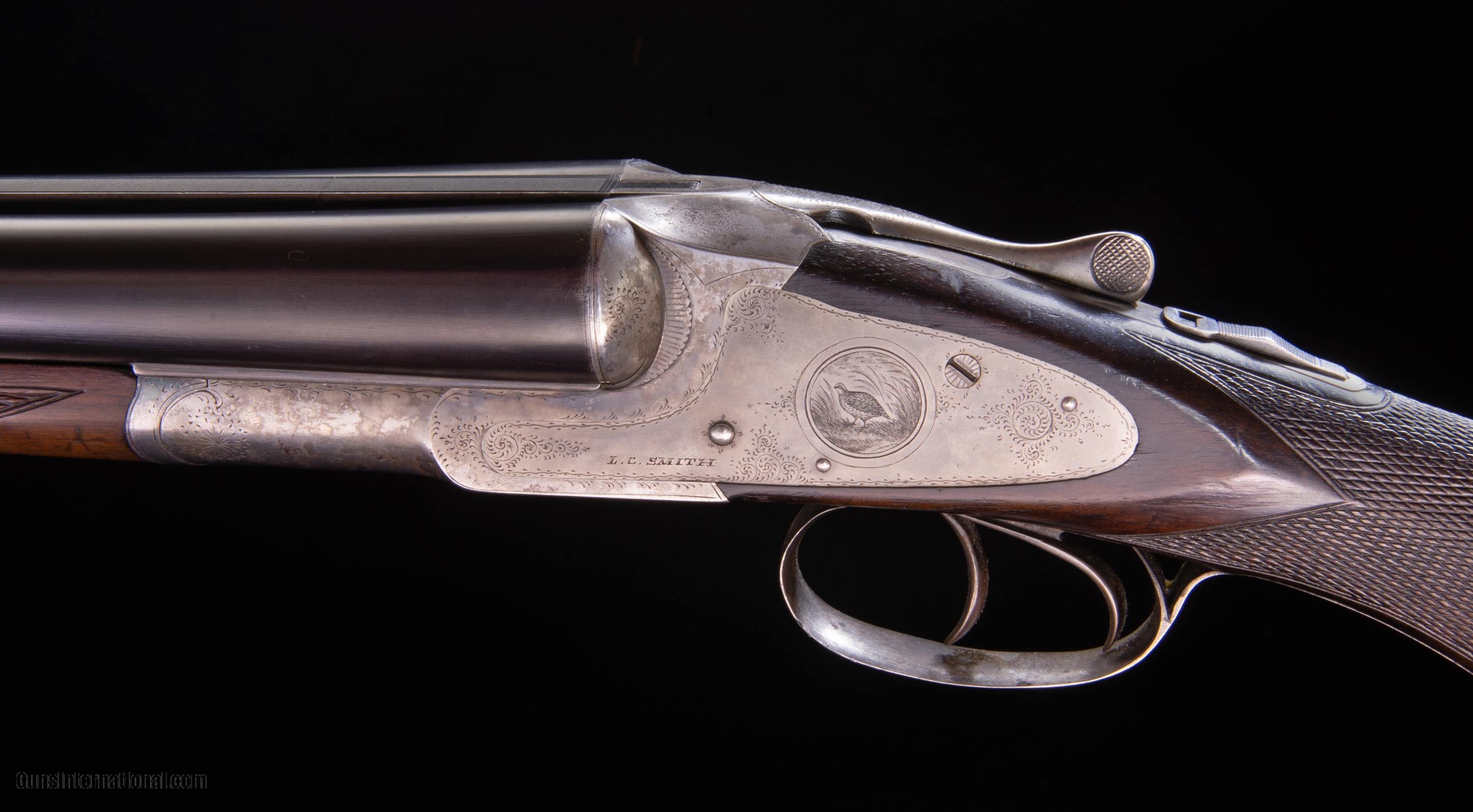 Description: Hammerless Sidelocks - An early (1897) grade 2 LC Smith with not bad dimensions for a vintage American gun. Yes, it has sling swivels but you could remove those, and we are only selling this for $900.00. *** Note: To see this gun with high resolution photos and a zoom-in feature, go to the vintagedoubles main site and search for the gun ID: 4696 or browse the main site to see our full gun collection. SOLD Curio/Relic: Yes Manufacturer: LC Smith Grade 2 from 1897 with classic engraving Model: None Serial Number: 44631 Ejectors: No Barrels: 30 Barrel Type: Steel Action: Sidelock Gauge Info: 12 gauge Stock Comb: 1 5/8 Stock Heel: 2 9/16 Stock Cast: 1/8 LOP: 14" with recoil Weight: 7lbs 12ozs Choke Left: .042 Choke Right: .036 Proof:Nitro: 2 5/8 Minimum Wall Thickness Left: .022 Minimum Wall Thickness Right: .026 |