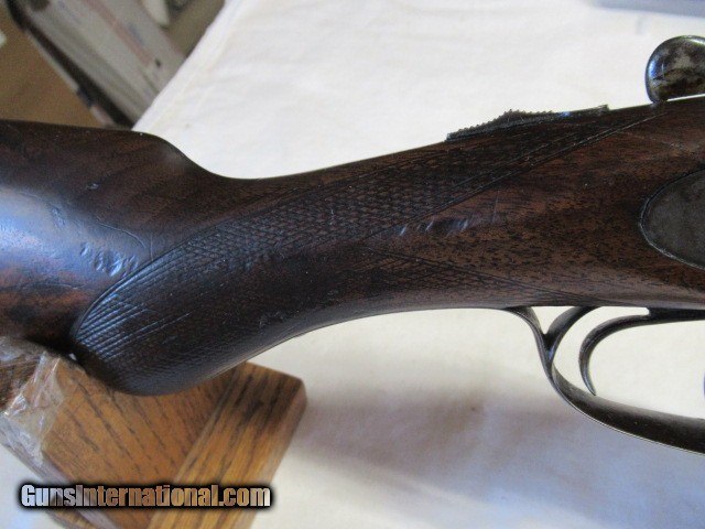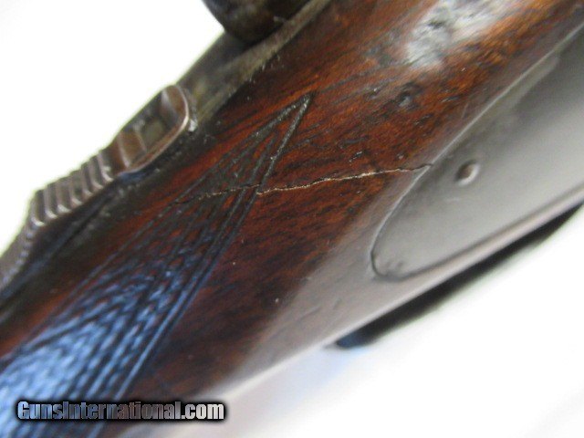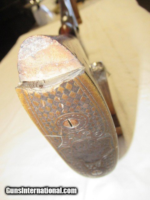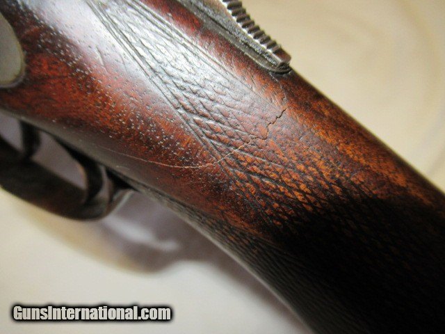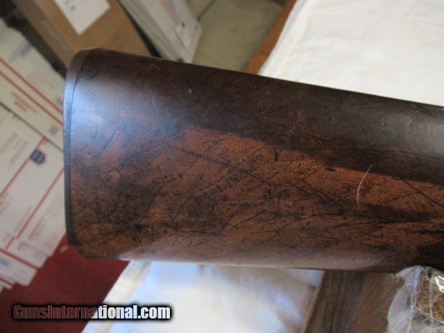 Description: Ser no 379xx, 30", M\F, Locks up tight, Numbers Match, Has a crack in the wrist it seems tight but is cracked, Toe of butt plate is missing, Traces of case color on receiver, Nice pattern to barrels, Bore are shiney, Buyer pays 35.00 shipping Pa residents add 6% sales tax, Price is for check or money order, Cc add 3% SOLD |