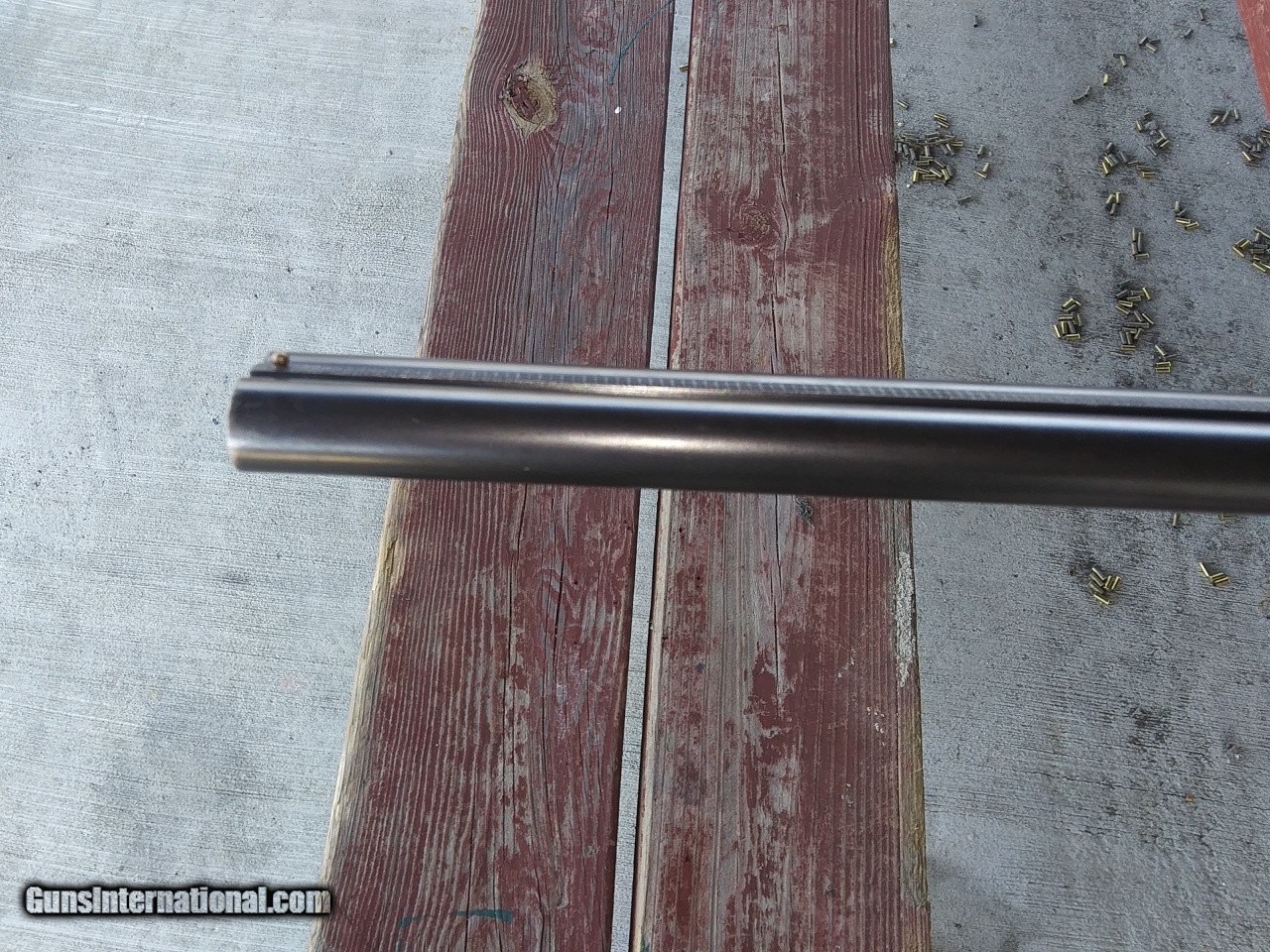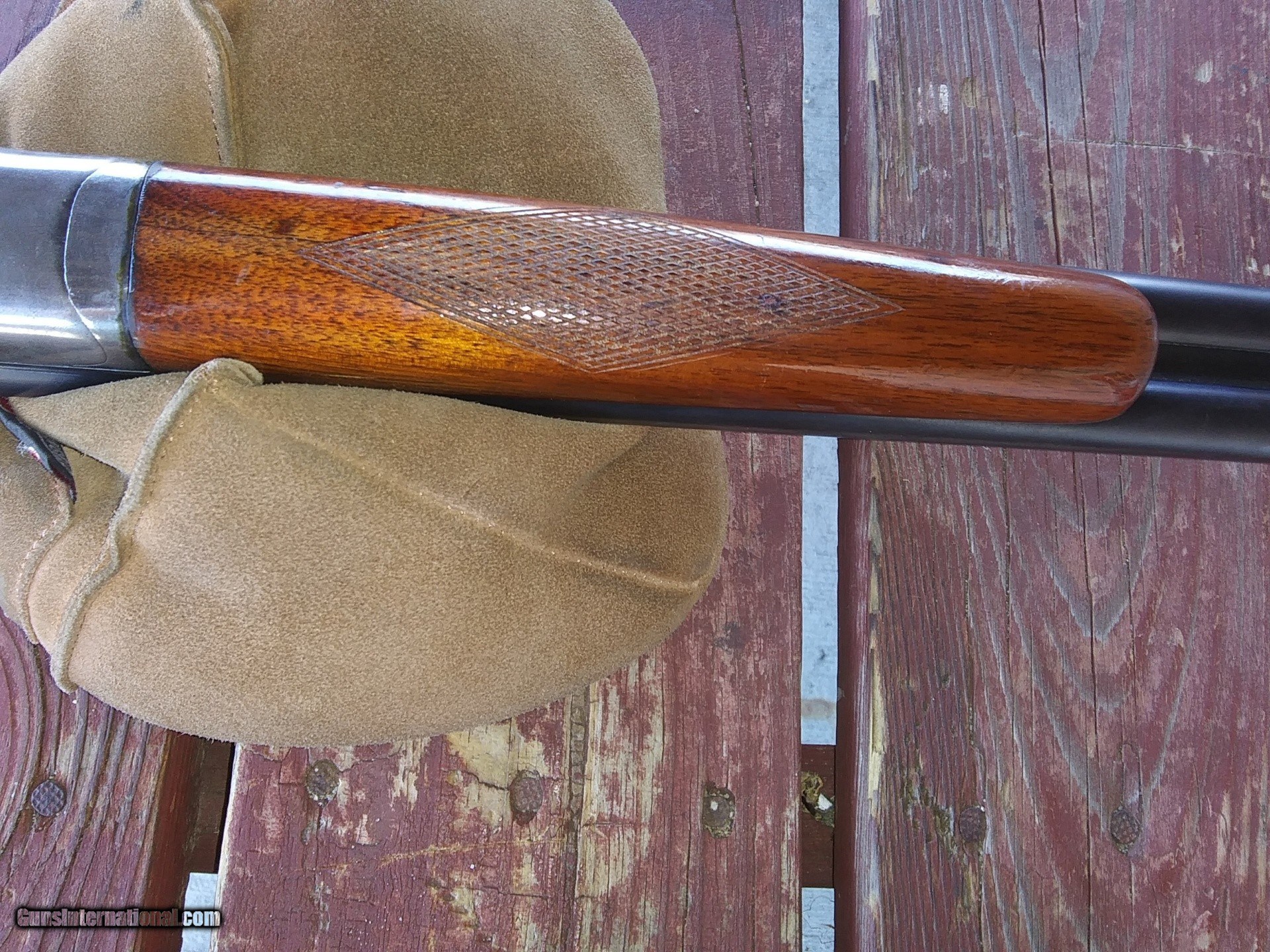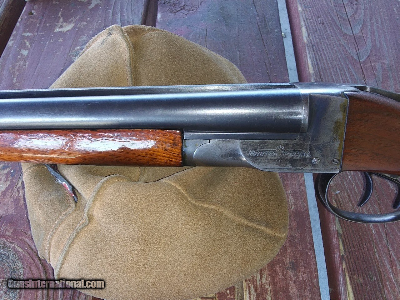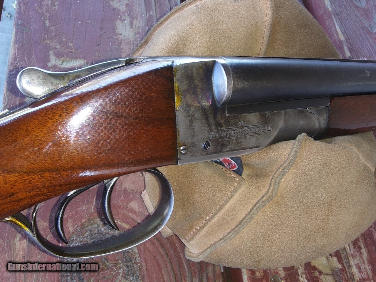 Description: L. C. Smith Made Hunter Special Double Barrel Shotgun. 20 Gauge. 28 mod and full. Has almost all bbl blue. Blls marked Hunter Arms Co. Inc. M'F'E'R'S Fulton N. Y. just like the L. c. Smith sidelocks. Has the same Rotary Lockup as the Smith. MADE CIRCA 1937. Nice wood. No cracks, has about 65 % case colors, perfect bores, original buttplatetop lever right of center, no wobble, checkered walnut. Gun is all original and very rare in this gauge. Sounds like a safe locking up. Nice collectable gun or bird gun. Weighs about 6 1/2 lbs.OFFERS ONSIDERED. TRADES ONSIDERED. FFL NEEDED. POSTAL MONEY ORDER ONLY. NO EXCEPTIONS. SHIPPING TO LOWER 47 STATES $45.00 WHICH INCLUDES INS.. NO CALIFORNIA SALES. SHIPPING TO AK AND HAWAII MAY BE MORE. UNITED STATES SALES ONLY. SOLD Shotgun Gauge: 20 Gauge |