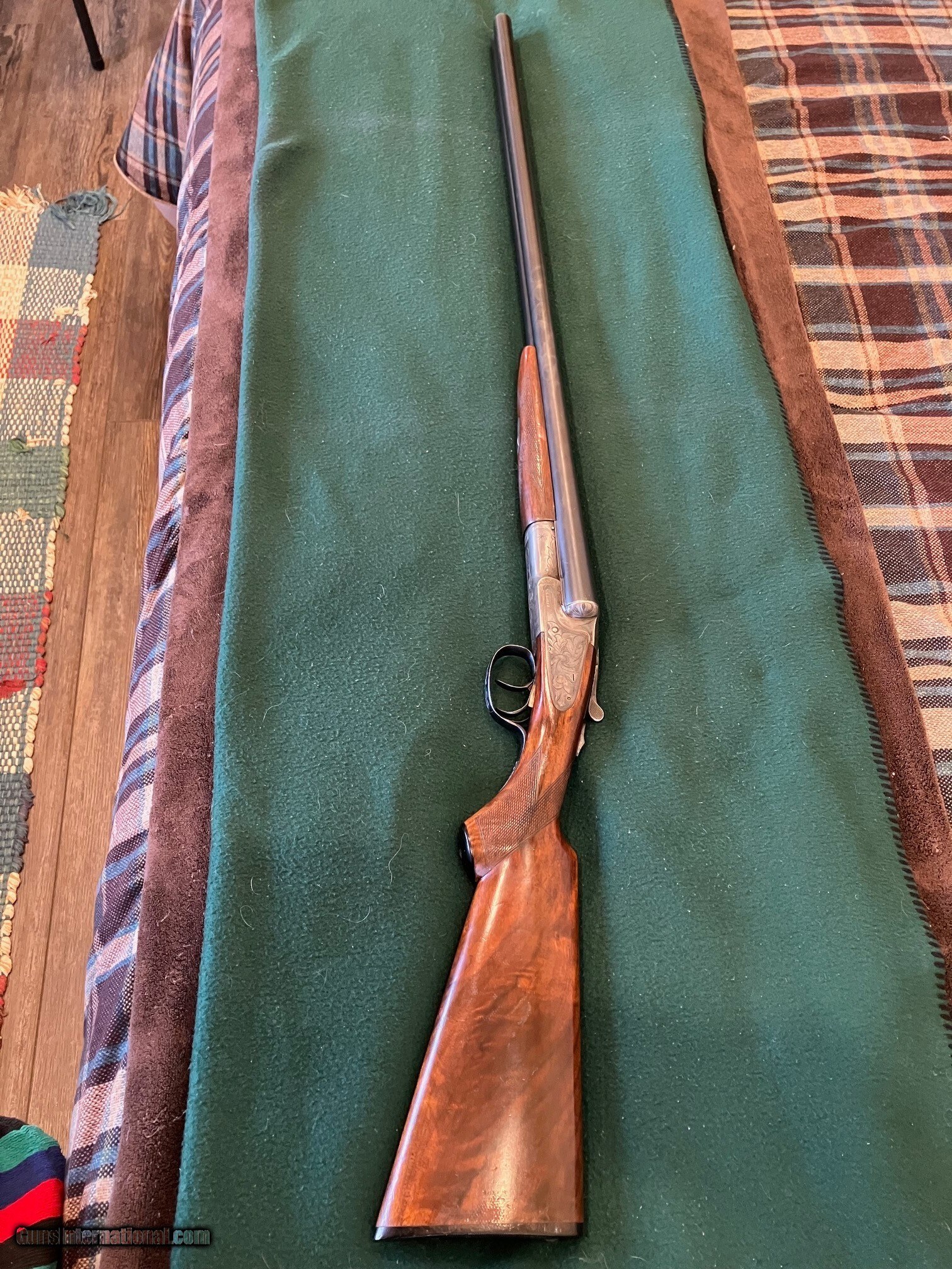 Description: LC Smith Ideal grade 12 gauge, 30" barrels, choked full and full. Both chokes measure .044. Automatic ejectors. The gun is in outstanding shape. All original. The colors are oustanding. I would say all steel is better than 96%. See pictures. The wood is high grade walnut with no cracks. The finish is in good shape for a gun that was made in 1936. This gun was made for the Duck blind. Its heavy about 9 lbs. But it can still shoot Bismuth at the Waterfowl. More pictures are available. The guns blue book valve is hundreds over $3000.00. I'm selling this fine gun for $2800.00 plus 80.00 to 100.00 shipping/insurance. Tom 719-494-9428. Shotgun Gauge: 12 Gauge Price: $2,800.00 Contact Seller |